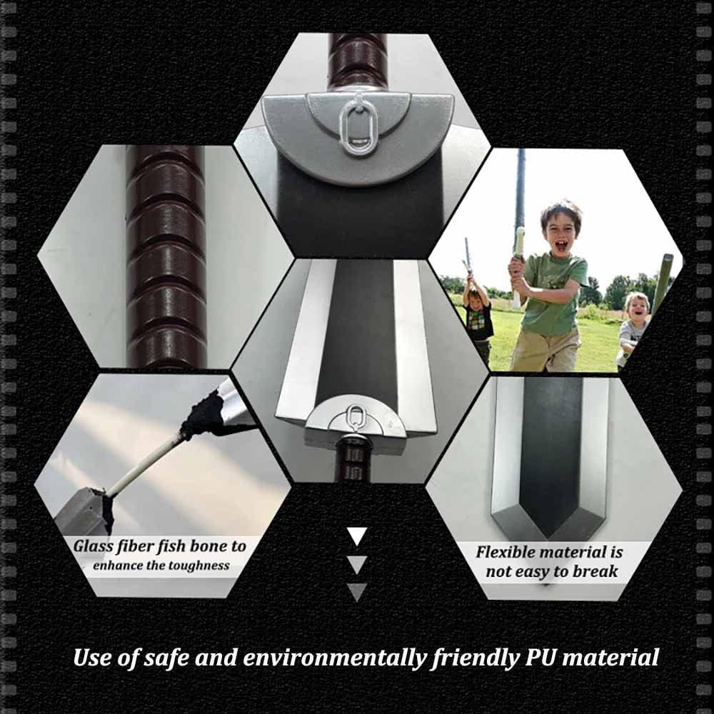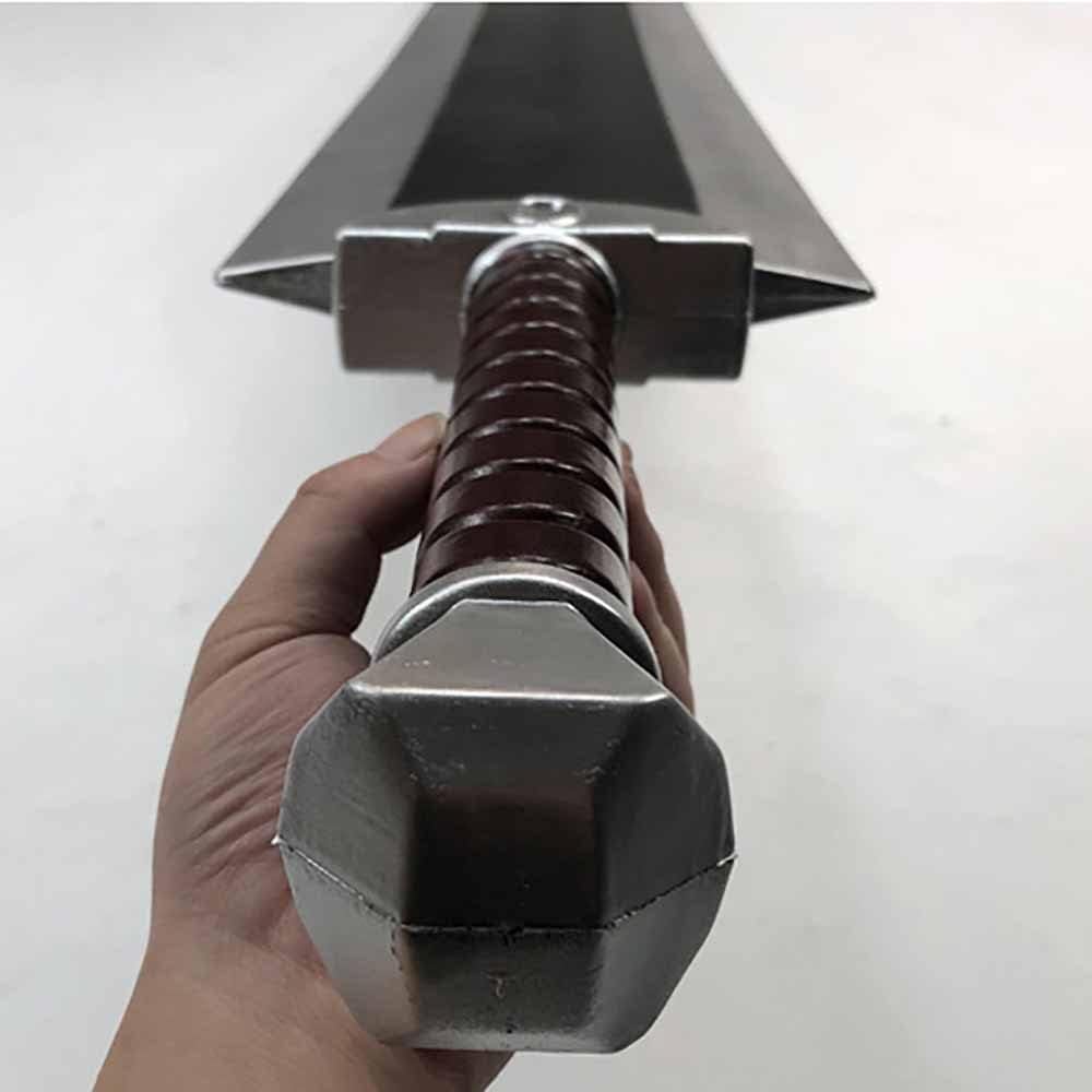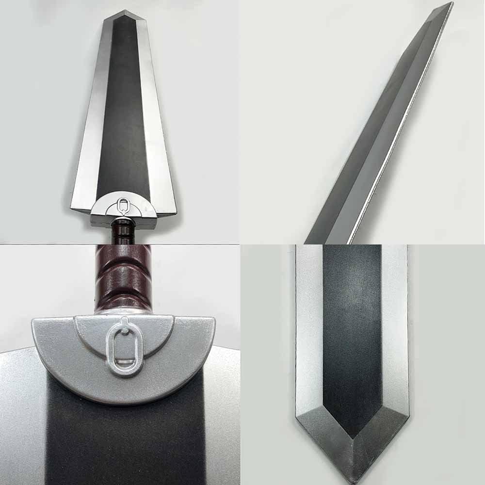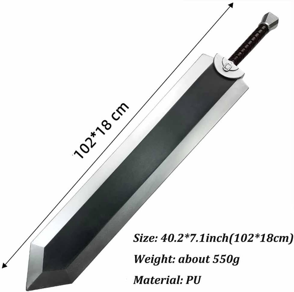 Halloween Prop Cosplay Guts Dragoner Chopping Sword Fantasey Anime Cosplay Costume Morbido e sicuro: realizzato in schiuma PU ad alta resistenza, 100% LARP Misure del grande prop: circa 102*18 cm Maneggevole e leggero: il martello è impreziosito da parti in argento che si completano a vicenda Ideale per: LARP, giocatori di ruolo, costumi, montaggio a parete, collezionisti, regali di compleanno