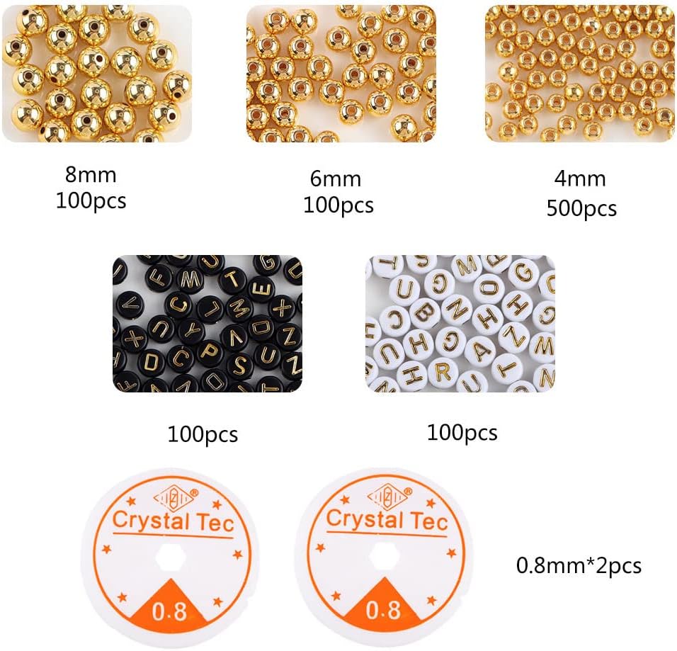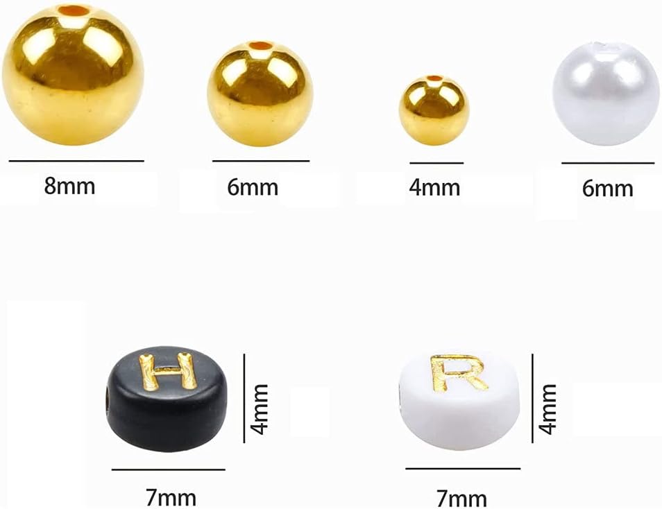 Materiale e durata: perline CCB di alta qualità con superficie lucida e struttura stabile, durevole per uso frequente. Le perline con lettere in acrilico (7 x 4 mm) in bianco/nero offrono una chiara leggibilità e resistenza del colore. Set completo di perline con lettere (A-Z), 4/6/8 mm oro/bianco/nero, perline di fissaggio e filo di nylon. Ideale per creare gioielli personalizzati senza ulteriori acquisti. Dimensioni e colori precisi: tre dimensioni di perline (4/6/8 mm) e opzioni di colore (oro/bianco/nero) consentono una vasta gamma di disegni. Perline con lettere (7 x 4 mm) con foro da 1,8 mm per infilarle facilmente. Applicazione principale: perfetto per gioielli personalizzati come bracciali, collane o portachiavi. Ideale come regalo per Natale, compleanni o occasioni speciali. Facilità d'uso: include perline di fissaggio e filo di nylon resistente per una presa stabile. Facile da usare grazie alla dimensione del foro standardizzata (1,8 mm), adatto anche per i principianti.