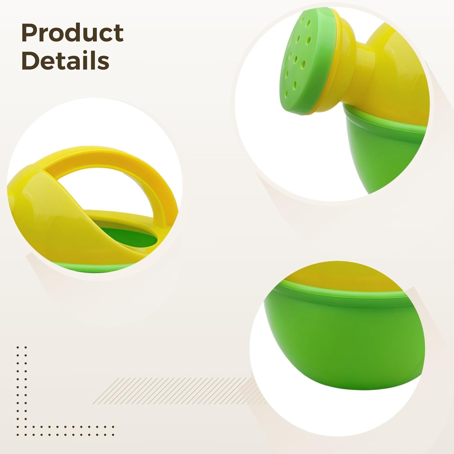 Piacevole tempo per il bagno: gli annaffiatoi dai colori vivaci aggiungono divertimento al momento del bagno; intrattengono e coinvolgono i più piccoli mentre fanno il bagno Tempo di gioco all'aperto: utilizzare in spiaggia o sabbiera per giochi fantasiosi; sviluppa le capacità motorie e il pensiero creativo Colori accattivanti: quattro colori vivaci, rosa, blu, giallo e verde; attirano l'attenzione dei bambini; incoraggiano l'esplorazione sensoriale Manico facile da impugnare: manico robusto progettato per mani piccole; leggero per una presa comoda e versata Costruzione durevole: realizzata in plastica resistente per un gioco di lunga durata; spray delicato dall'ugello sicuro per i più piccoli