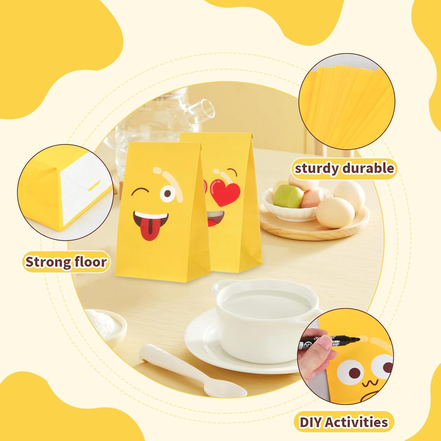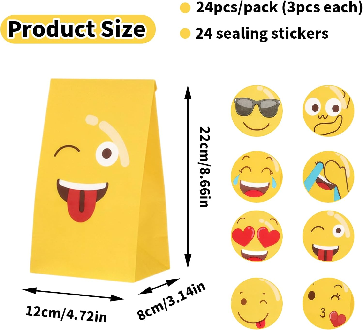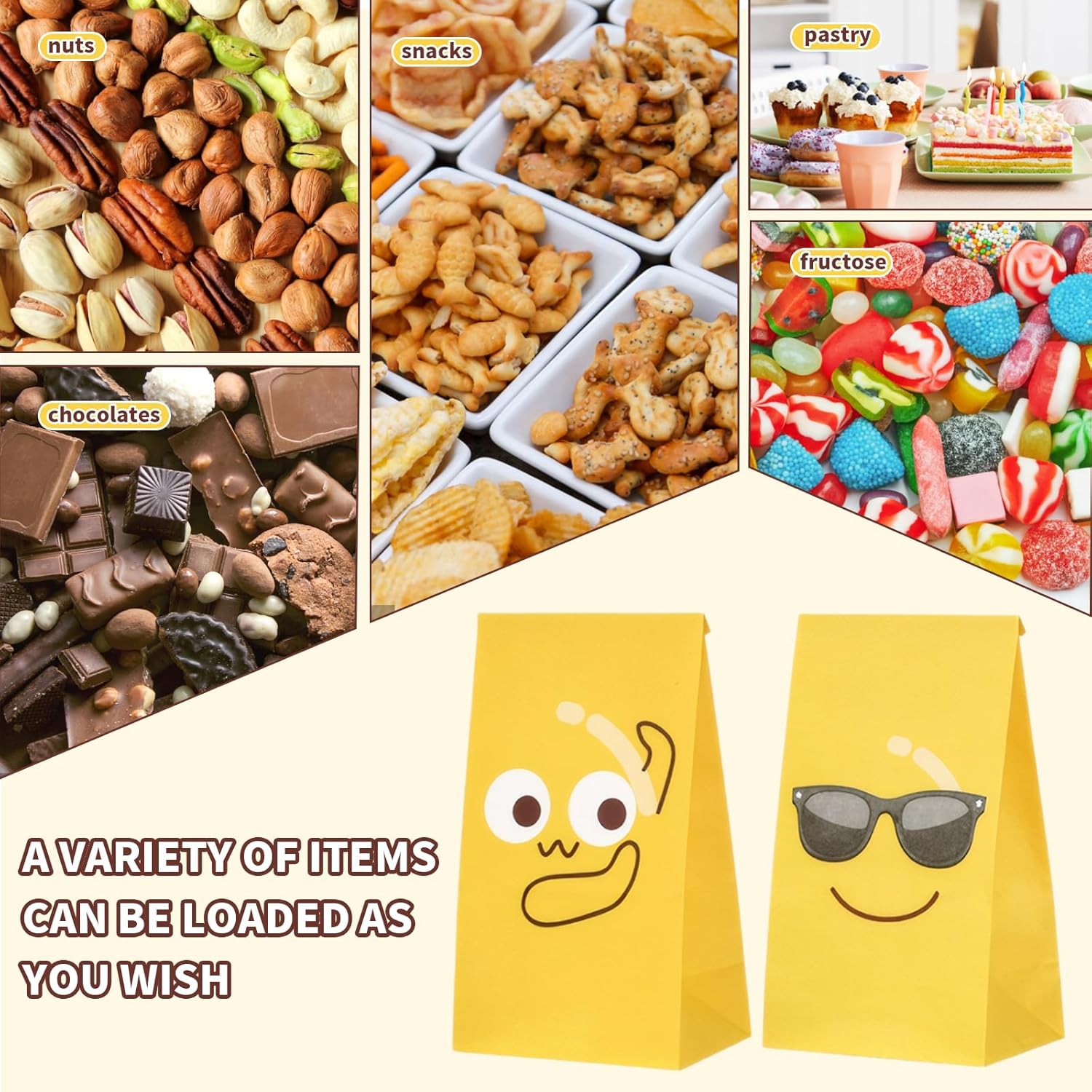 Design affascinante: il set perfetto di sacchetti di carta colpisce per la sua allegra tonalità gialla con simpatici motivi di cartoni animati, che lo rende irresistibile per grandi e piccini. Ogni set contiene 24 sacchetti in 8 modelli (3 pezzi ciascuno) che misurano 23 x 12 x 8 cm. Graziosi adesivi sigillanti: 24 adesivi autoadesivi colorati per sigillare, etichettare e progettare i tuoi sacchetti di carta per confezionare o conservare regali divertenti e pratici. Materiale di alta qualità: realizzati in carta kraft resistente ed ecologica, questi sacchetti sono riutilizzabili, inodori e sicuri. I colori vivaci assicurano che le tue borse siano attraenti e sostenibili. Facili da usare e personalizzare: questi sacchetti di carta pieghevoli sono perfetti per riporli facilmente e imballarli rapidamente. Usa la tua creatività per creare sacchetti regalo unici per torte, dolci, biscotti e altro ancora. MULTIUSO - Ideale per feste di compleanno per bambini, dolcetti di Halloween, regali di Natale e altro ancora. Usali per avvolgere caramelle, regali o piccoli oggetti per ogni occasione festiva.