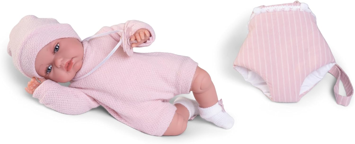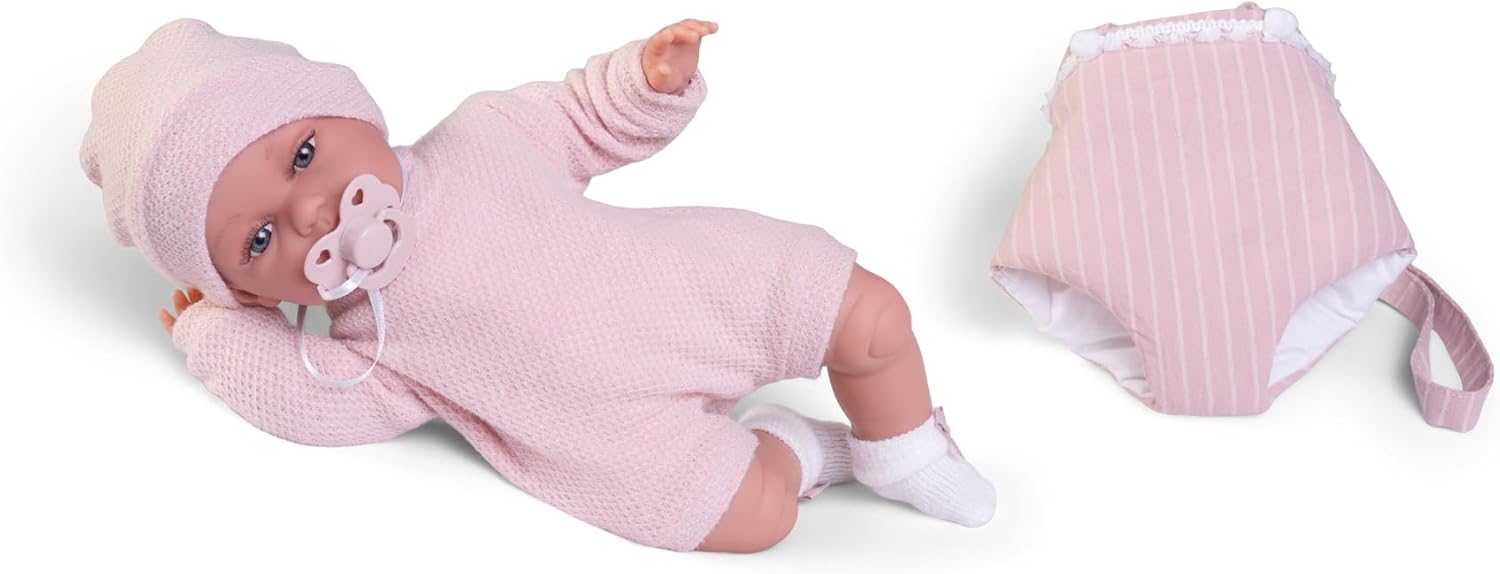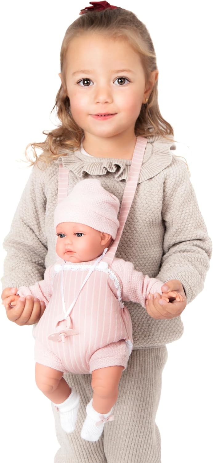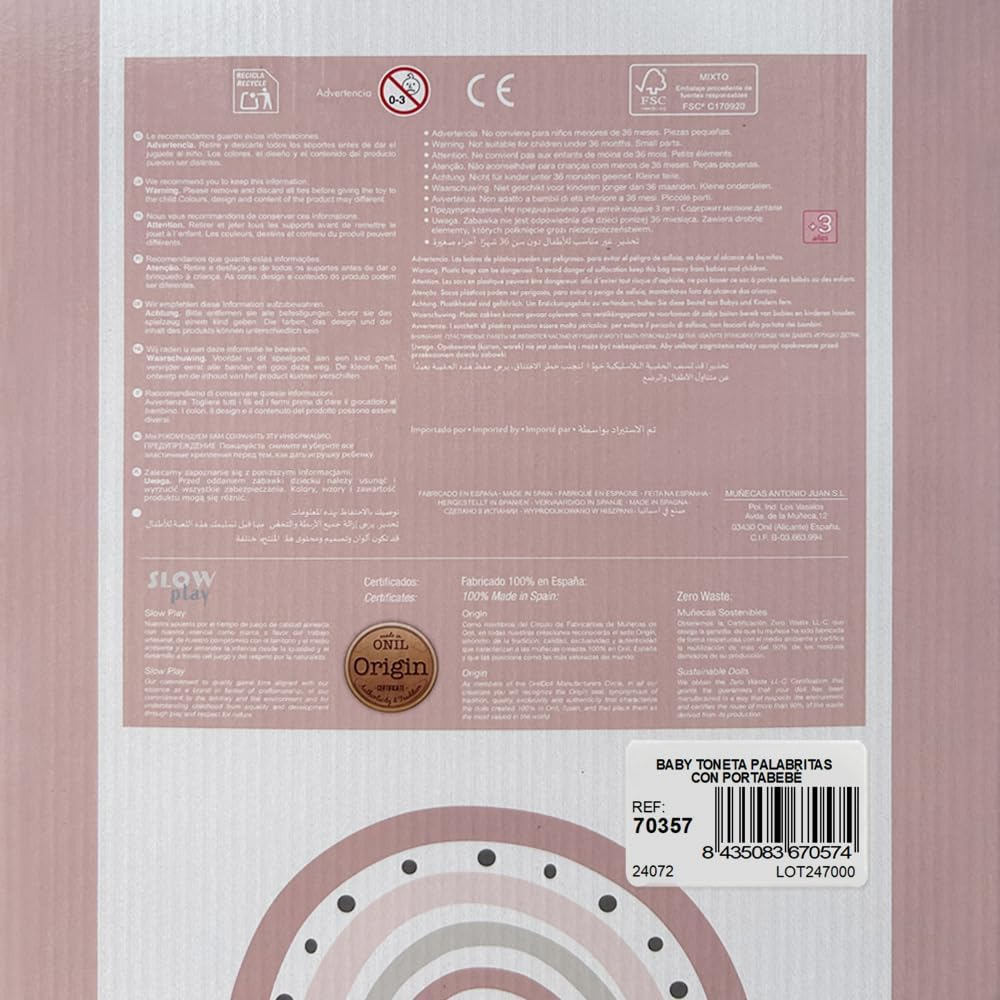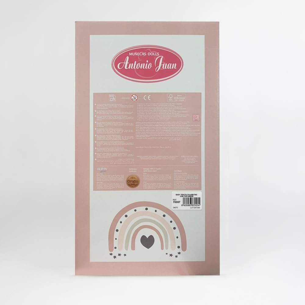 Incantevole interattività: premendo la pancia, Baby Toneta emette suoni balbettanti, offrendo un'esperienza di gioco interattiva che stimola l'udito e l'immaginazione. Comodo marsupio incluso: Il marsupio abbinato permette di trasportare Toneta durante le gite al parco o per le passeggiate, favorendo il gioco di ruolo e la mobilità. Abbigliamento e accessori caldi: viene fornito con un cappello e calzini per mantenere Toneta al caldo, aggiungendo realismo alla cura del bambino durante il gioco. Comodità nel gioco: con un peso di 450 g e una dimensione di 34 cm, questa bambola è perfetta da caricare e coccolare, ideale per i bambini piccoli. QUALITÀ E SICUREZZA: Realizzata con materiali morbidi e sicuri, Baby Toneta è progettata per durare ed essere una compagna di giochi sicura per i bambini.