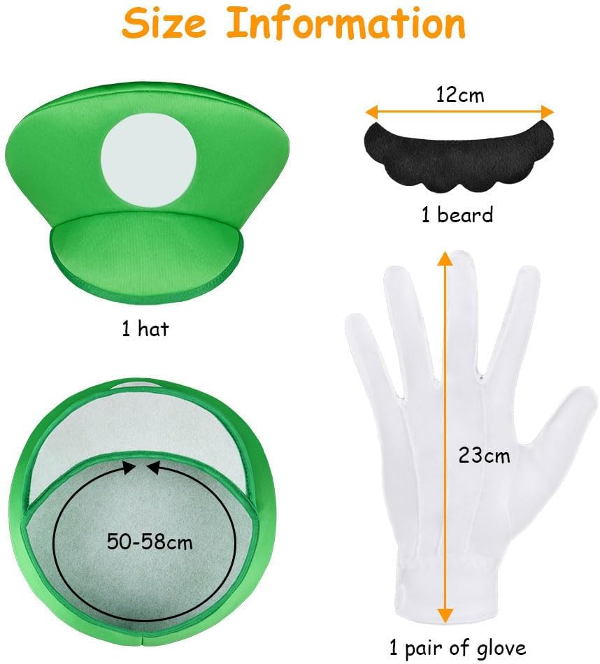 Gli accessori per giochi di ruolo di Mario ti permettono di divertirti, quindi entra in azione con i tuoi amici e la tua famiglia! Colore:Rosso Materiale: poliestere Il pacchetto include: 1 * Guanti, 1 * Cappello, 1 * Barba