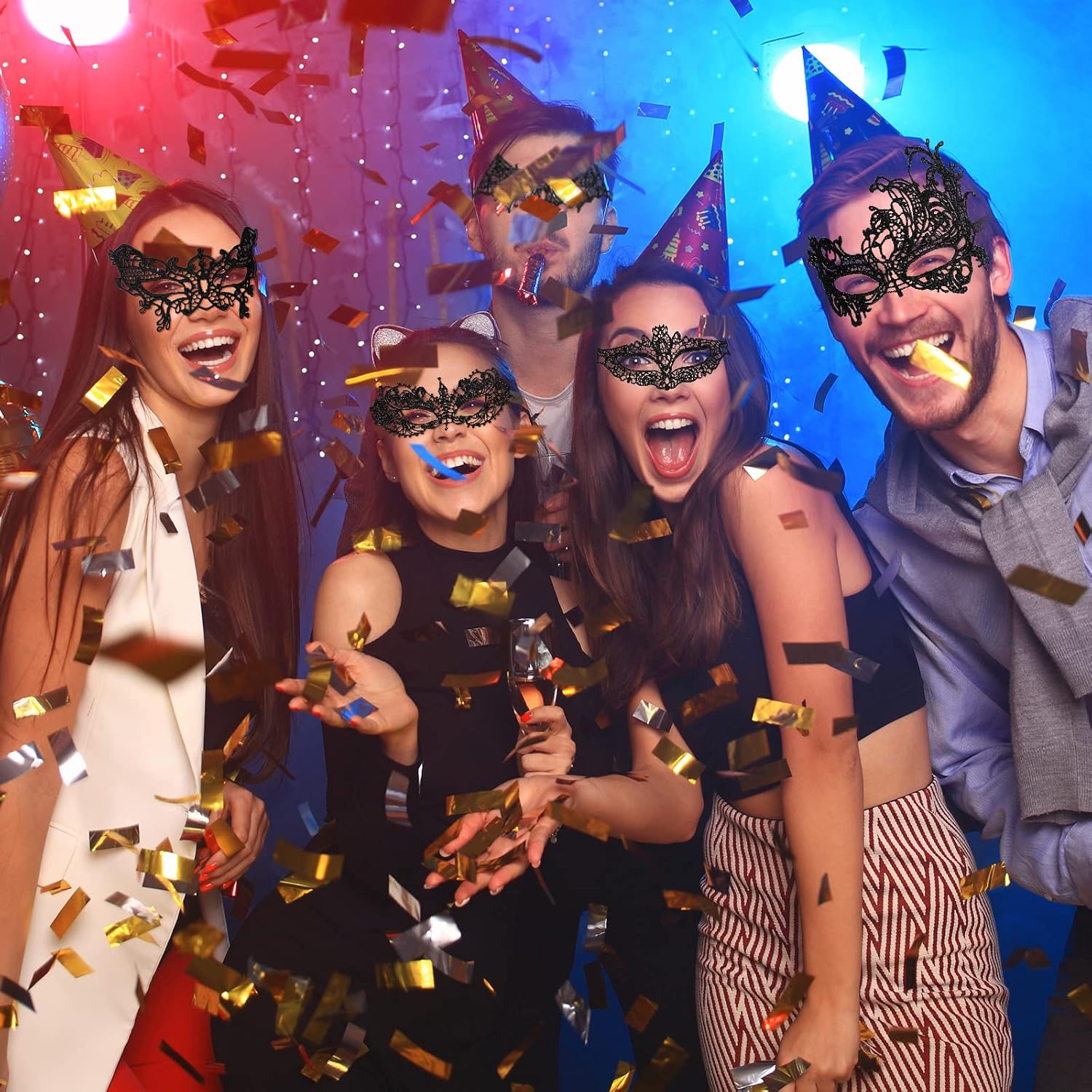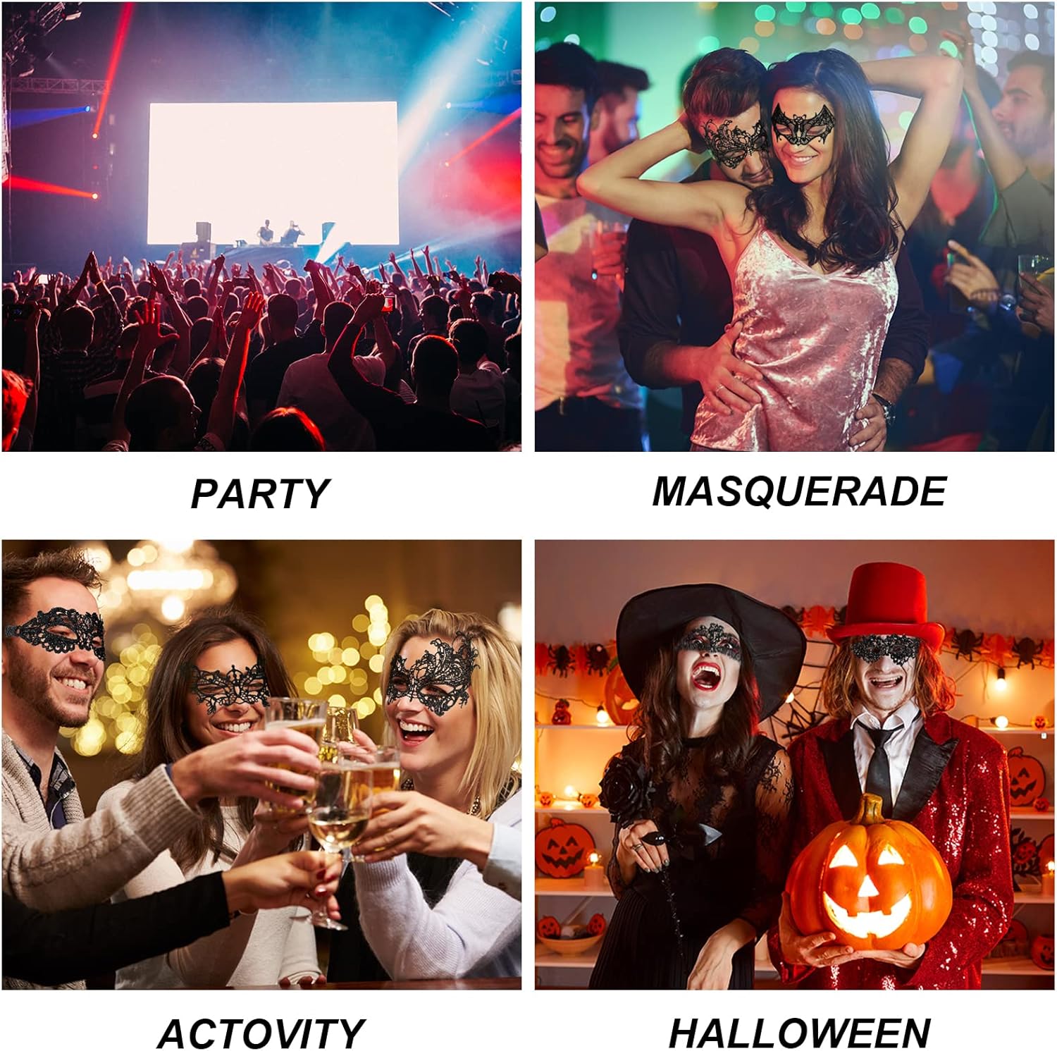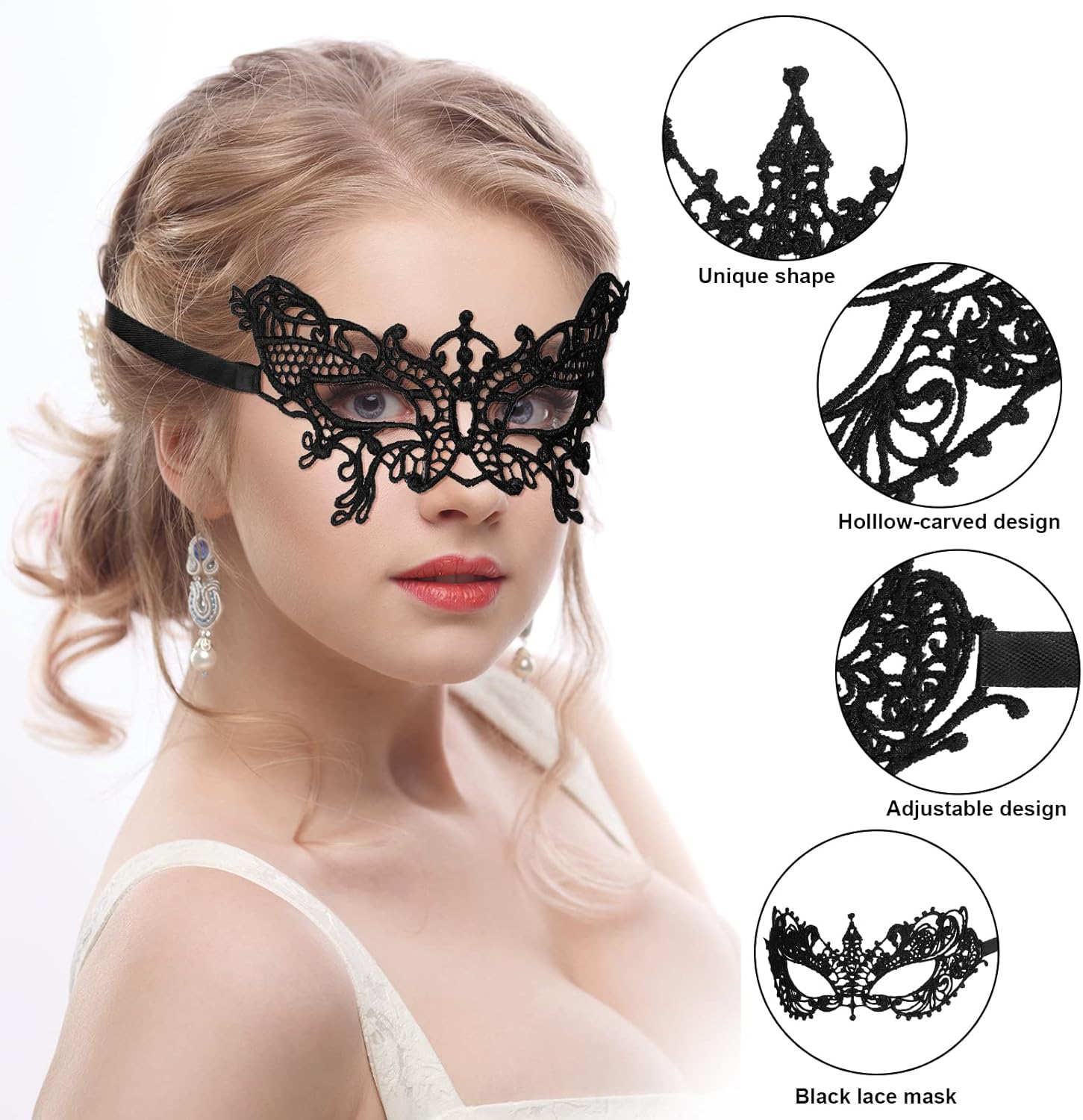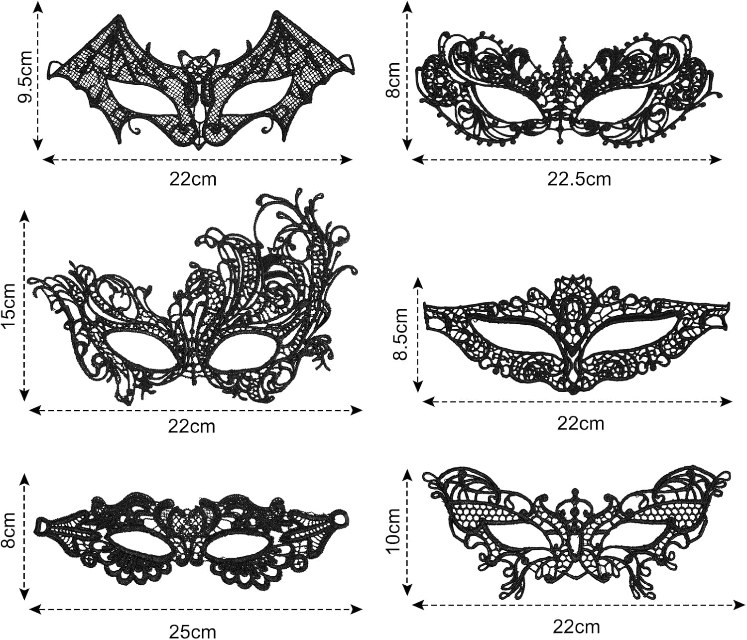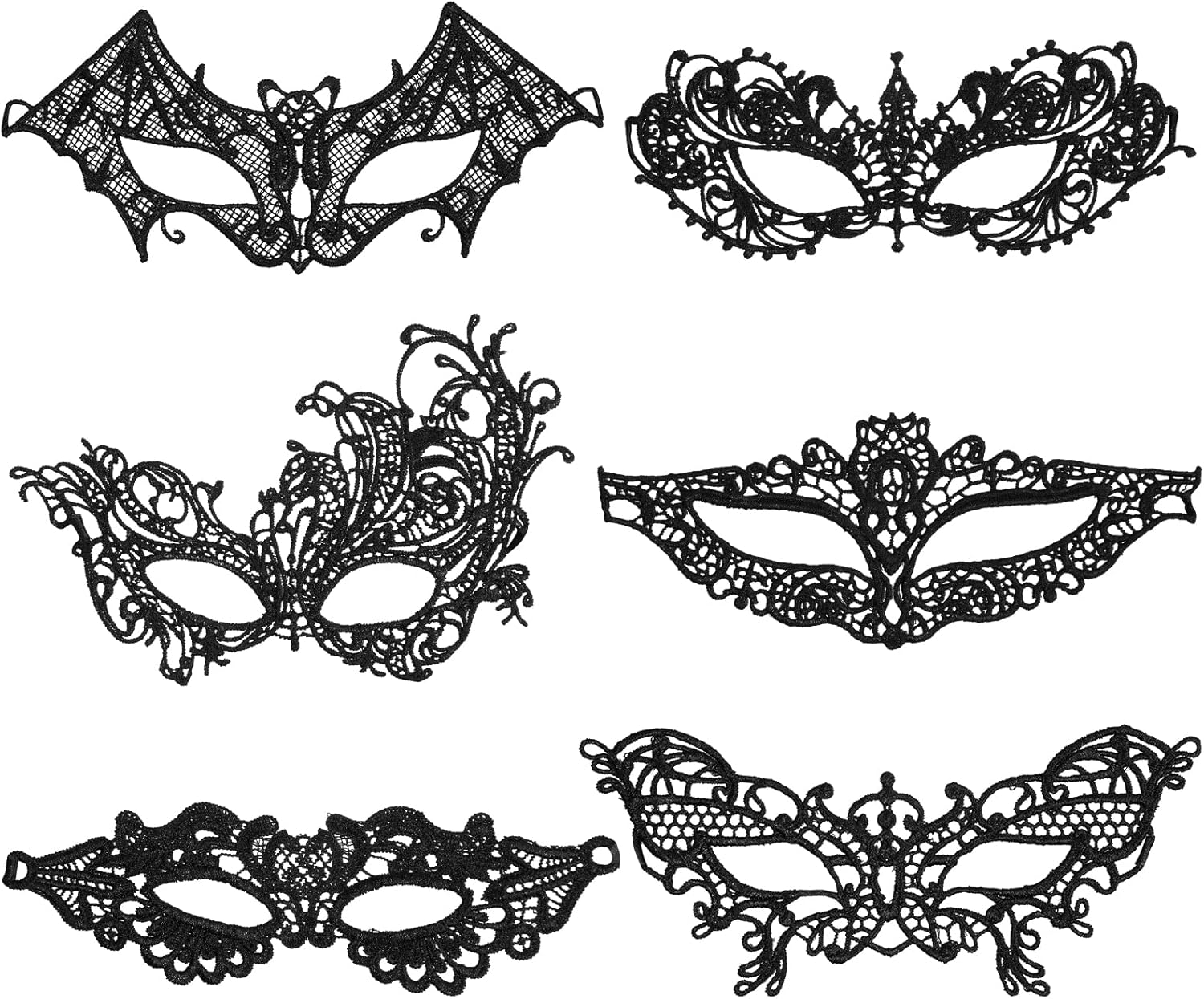 【Maschera Sexy】 Maschera di carnevale nera maschere sexy in maschera ha uno squisito design in pizzo, che sembra sexy e misterioso.Con un nastro, il motivo tridimensionale del pizzo a uncino mette perfettamente in risalto i tuoi begli occhi e ti rende bella. 【Materiale Morbido】 Maschera di pizzo nero è realizzata in pizzo delicato, una collezione di squisiti ricami, si adatta perfettamente al tuo viso ed è abbastanza morbida. Puoi regolare la tenuta delle cinghie per sentirti più a tuo agio. 【Stile Classico】 6 diversi stili di maschere-veneziane con stili diversi, ogni maschera mascherata è unica, sexy e affascinante, adatta a ogni stagione, a qualsiasi festa, può soddisfare le tue diverse esigenze, maschera carnevale adatta sia a uomini che a donne. 【Misterioso ed Elegante】 Maschera da ballo design delicato combinato con materiali di alta qualità, la maschera mascherata sembra misteriosa ed elegante, rendendoti la coppia protagonista della festa. Completalo con qualsiasi outfit. 【Ampio Utilizzo】 La maschera di pizzo come perfetta decorazione di carnevale è molto adatta per mascherata, carnevale, costume, ballo di fine anno, carnevale, Natale, Pasqua, festa di Capodanno, Halloween e altri eventi e occasioni, rendendoti il centro dell'intera festa .