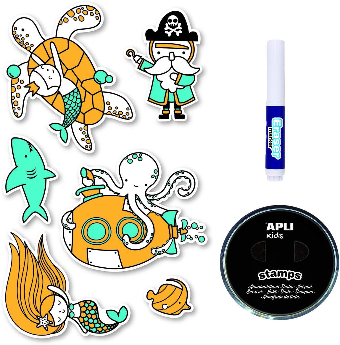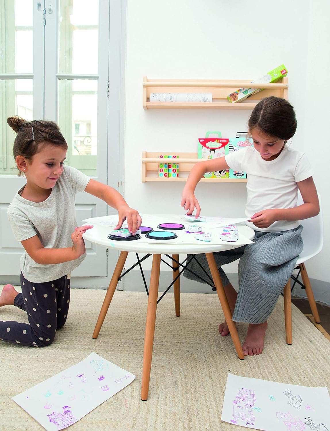 Adatto a bambini a partire dai 18 mesi. Ogni gioco contiene timbri ergonomici con disegni a seconda del tema. Serie di timbri e inchiostro cancellabile e 1 pennarello cancellabile. Contribuisce allo sviluppo Diversi temi: animali della fattoria, della giungla, dei dinosauri o delle principesse.