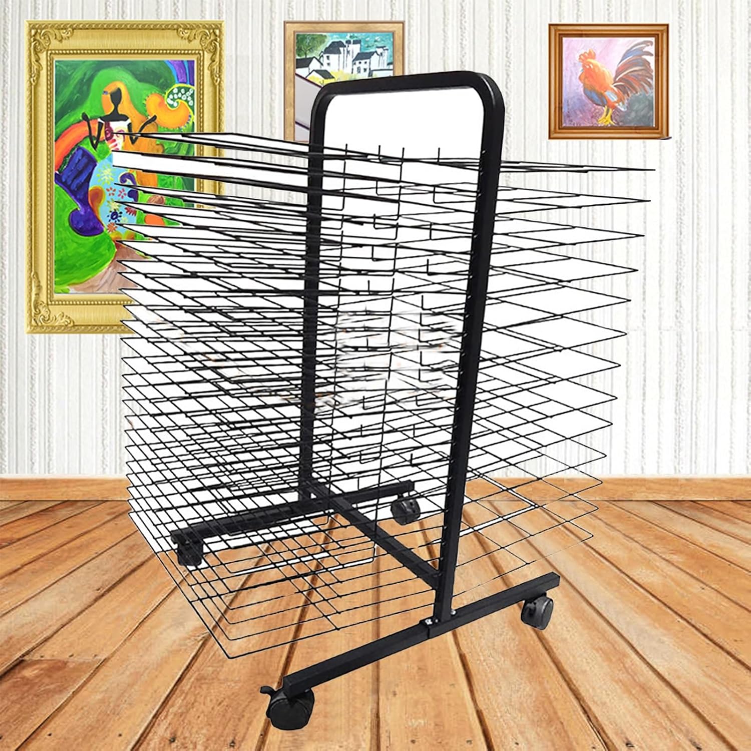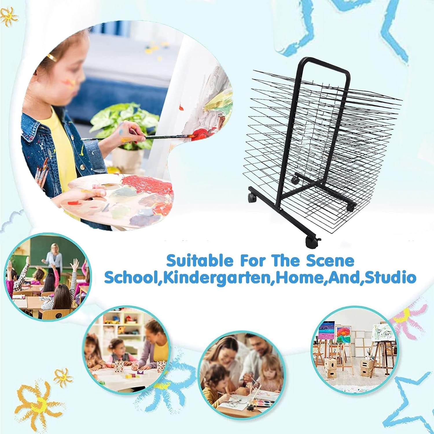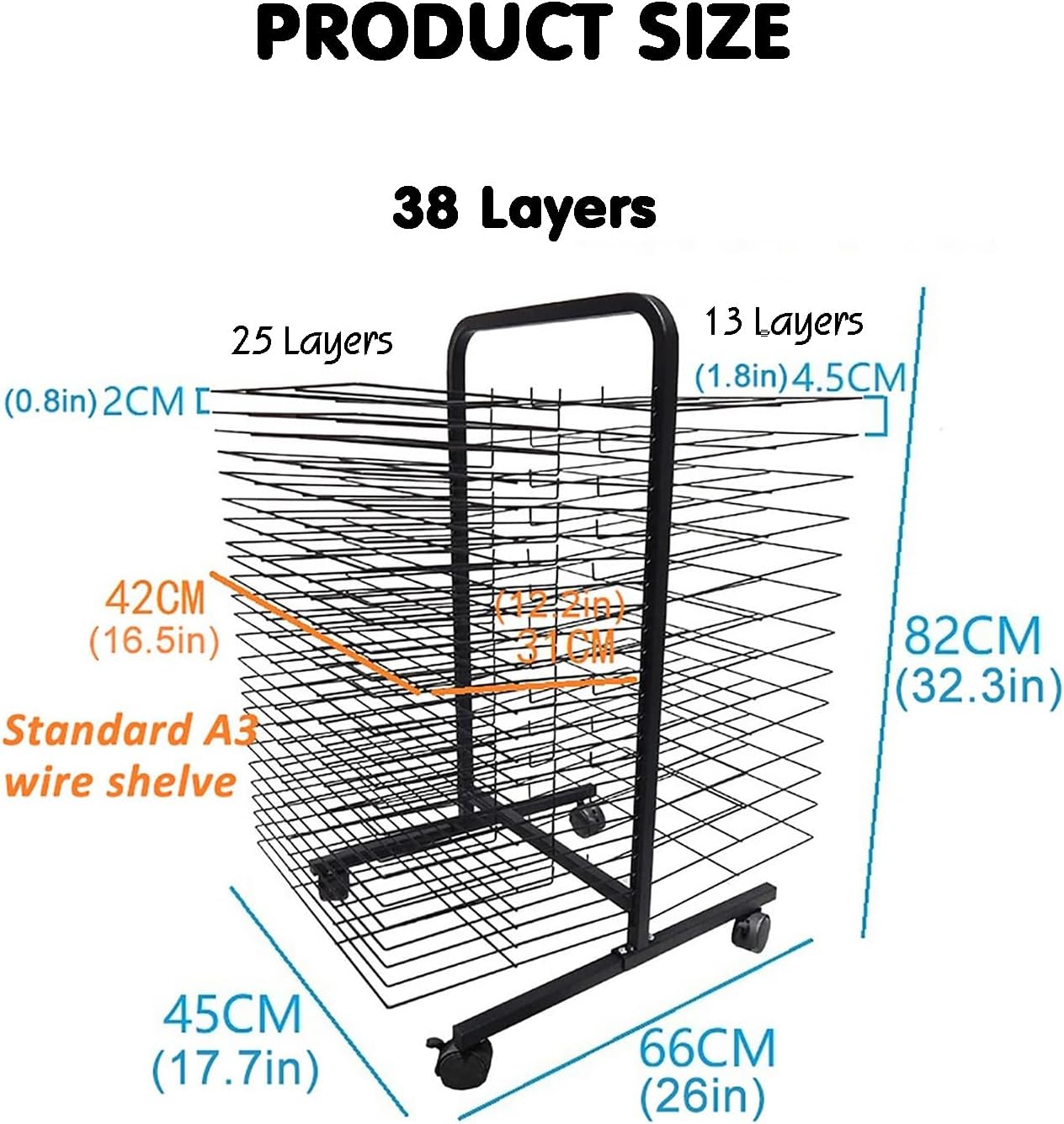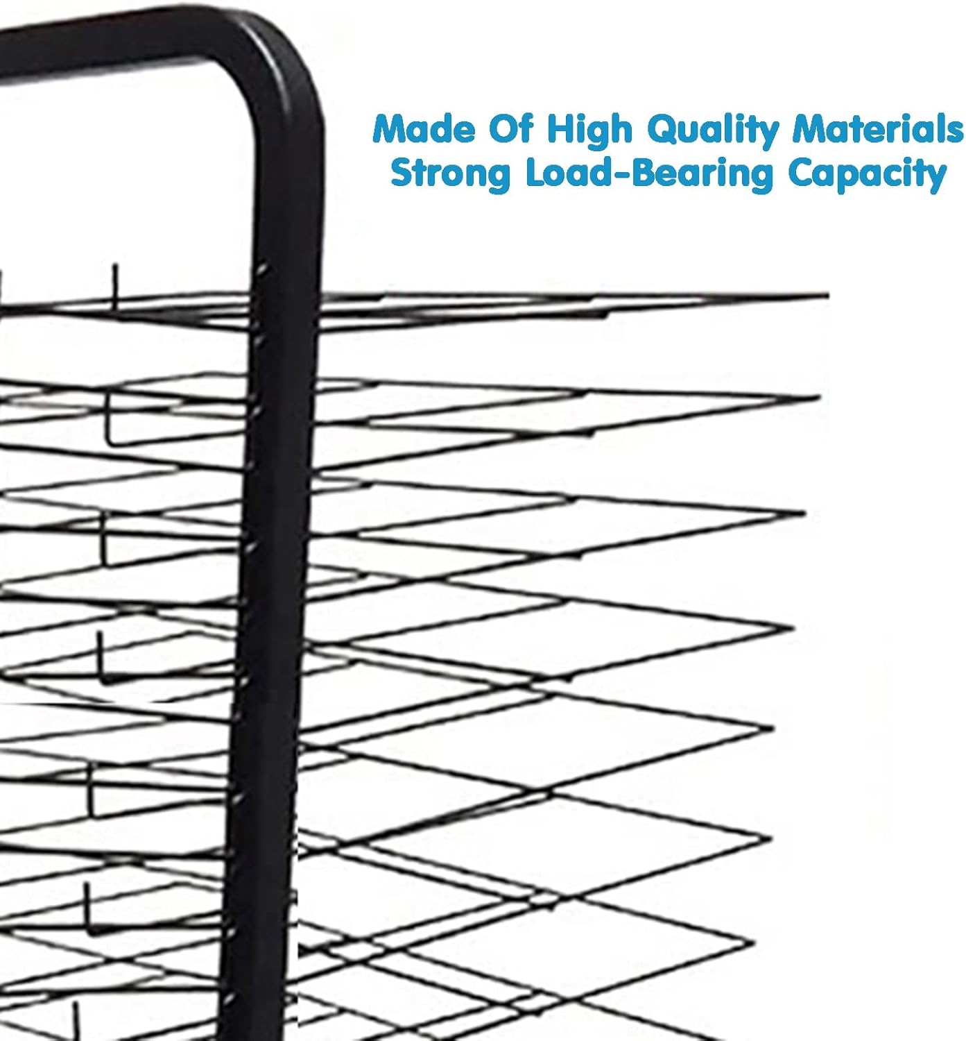 RUOTE MOBILI ----- Ci sono 4 ruote piroettanti sul rack artistico for l'aula, che può essere facilmente spostato su qualsiasi superficie liscia e piana, nel frattempo, è dotato di freni for mantenerlo fermo, che sarà stabile for sostenere i tuoi lavori artistici COSTRUZIONE ROBUSTA ----- Lo stendibiancheria è realizzato in metallo, durevole e di lunga durata, con una distanza di 2/4,5 cm tra i rack for garantire che l'arte rimanga pulita RACCOGLITORI for L'ASCIUGATURA ARTISTICA ----- L'asciugatura non è mai stata così semplice, gli stendibiancheria offrono molto spazio for posizionare in modo semplice e sicuro nuove creazioni di artisti, come stampe a getto d'inchiostro, tele, acquerelli o dipinti acrilici, poster e altre opere d'arte, for tenerli lontani essere macchiato o spiegazzato POSTI APPLICABILI ----- Molto adatto for asili nido, aule scolastiche, centri di prima educazione, case o studi e altri luoghi in cui è necessaria la pittura a olio secca FACILE DA ASSEMBLARE ----- Non sono necessari strumenti aggiuntivi for assemblare il supporto artistico, basta collegare insieme i telai superiore e inferiore, installare le rotelle, una persona può assemblare facilmente