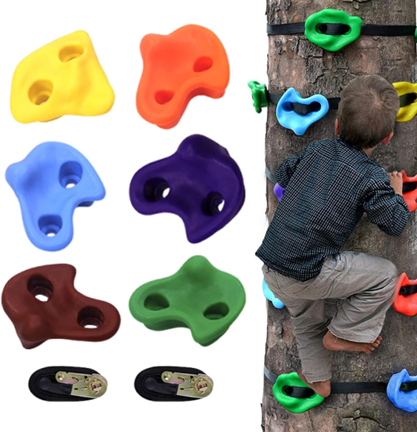 Tecnologia Bordi: Progettati con profili levigati e texture antiscivolo per garantire presa e appoggio sicuri durante ogni arrampicata su alberi per bambini Adattabilità agli alberi: di fissaggio con intelligente abbinato a strumento di serraggio garantisce montaggio rapido e tensione regolabile, si adatta a diverse dimensioni degli alberi mantenendo la facilità d'uso per tutti gli appassionati di arrampicata Versatilità d'Uso: Progettati per parchi esterni e giardini , questi appigli per arrampicata offrono molteplici possibilità d'impiego, perfetti per aree gioco bimbi per incoraggiare giochi creativi Crescita Integrata: Potenzia fisica ed equilibrio migliorando la coordinazione occhio-mano, sostenendo maggiore fiducia, concentrazione e traguardi evolutivi nei bambini durante l'arrampicata. Costruzione : Priorità alla sicurezza, appiglio per arrampicata su alberi ha struttura resistente che sopporta peso elevato garantendo prestazioni affidabili grazie al a cintura rinta
