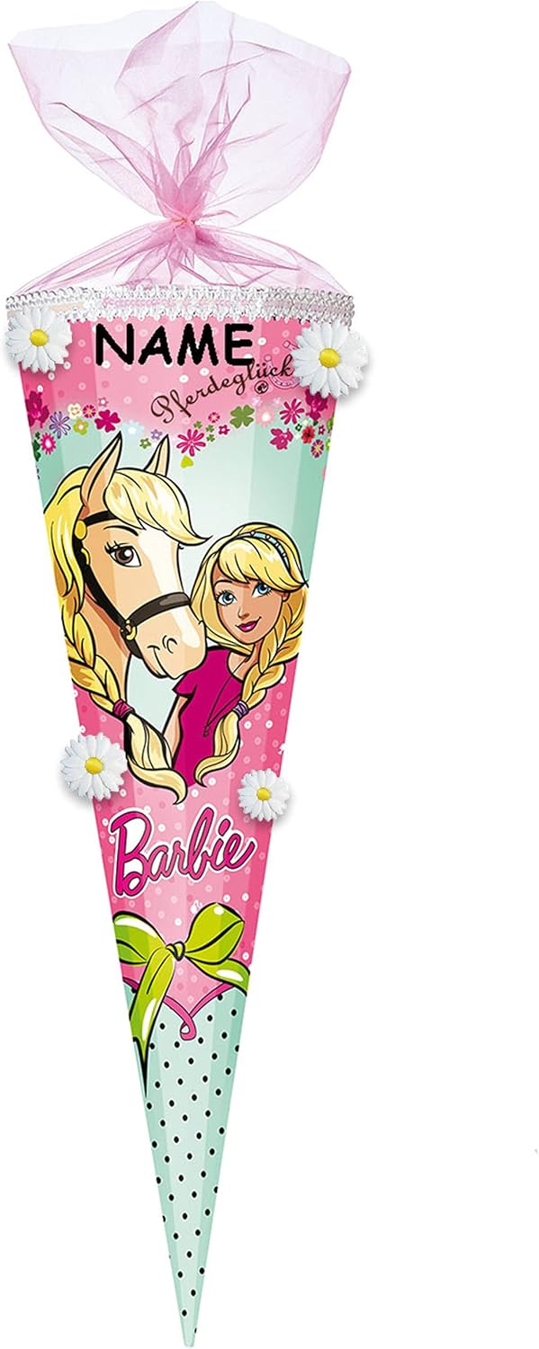 con fantastici fiori 3D e applicazioni in tessuto! __ cono scolastico stabile e di alta qualità _____ 85 cm di lunghezza con elegante finitura in organza - 12 quadrati ___ Motivo: "Barbie - Horse Happiness" Scelta della misura: 70 / 85 cm _____ OPZIONALE è disponibile una punta in plastica coordinata, trasparente e solida per il fissaggio (questo rende la punta del cono scolastico molto stabile e ferma) ---- (questo articolo deve essere ordinato EXTRA al cono scolastico) compreso: individualmente con il nome DESIDERATO - il nome sarà abbinato ___ la richiesta del nome verrà effettuata - AUTOMATICAMENTE entro 4 ore - per favore NON inviare un messaggio in anticipo ___ incluso un grande fiocco in colore coordinato - questo renderà il tuo cono scolastico ancora più accattivante ______ i modelli di fiocco verranno consegnati misti / selezioneremo un bellissimo fiocco con effetto 3D abbinato per il tuo cono scolastico (puoi vedere esempi nelle immagini) e come extra: IL FIOCCO individuale con il NOME desiderato - semplicemente l'articolo Aggiungi il "nome desiderato" nel carrello come extra, il nome verrà poi applicato al fiocco