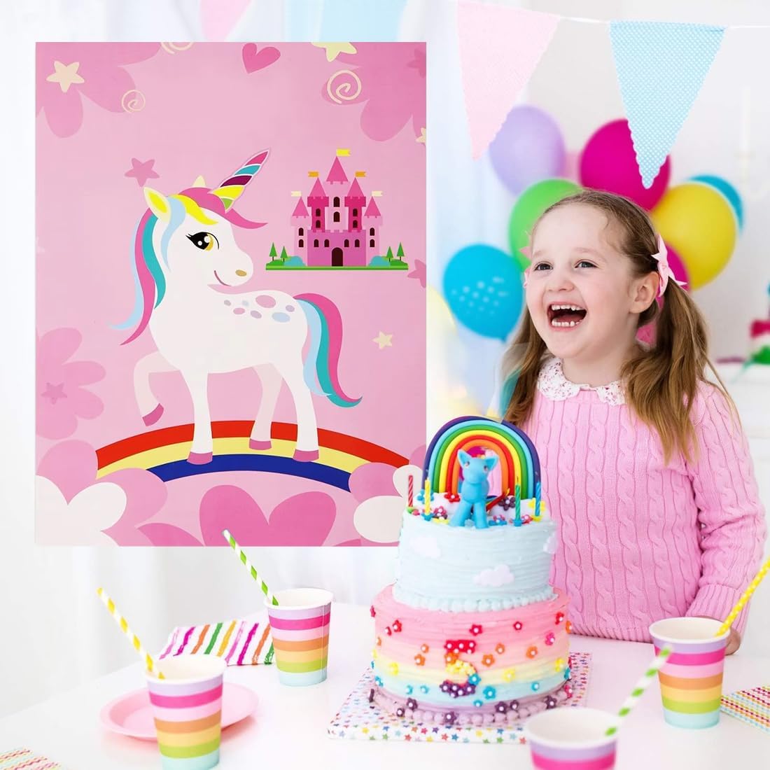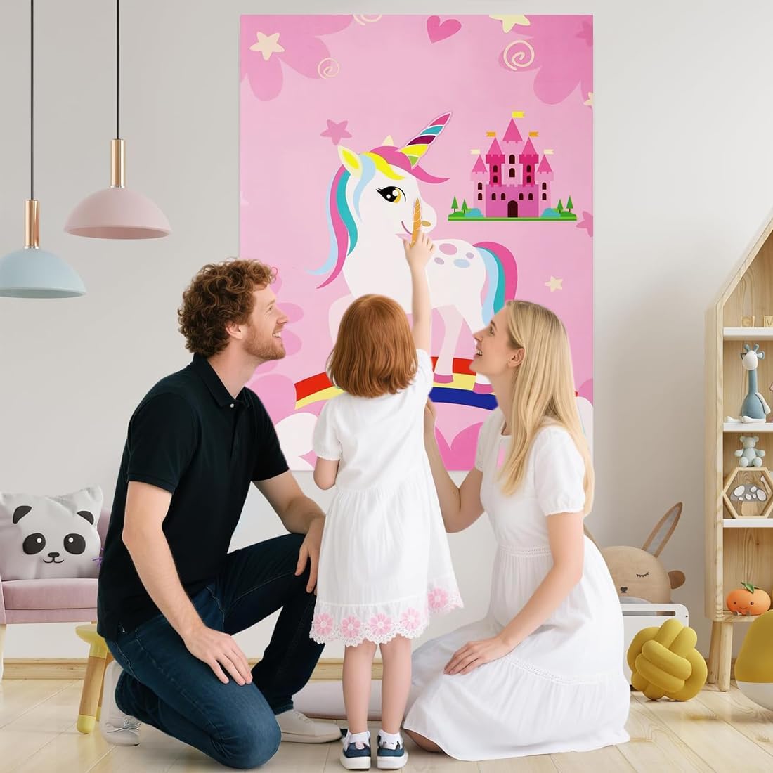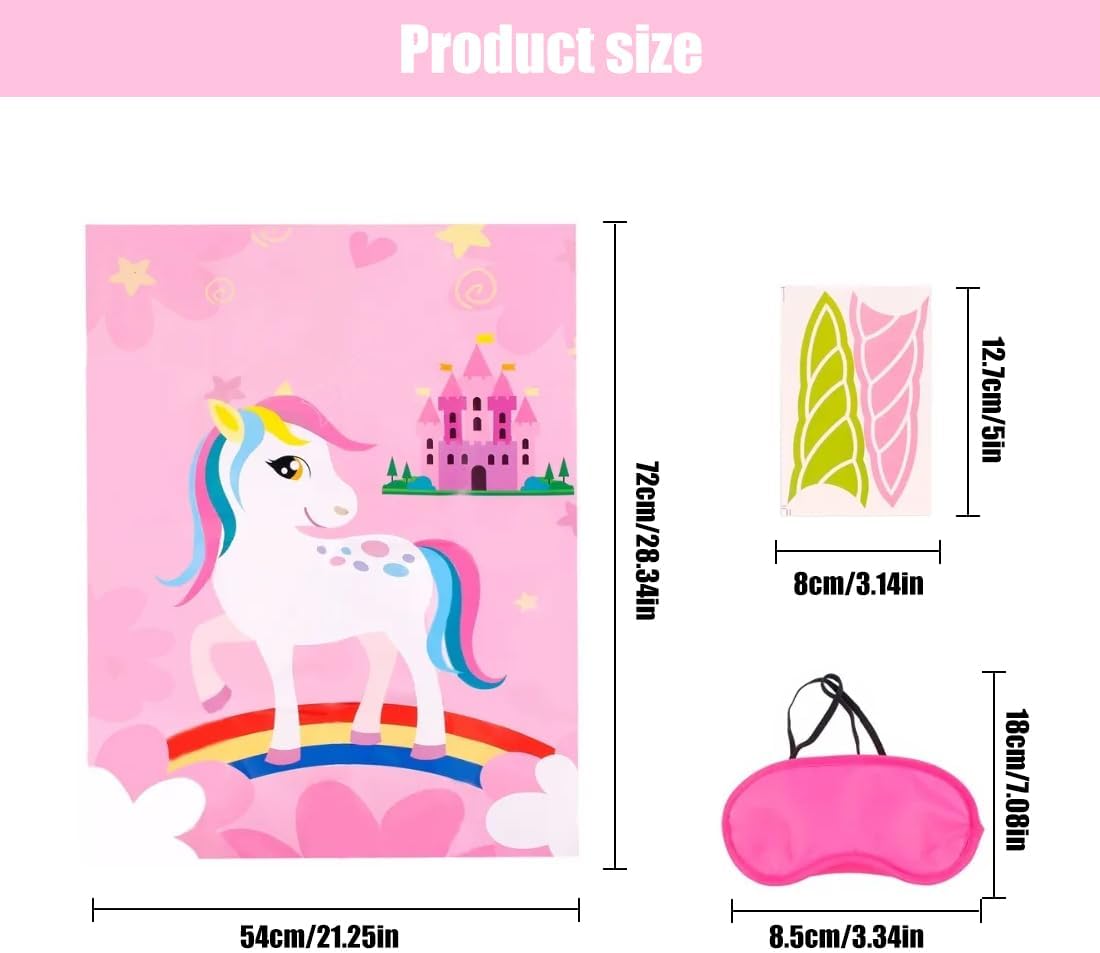 👍 La confezione include: 1 * poster unicorno; 1 * benda; 12 * adesivi a forma di corno di unicorno; 12 * punti adesivi 😎 Il set da gioco a tema unicorno è dotato di corno, il che lo rende un'ottima scelta per feste a tema unicorno, giochi per bambini, feste in classe e feste di compleanno. Aggiungi divertimento ai tuoi amici, bambini e famiglie. 😘 Gioco riutilizzabile: gli adesivi a forma di corno di unicorno sono facili da strappare, incollare, rimuovere e riposizionare. Porteranno tanto divertimento alle vostre famiglie e ai vostri bambini. 😍 Poster lucido grande 72 cm*54 cm, può essere utilizzato come decorazione per la casa, decorazione da parete, decorazione per la stanza, forniture per feste a tema unicorno 😊 COME SI GIOCA: Attacca il poster al muro con gli adesivi a pois, indossa la benda, prendi un corno e attaccalo all'unicorno. Chi si avvicina di più vince.