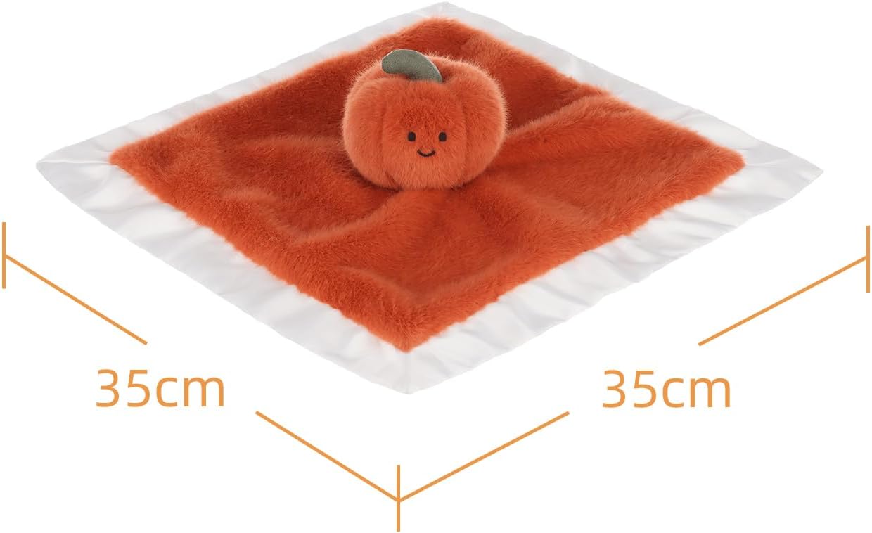 Compagno perfetto: la deliziosa coperta di sicurezza a forma di zucca è un compagno ideale per i bambini per giocare e coccolare. Misura 35 x 35 cm, il che lo rende la dimensione perfetta per il tuo bambino da afferrare, stimola lo sviluppo tattile e allena la forza della mano. Materiale premium: giocattolo fatto a mano al 100% con materiali morbidi e soffici di alta qualità. Il design speciale e l'artigianato prestano sempre attenzione alla sicurezza e alla salute. Facile da pulire: il nostro giocattolo per il panno lenitivo è realizzato in materiale lavabile, facile da pulire mettendo la coperta in lavatrice e seguendo le semplici istruzioni sull'etichetta. Adatto per l'uso dalla nascita: se hai solo bisogno di preparare un regalo per il neonato, questa sarà una buona scelta. Non è solo un simpatico compagno, ma ha anche il potere di calmare i bambini, coltivare la loro consapevolezza sensoriale. Regali speciali: questo asciugamano di alta qualità è il regalo perfetto per un neonato per la doccia o può anche essere utilizzato per decorare la cameretta dei bambini.