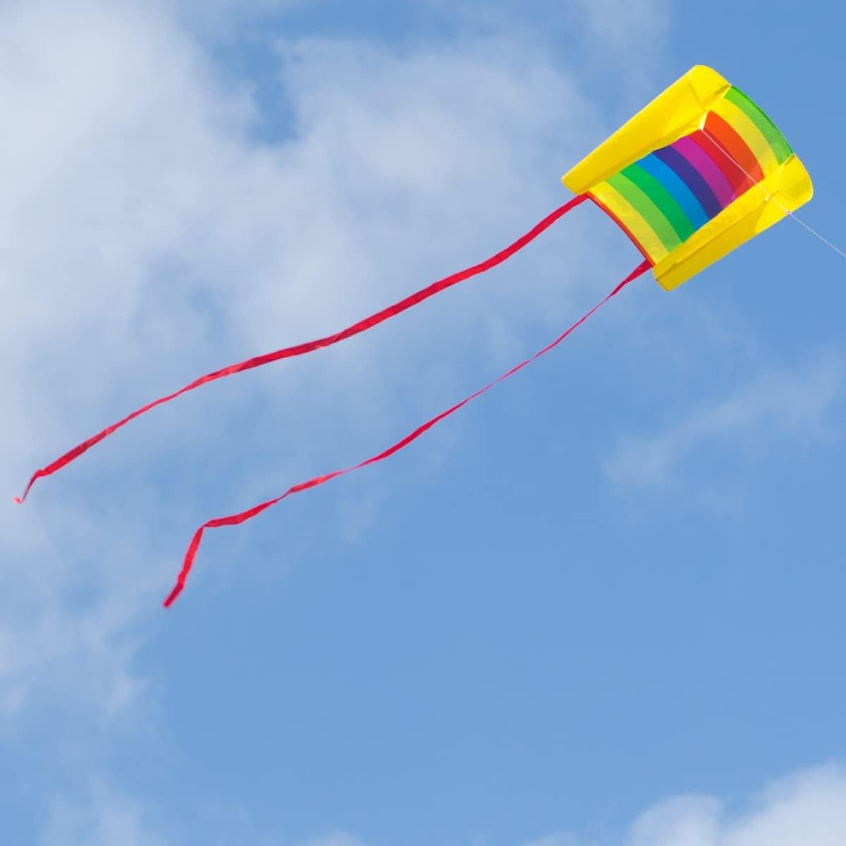 SEMPLICE E DI ALTA QUALITÀ - l'aquilone da slitta adatto ai bambini - cucito in tela di poliestere resistente agli strappi e dotato di pali in fibra di vetro infrangibili - è facile da montare e facile da far volare - l'aquilone perfetto per principianti per bambini dai 3 anni in su! SENSAZIONE UNICA DI SPIAGGIA - il Beach Kite Rainbow ha una vela centrale nei vivaci colori dell'arcobaleno e vele laterali in giallo - il design colorato è completato da due ca. Code a strisce lunghe 200 cm in rosso brillante PRATICO E SALVASPAZIO - un compagno ideale per una giornata all'aria aperta: Il Beach Kite è confezionato in una piccola borsa con moschettone e può quindi essere facilmente portato con sé sul passante della cintura dei pantaloni EFFETTO WOW E APPRENDIMENTO - l'affascinante momento in cui l'aquilone si alza in aria è indimenticabile per i bambini! Il bambino impara in modo giocoso come il vento lo influenza, migliora le sue capacità di coordinazione e sperimenta un grande senso di realizzazione non appena avvia e controlla l'aquilone. SOSTENIBILE - SICURO ED EQUO - utilizziamo solo materiali innocui per la salute. I nostri aquiloni sono prodotti secondo gli standard europei. Naturalmente, per noi il lavoro minorile è assolutamente vietato!
