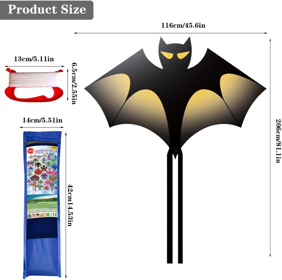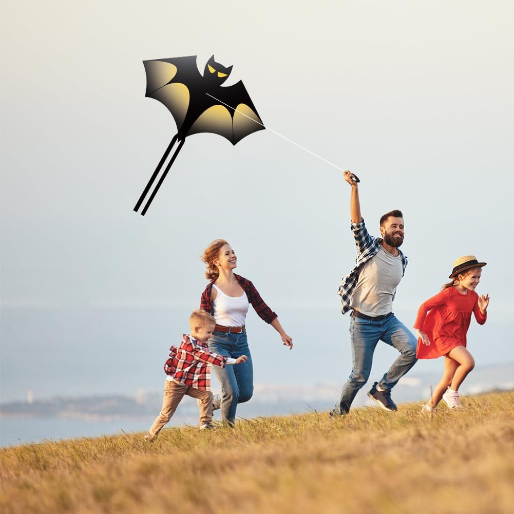 ALTA QUALITÀ: aquilone a linea singola adatto ai bambini realizzato in tessuto di poliestere resistente agli strappi con pali in fibra di vetro infrangibili. Il design accattivante del pipistrello e il colore nero audace sono impressionanti, rendendolo un vero e proprio eye-catcher nel cielo. FACILE DA VOLARE: stabile con vento leggero. Questo accessorio per l'aquilone esce dalla borsa e può essere assemblato in un aquilone in pochi minuti. Molto facile da completare e far volare. Questi aquiloni per bambini sono perfetti per tutte le età, compresi bambini, adolescenti, adulti e anziani. CARATTERISTICHE DI VOLO PERFETTE: Il grande aquilone pipistrello nero è adatto a venti leggeri e può essere facilmente pilotato da bambini dai 3 anni in su - grazie all'ampia superficie velica e al peso ridotto, l'aquilone può essere fatto volare anche con venti leggeri di 0,5 Bft. può essere volato - La coda a strisce lunga 1,3 metri garantisce un volo regolare dell'aquilone. ATTIVITÀ ALL'APERTO: Il set di aquiloni comprende un aquilone da pipistrello, 100 metri di linea, istruzioni di montaggio e una borsa per la conservazione. Aiuta tuo figlio a mettere da parte i videogiochi ed esplorare modi per impegnarsi in attività all'aperto e attività ricreative salutari. ATTIVITÀ DIVERTENTI: gli aquiloni sono facili da far volare anche per i principianti e tuttavia sono così divertenti che sono interessanti per tutti i livelli di abilità. Nel parco, sulla spiaggia, stai nel vento e lascialo volare. Che sia in spiaggia o al parco, puoi far volare il tuo aquilone ovunque e divertirti con la tua famiglia.