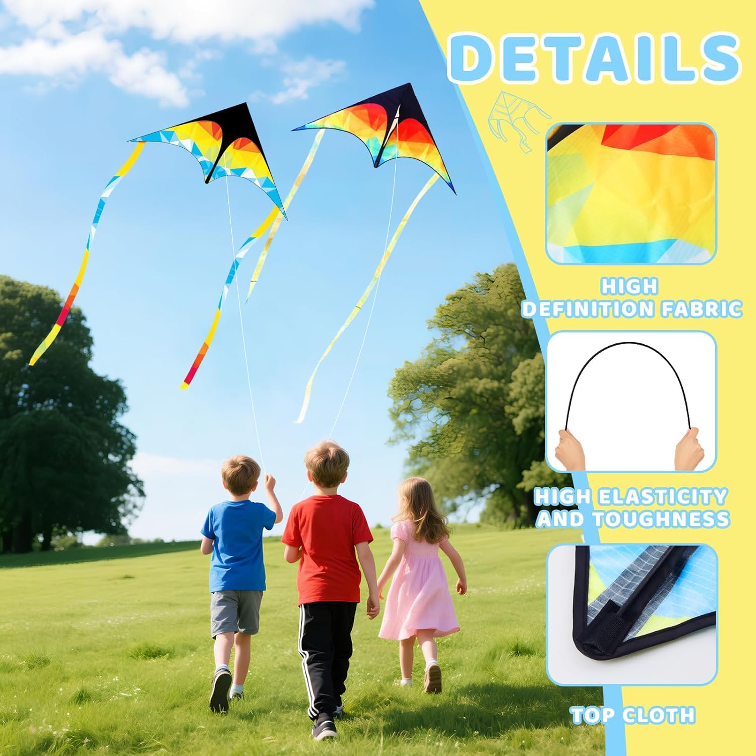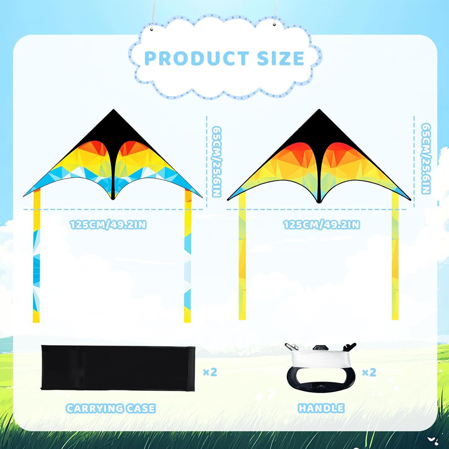 【Menu ricco】 Il pacchetto Kite contiene due aquiloni, due linee di maniglie a forma di D lunghe 100 m e due borse portaoggetti. È perfetto per coppie o famiglie, perfetto per gite, viaggi genitori-figli o riunioni, offrendo un tempo all'aria aperta pieno di divertimento e colore. 【Design raffinato】 Gli aquiloni per bambini con colori vivaci e motivi squisiti sono eleganti e maneggevoli, hanno un grande impatto visivo e diventano facilmente il fulcro del parco o della spiaggia. 【Funzionamento semplice】 L'aquilone per bambini è realizzato in tessuto leggero, leggero e resistente al vento, durevole e facile da controllare. La struttura è semplice e stabile e può essere assemblata rapidamente collegando alcuni pali del kite. Anche i principianti e i bambini possono iniziare facilmente e godersi il divertimento del volo. 【Giocattolo educativo】 I giocattoli con aquiloni consentono ai bambini di apprendere in modo giocoso il vento, l'equilibrio e il volo, incoraggiando il loro interesse per la natura e la scienza. È sia un giocattolo divertente che uno strumento educativo per la famiglia che promuove l'apprendimento e la crescita. 【Scelta perfetta】 L'aquilone è un regalo meraviglioso per bambini, amici e familiari. Permette loro di provare la gioia di volare e di creare bellissimi ricordi in spazi aperti come giardini, prati, spiagge e parchi.