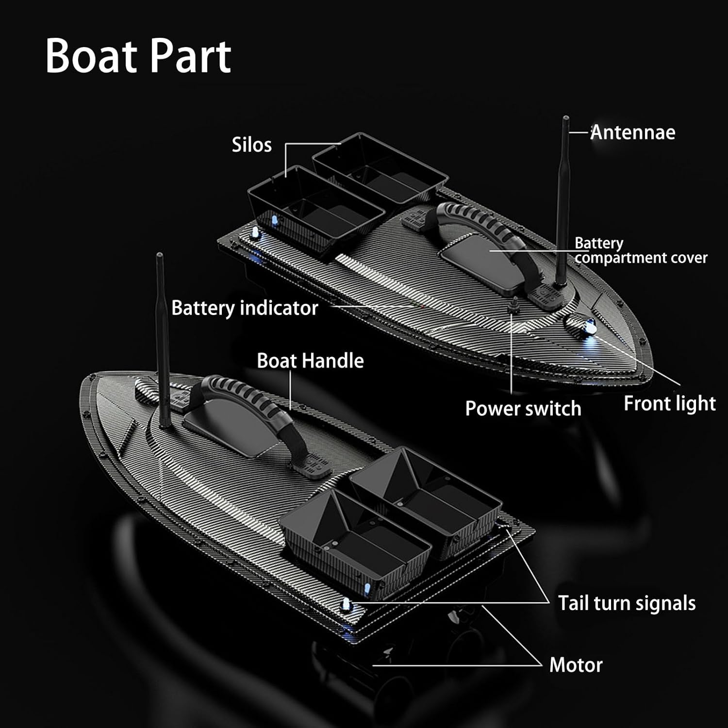 Costruzione durevole: il corpo della barca è realizzato con materiale addominali forti attraverso iniezione una tantum per un'eccellente resistenza all'impatto e durata condizioni difficili Navigazione di precisione: la velocità costante auto mantiene una rotta dritta con giroscopico per il mantenimento del percorso accurato nel o nelle onde Efficienti motori a doppio motori: motori a doppio motori con di coperture protettive mentre il posizionamento della batteria a medio scafo garantisce prestazioni bilanciate esca versatile: le tramogge doppie indipendenti abilitano la distribuzione delle esche precise con una capacità di 1,5 kg per vari scenari di pesca Visibilità avanzata: luci di navigazione direzionale e seggerghi forniscono chiari spunti di orientamento durante il funzionamento diurno o notturno
