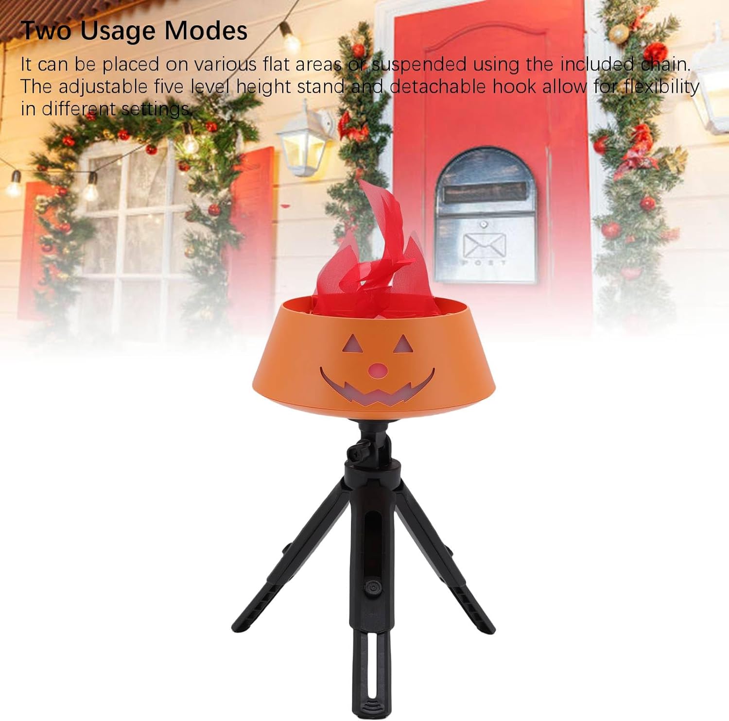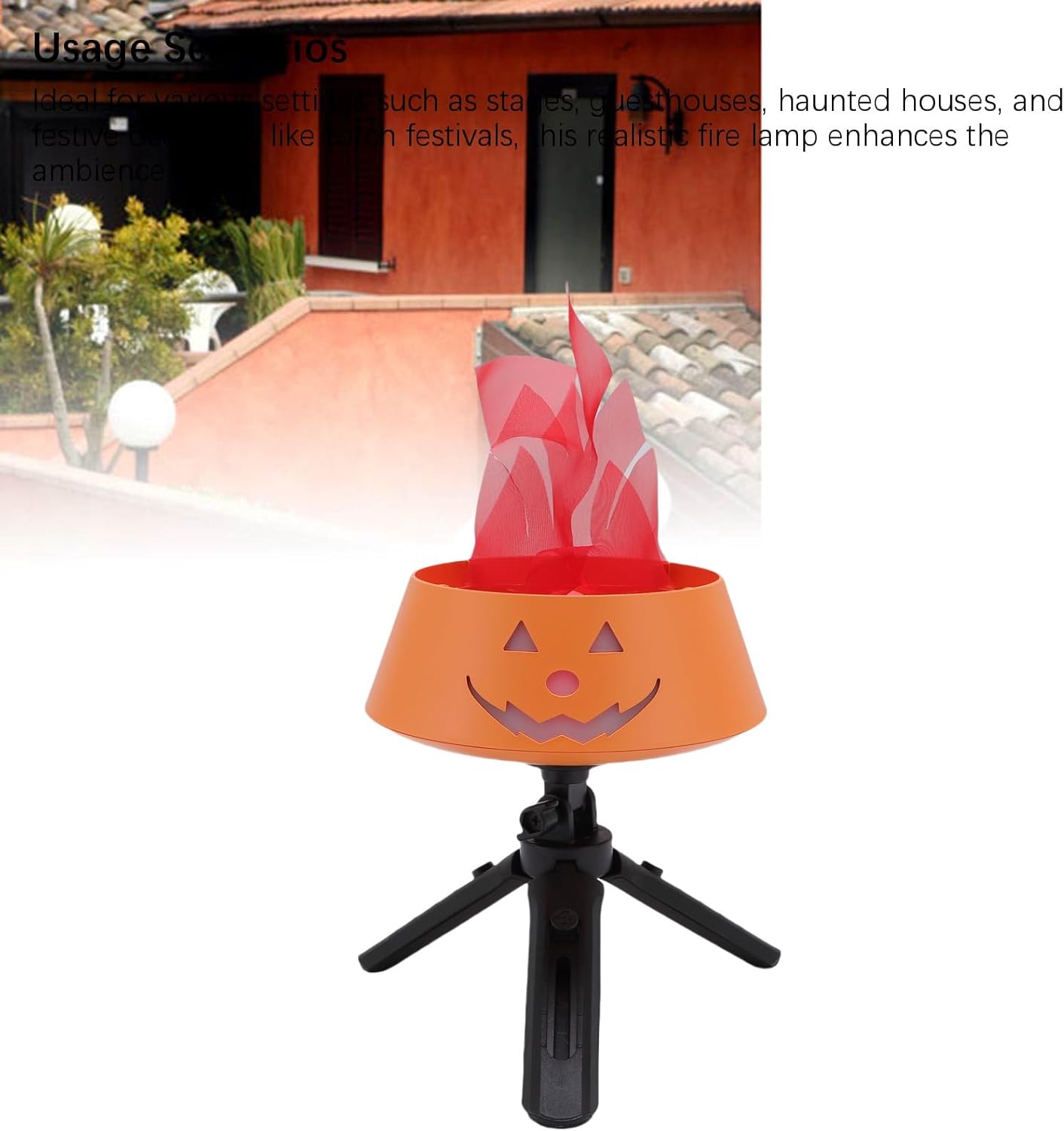 [Posizionamento versatile] può essere posizionato su superfici piatte o sospeso con supporto regolabile e gancio staccabile per la flessibilità. [Uso versatile] Ideale per fasi, pensioni, infestate e occasioni festive, migliorando l'atmosfera con un effetto di fuoco reale. [Portatile e conveniente] Presenta una batteria da 1500 mAh facile portabilità senza dover collegare, ideale per qualsiasi posizione. [design reale] realizzato in tessuto di seta con vibranti perle a LED, creando un effetto di fuoco realistico quando migliorato da movimenti e riflettori. [Potente design del ventilatore] eleva il fuoco di seta con un flusso d'aria uniforme e un rumore minimo, migliorando l'effetto visivo e aiutando nella dissipazione del calore.