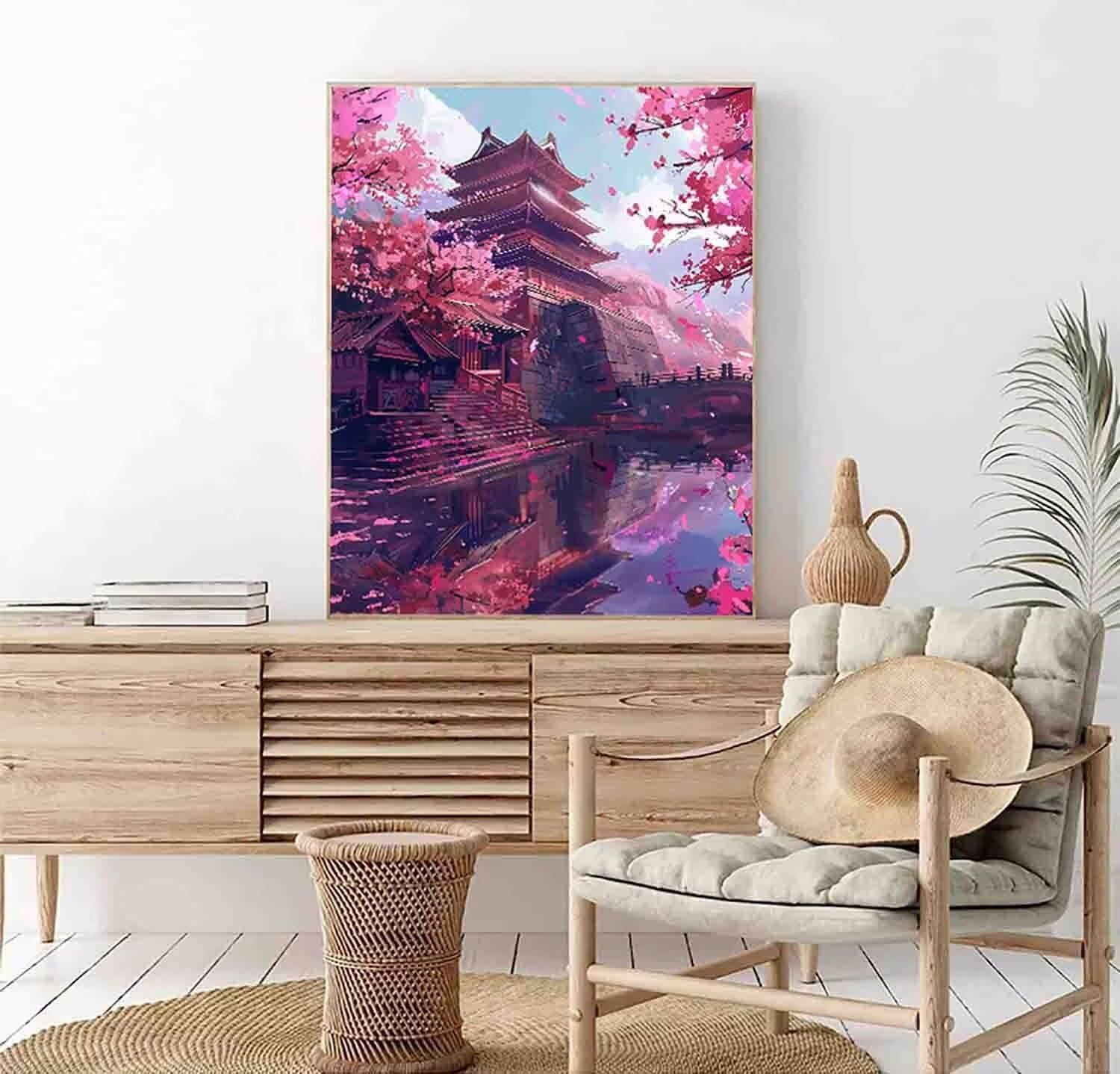 Architettura Dipingere con i Numeri Giappone Dipingere con i Numeri Adulti Bambini DIY Paint by Numbers con Pennelli e Pigmento Acrilico Kit per Decorazione da Parete 40x50cm (senza Cornice) s-J3