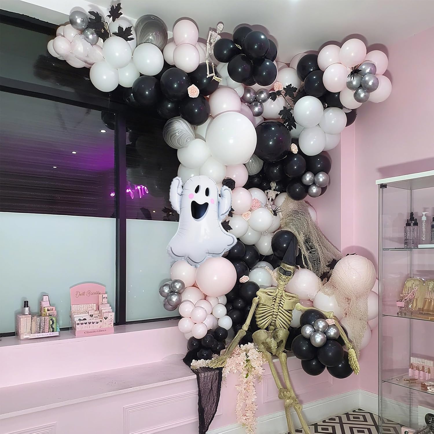 Kit di palloncini decorativi per Halloween da 131 pezzi: include palloncini rosa (1 pezzo da 45,7 cm + 20 pezzi da 25,4 cm + 12 pezzi da 12,7 cm), palloncini neri opachi (1 pezzo da 45,7 cm + 15 pezzi da 25,4 cm + 12 pezzi da 12,7 cm), palloncini bianchi (1 pezzo da 45,7 cm + 15 pezzi da 25,4 cm) cm + 12 pezzi 12,7 cm), palloncino nero agata (6 pezzi da 25,4 cm), 6 palloncini a pipistrello da 30,5 cm, 20 palloncini in argento da 12,7 cm, 2 palloncini lunghi neri per palloncini fai da te, 12 pipistrelli 3D di Halloween, 1 palloncino in lamina fantasma, 1 striscia per ghirlanda di palloncini, 5 punti di colla, per decorazioni spettrali di Halloween Materiali aggiornati: realizzati con palloncini in lattice di alta qualità e lamina spessa, queste decorazioni rosa per palloncini di Halloween sono atossiche, di lunga durata e resistenti alle intemperie. Con Boo! e palloncini in lamina Bat Wing inclusi, questo set porta vibrazioni carine e spettrali a qualsiasi festa di Halloween palloncini arco o parete Facile da installare: questo versatile globo di Halloween può essere facilmente trasformato in spaventoso arco di palloncini, ghirlanda di palloncini fantasma, bouquet spettrali di un palloncino. Basta inserire palloncini gonfiati nei fori della catena per palloncini, senza bisogno di attrezzi o abilità. Ci vogliono solo pochi minuti per costruire un arco creativo di palloncini per feste di Halloween. Fai da te in forme spettrali come ragni, pareti o centrotavola per vasi da strega per decorazioni per feste di Halloween interne o esterne Perfetto per le foto: crea ricordi indimenticabili con il kit di arco di palloncini di Halloween, perfetto per uno sfondo spettrale della cabina fotografica, decorazioni per feste di Halloween, ingresso della casa infestata o eventi scolastici di Halloween. Ideale per feste di compleanno di Halloween, riunioni dolcetto o scherzetto, cosplay o feste a tema horror, arco di palloncini di nozze di Halloween o decorazioni per baby shower di Halloween. Funziona magnificamente per decorazioni di Halloween per interni o ghirlande di palloncini di Halloween all'aperto, aggiungendo fascino festivo spaventoso alla celebrazione Garanzia di soddisfazione del cliente: siamo orgogliosi della nostra qualità del prodotto. Ogni globo di Halloween in questo kit è selezionato per durata, valore e facilità d'uso. Dai centrotavola spettrali all'arco baloon di Halloween, se non sei completamente soddisfatto del tuo arco di palloncini di Halloween, contattaci: siamo qui per aiutarti.