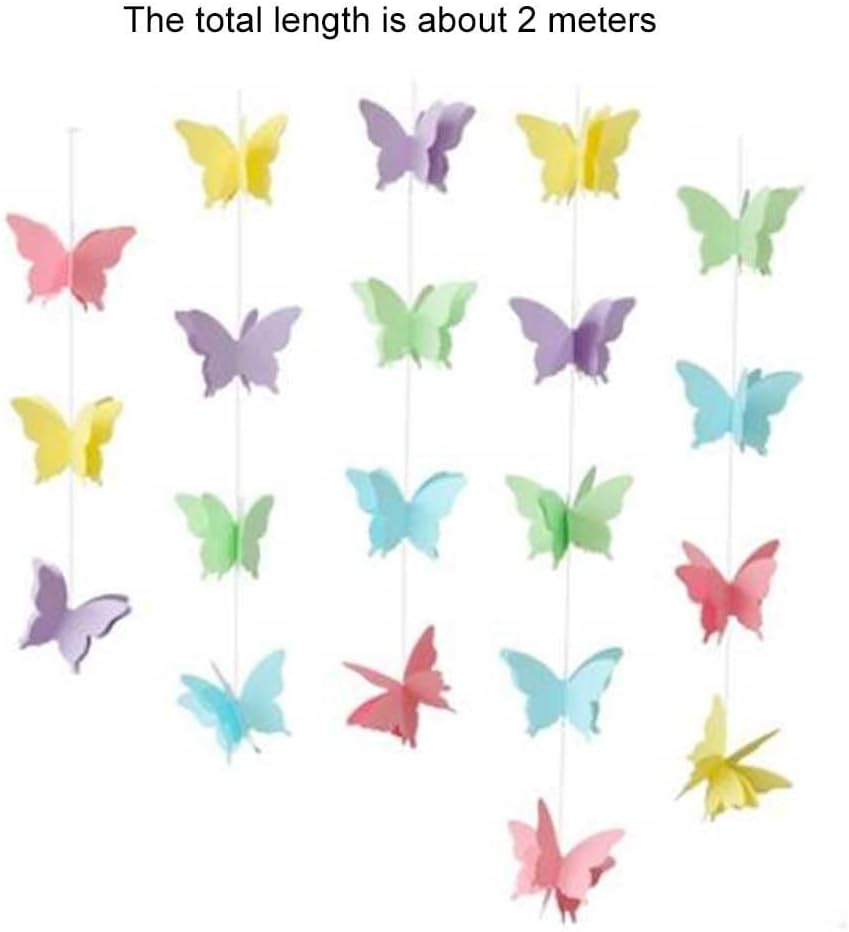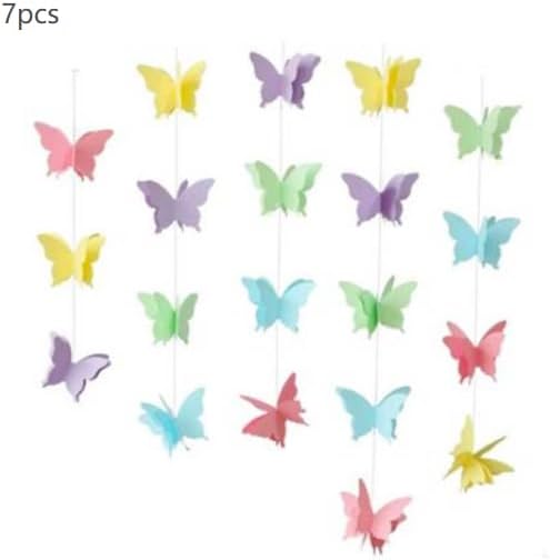 Design colorato: caratterizzato da un vivace spettro di colori arcobaleno, questo set di 7 decorazioni a farfalla porta allegra eleganza a qualsiasi celebrazione, trasformando gli spazi ordinari in incantevoli display per compleanni, matrimoni e riunioni festive. Ampia copertura di 2 metri: ogni filo si estende per 2 metri di lunghezza, fornendo un'ampia portata decorativa per drappeggiare su tavoli, appendere al soffitto o adornare pareti per creare incredibili impatti visivi in tutto il tuo locale. Dimensioni perfette della farfalla: le singole farfalle misurano 7,5 cm x 5 cm, colpendo l'equilibrio ottimale tra visibilità accattivante e sottigliezza di buon gusto che completa piuttosto che sopraffare il tuo schema di arredamento esistente. Struttura in carta leggera: realizzate in carta leggera di qualità, queste decorazioni offrono facile da appendere e posizionare in case, giardini, aule o cortili senza richiedere hardware di montaggio pesanti. Applicazioni versatili per eventi: trasforma qualsiasi spazio in un bizzarro paese delle meraviglie delle farfalle, perfetto per baby shower, feste a tema, decorazioni in classe e celebrazioni all'aperto con una facile installazione e un miglioramento atmosferico istantaneo.
