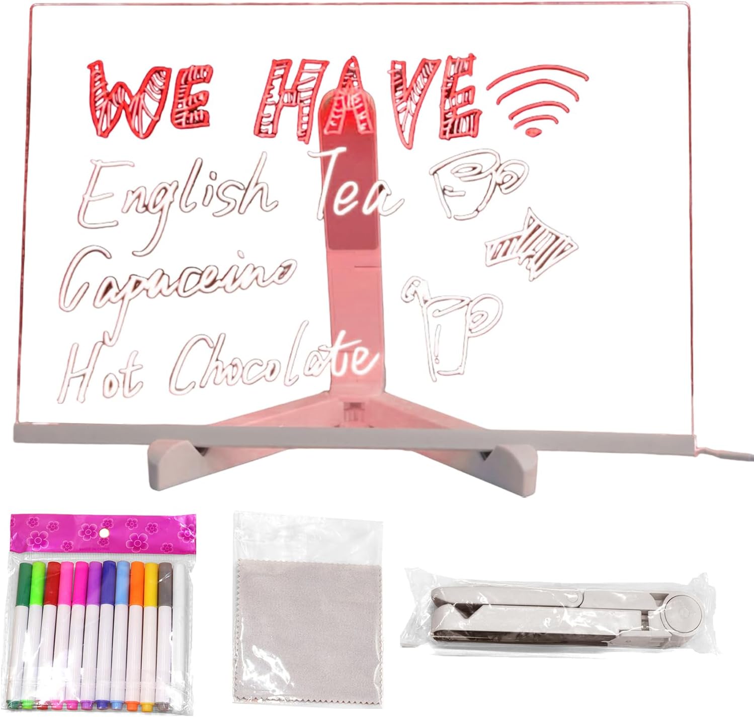 Pulizia semplice: include pennarelli ad asciugatura rapida e un panno per la pulizia per rimuovere facilmente le macchie e mantenere immagini ben curate, scrittura fluida con inchiostro fluido e risultati vivaci. Illuminazione creativa: i LED integrati migliorano gli scarabocchi con una luce accattivante, incoraggiando la scoperta artistica e consentendo alle persone di esplorare il proprio potenziale creativo attraverso effetti interattivi e stimolanti. Regalo eccezionale: ideale per esprimere tenerezza e cura durante gli eventi festivi, questo raffinato tavolo da disegno a LED amplifica e creatività grazie alla sua tecnologia di visualizzazione sensibile e ai molteplici colori di luce. Esperienza intuitiva: progettata con acrilico liscio e bordi arrotondati, questa lavagna luminosa garantisce un utilizzo sicuro consentendo ripetute esercitazioni di scrittura con penne cancellabili, sviluppando naturalmente la coordinazione occhio-mano. Opzioni di utilizzo dinamiche: combina la funzione educativa e la gestione dei promemoria domestici, offrendo una rapida conversione in una lavagna da studio inclinabile per varie applicazioni come compiti scolastici, pianificazione familiare o attività divertenti