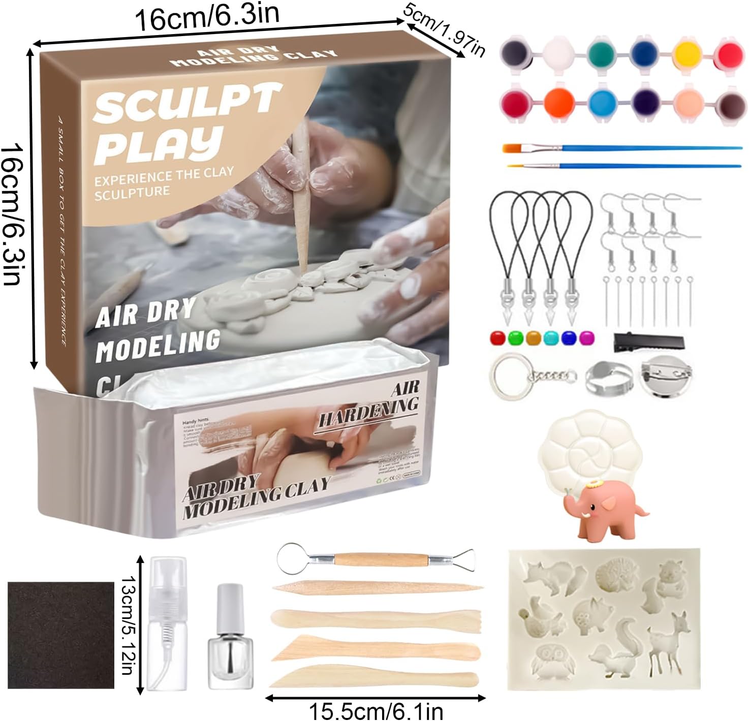Materiale di buona qualità: realizzata con materiali sicuri per i bambini, questa argilla offre una sensazione liscia e flessibile, resistendo alle crepe post-essiccazione, per preservare le creazioni artistiche nel tempo Set di creazione artistica a gamma completa: dotato di un set acrilico a 12 colori, pennelli a doppia estremità, vernice per finitura, un flacone spray e strumenti di modellatura multiuso, questo kit consente ai bambini di progettare e completare progetti promuovendo le loro abilità artistiche senza sforzo Divertenti progetti ad asciugatura all'aria: l'argilla per bambini presenta un aiuto per modellare la spugna e stampi adatti ai principianti, perfetta per progetti di artigianato veloci, non richiede cottura, migliora la creatività con strumenti facili da usare Molteplici occasioni: l'argilla secca all'aria supporta progetti di artigianato 3D e 2D, ideale per regali di vacanza, educazione artistica e attività genitore-figlio, migliorando le capacità motorie naturalmente attraverso il gioco creativo Tecniche di lavorazione versatili: sblocca il potenziale creativo tramite la miscelazione personalizzata dei colori combinata con pennelli appuntiti e piatti, supportando la stratificazione delle texture per ispirare design artigianali completamente personalizzati senza sforzo