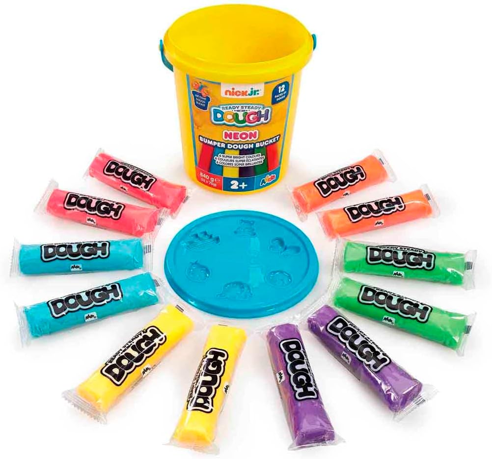 E' pronto. Stabile! Impasto ! È il momento di spremere, schiacciare e modellare con questo secchiello per pasta al neon della linea Ready Steady Pate di Nick Jr. I bambini adoreranno diventare creativi con questo set ermetico dai colori vivaci. Che si tratti di colorare insieme o di realizzare incredibili creazioni 3D, ci sono infinite possibilità di piacere sensoriale. Possono utilizzare gli stampi nel coperchio per iniziare o creare i propri disegni. Inoltre, puoi conservare quasi tutta la pasta nel contenitore ermetico, dotato di maniglia e coperchio per divertirti in movimento. Contenuto della confezione: 12 varietà di impasto (6 colori), 6 stampini nel coperchio della vasca. L'impasto è un giocattolo da non mangiare. Contiene glutine di frumento. Dai 3 anni.