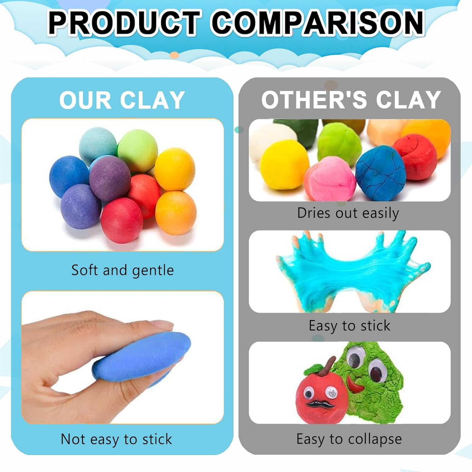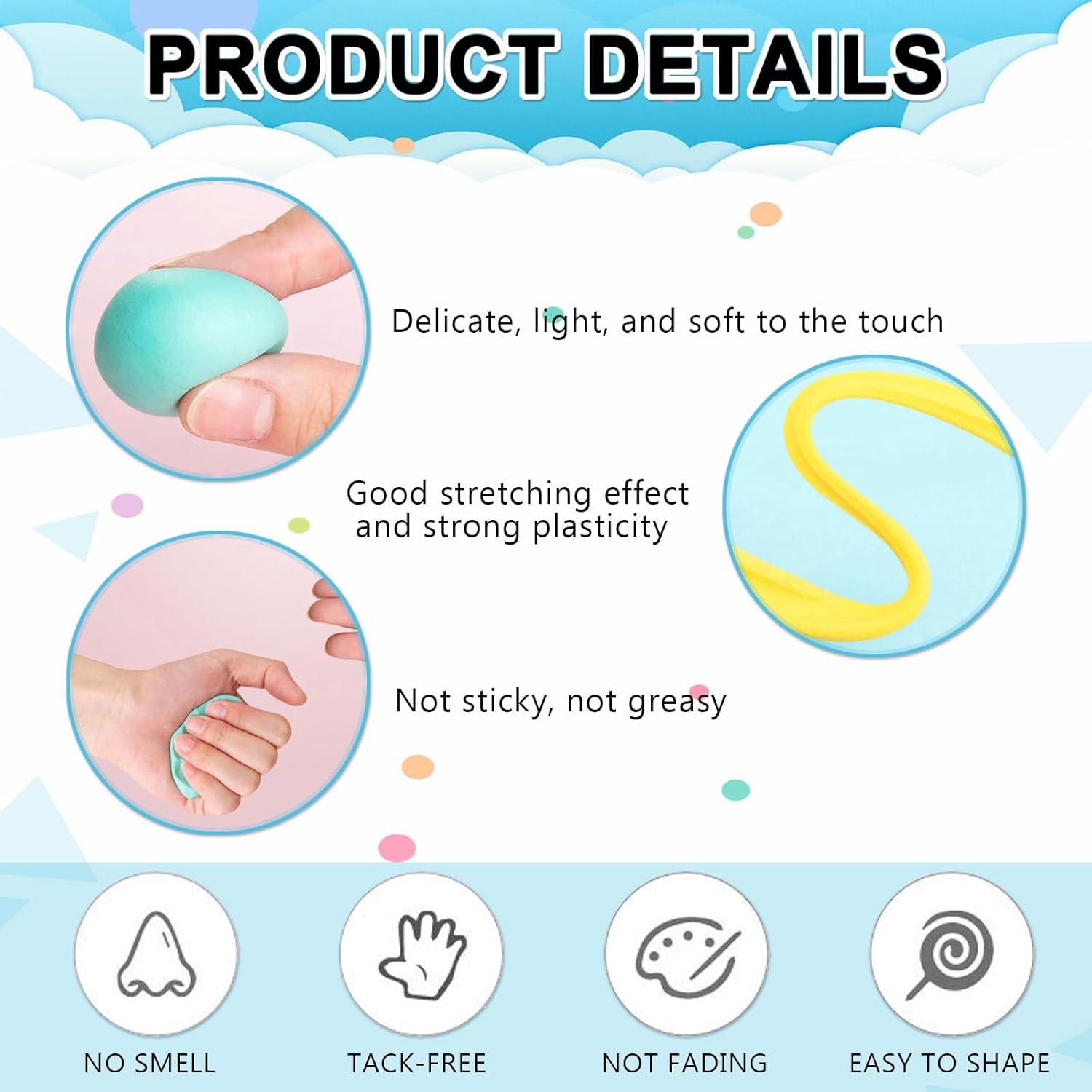 Questo set di argilla da modellare offre ben 100 colori diversi, ideali per realizzare ogni tipo di figura, animale o oggetto. Le tonalità possono essere combinate tra loro per creare nuove sfumature, stimolando l'immaginazione. Perfetto per attività creative a casa o a scuola, questo kit aiuta a sviluppare il senso estetico e la capacità di osservazione dei più piccoli attraverso il gioco artistico. Grazie alla consistenza morbida e modellabile dell’argilla, i bambini possono facilmente plasmare forme uniche, migliorando la coordinazione occhio-mano e le abilità motorie fini. L’attività manuale con l’argilla da modellare rappresenta un passatempo educativo che contribuisce allo sviluppo cognitivo e alla capacità di concentrazione, ideale per bambini tra i 3 e gli 8 anni. Realizzata con materiali atossici e sicuri per l’infanzia, l’argilla da modellare è adatta anche per un uso prolungato senza rischi. La formula è pensata appositamente per i più piccoli, con un'essiccazione naturale all’aria in 24 ore che evita l’uso di forni o strumenti caldi. Un modo sicuro e divertente per giocare, imparare e creare ogni giorno. Questo set è una fantastica idea regalo per compleanni, Natale o ricorrenze speciali. Adatto sia per bambini che per bambine dai 3 agli 8 anni, è una proposta educativa e divertente che unisce creatività e gioco manuale. L’argilla da modellare è il dono perfetto per sorprendere i piccoli artisti in erba e farli divertire in modo costruttivo. In caso di problemi con il prodotto, il nostro servizio clienti è sempre disponibile per offrire soluzioni rapide ed efficaci. Ci impegniamo a garantire la qualità e la soddisfazione dell’utente. Ogni problema sarà trattato con priorità assoluta, per assicurare un’esperienza d’acquisto serena e sicura per ogni famiglia.