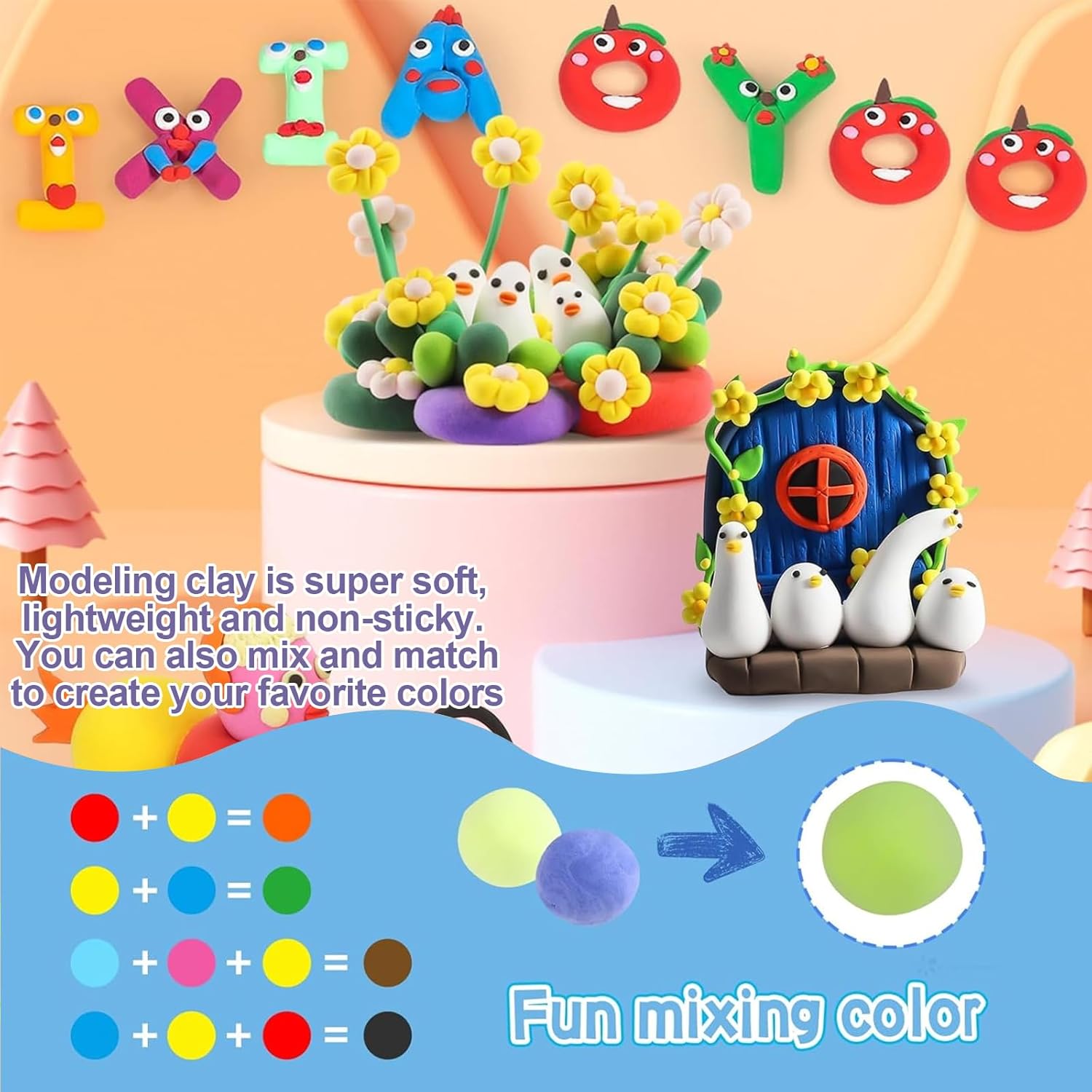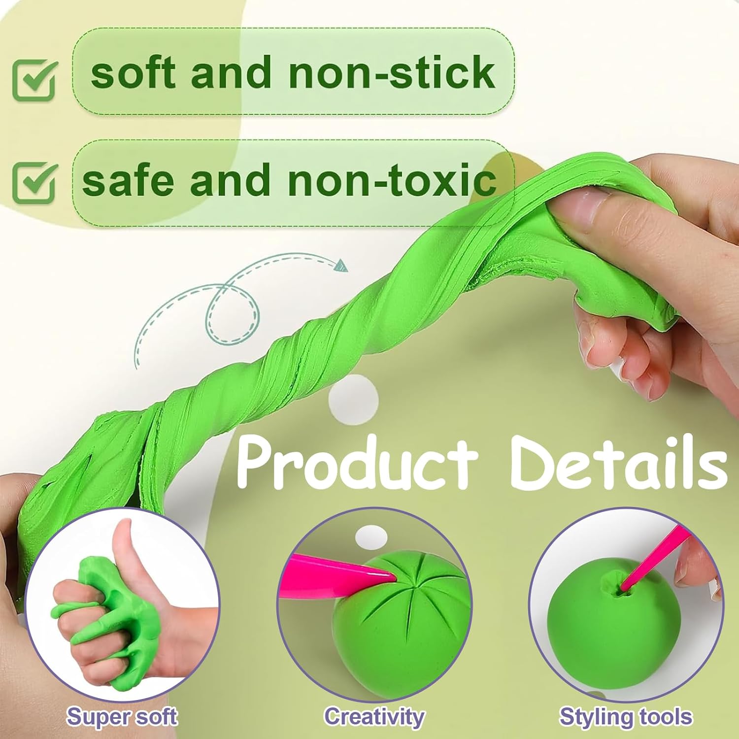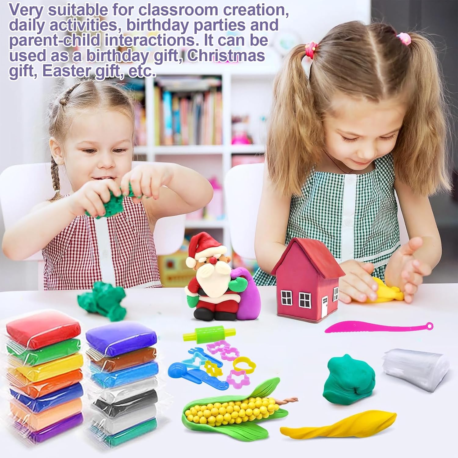 Set completo di argilla modellabile: Questo kit di argilla da modellare bambini include 100 blocchetti di argilla leggera in colori assortiti e 13 strumenti per modellare facilmente forme e creazioni fantasiose. La consistenza morbida e leggera dell’argilla la rende perfetta per mani piccole e consente di mescolare colori per ottenere tonalità personalizzate. Materiale sicuro e atossico: L’argilla da modellare è realizzata con ingredienti sicuri, privi di sostanze tossiche e odori sgradevoli, rispettando l’ambiente e la salute dei più piccoli. Il contatto con l’argilla risulta delicato e piacevole, senza lasciare residui appiccicosi sulle mani. Dopo l’utilizzo, è sufficiente riporre i pezzi nella busta trasparente con zip per evitare che si induriscano. Questo rende il prodotto perfetto per l’uso quotidiano e per i laboratori creativi nelle scuo Sviluppo delle capacità cognitive e motorie: Grazie alla sua versatilità, questa argilla modellabile permette ai bambini di migliorare la coordinazione occhio-mano e le capacità motorie fini mentre realizzano animali, frutti, fiori e tante altre forme colorate: L’attività manuale favorisce anche l’immaginazione e il pensiero logico, aiutando i più piccoli a esprimere la propria creatività lontano dagli schermi digitali: Un’esperienza educativa completa che accompagna la crescita e la scoper Facile da modellare e asciugare: L’argilla si può piegare, stendere, modellare e unire con grande facilità senza bisogno di forno o strumenti speciali per l’asciugatura. Una volta completate le creazioni, basterà lasciarle all’aria per ottenere modelli solidi e resistenti. La consistenza elastica e la gamma di colori vivaci incoraggiano i bambini a sperimentare nuove idee con semplicità e soddisfazione. Perfetta per tante occasioni e regali: Questo set di argilla modellabile bambini è adatto a principianti, adulti e piccoli artisti che vogliono realizzare accessori, miniature di cibo, decorazioni e oggetti creativi per la casa o per la scuola. Ottimo come regalo di compleanno, dono di Natale, sorpresa di Pasqua o premio speciale per incoraggiare l’apprendimento e il gioco condiviso. L’argilla multicolore garantisce ore di attività manuale piacevole e costruttiva.