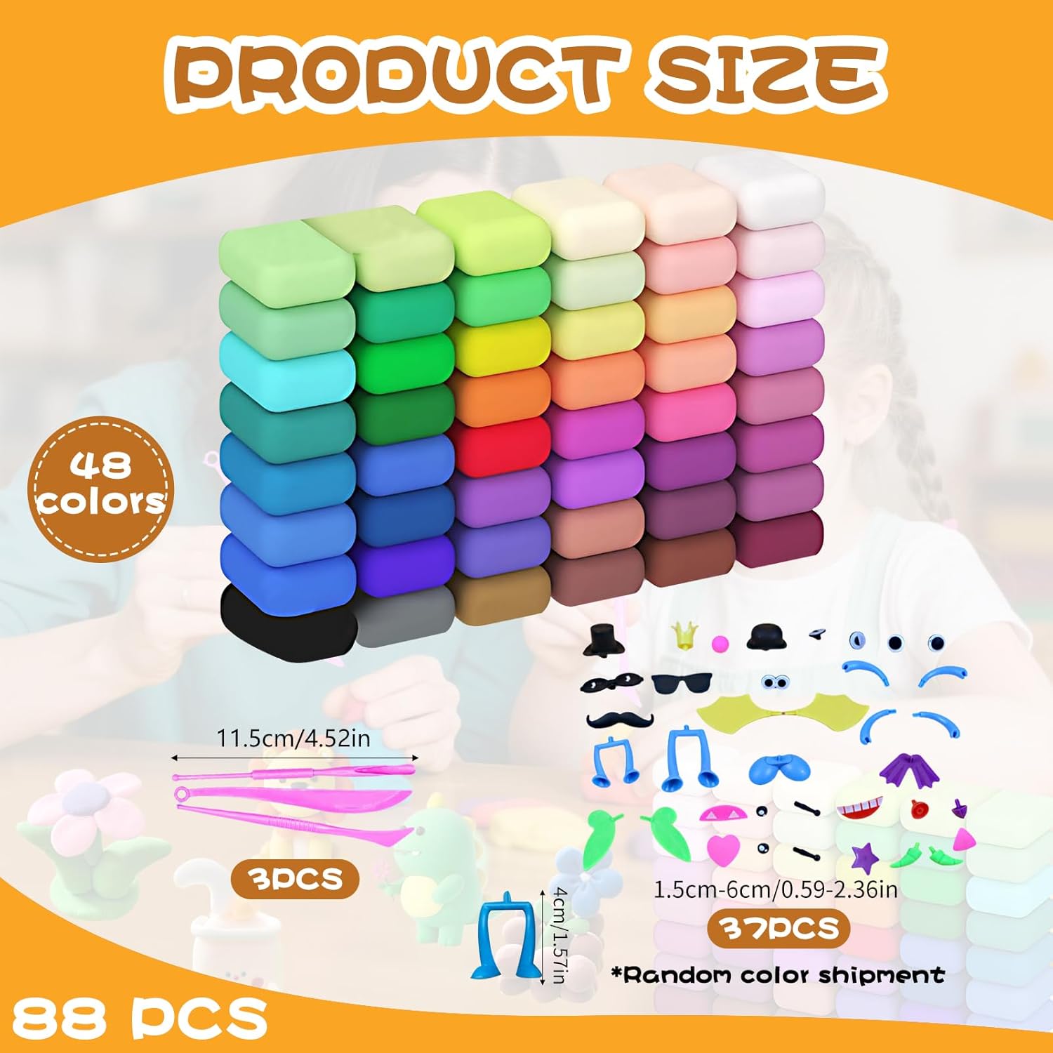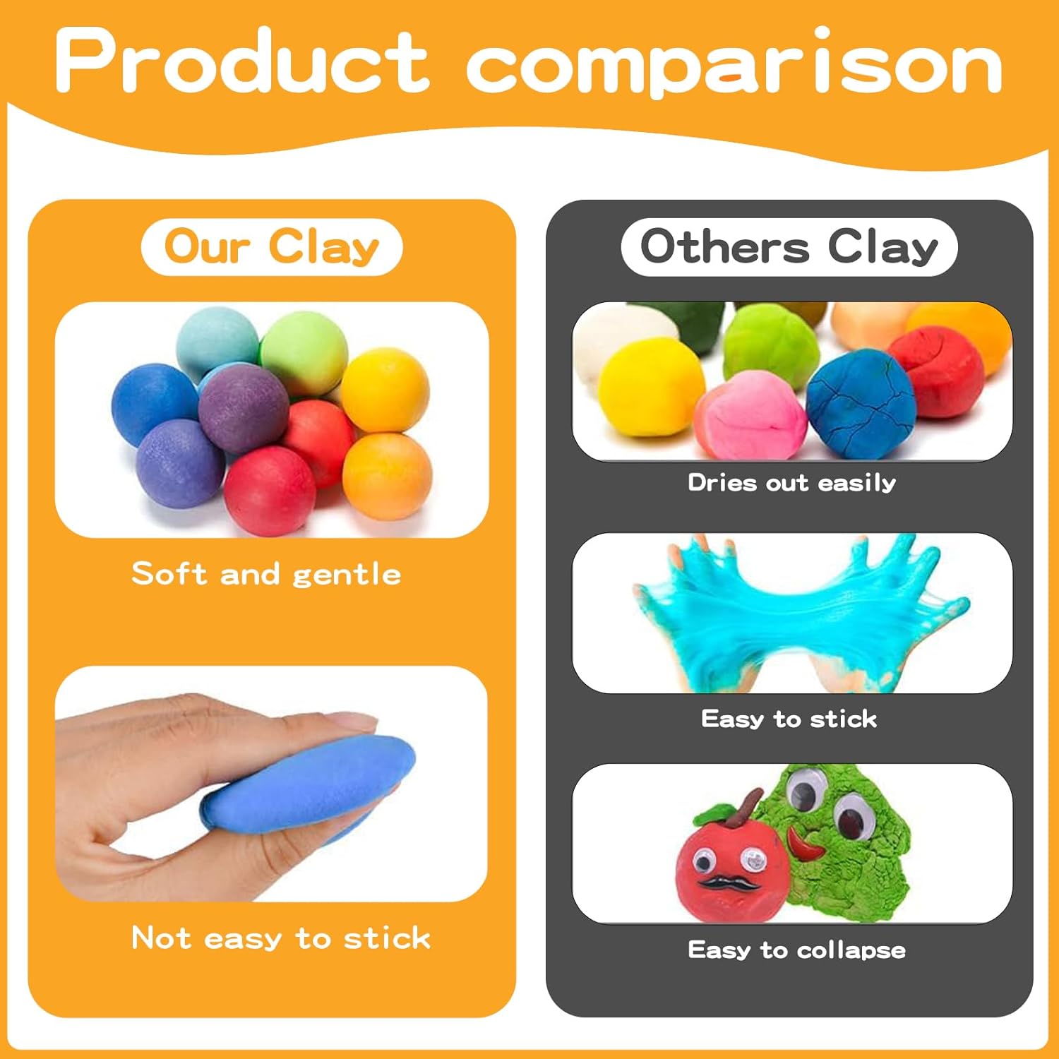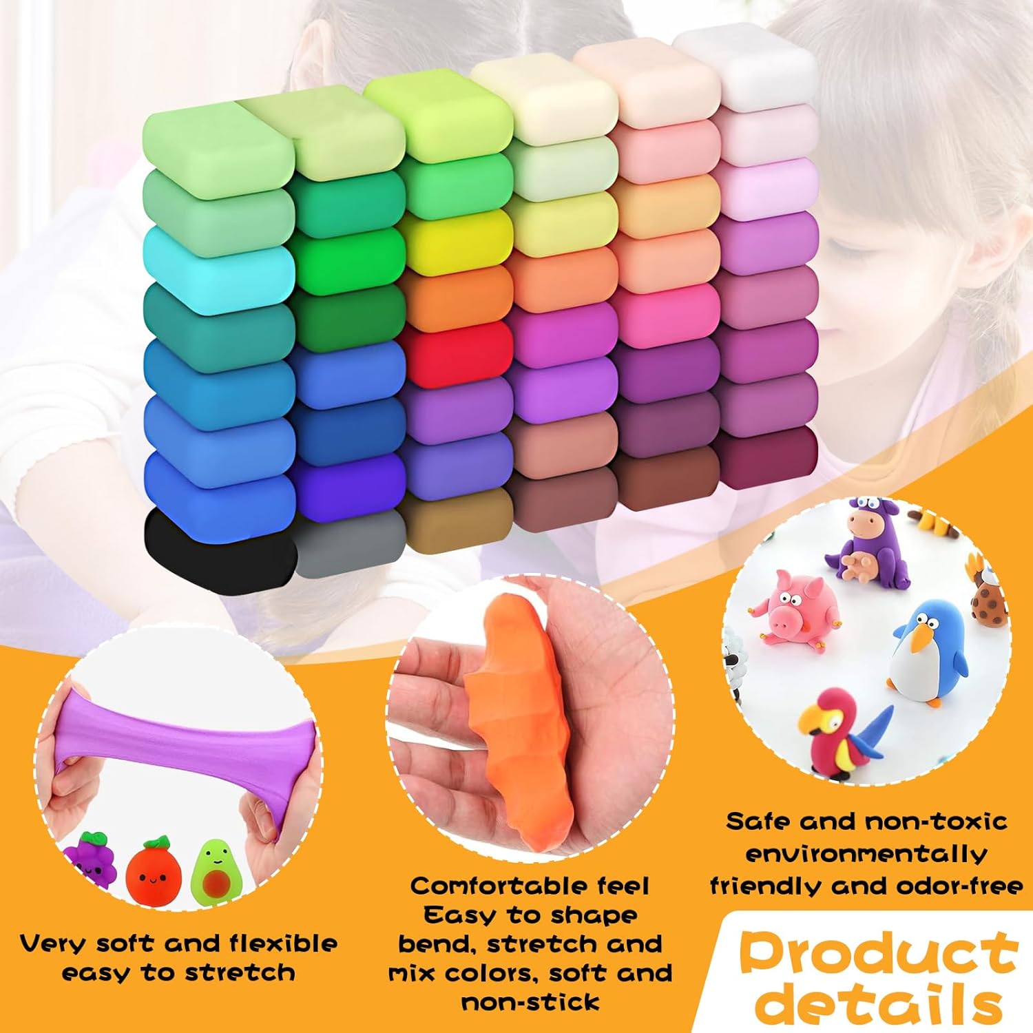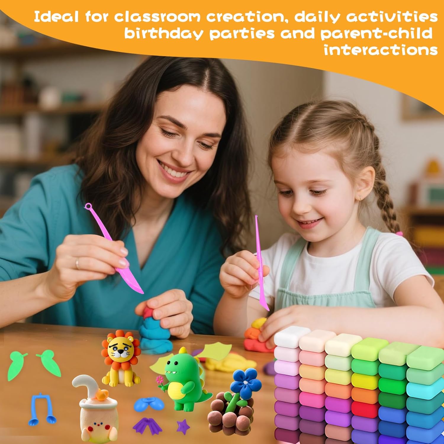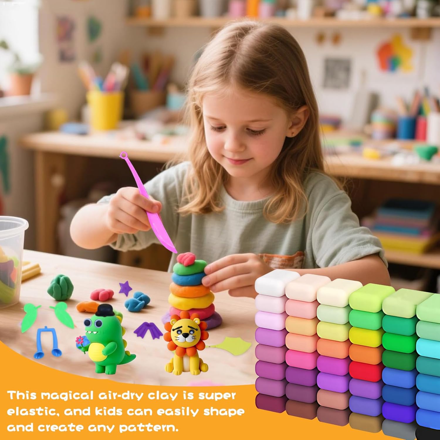 Set completo ed economico per ogni piccolo artista:Questo set da 48 pezzi di argilla da modellare bambini è perfetto per stimolare la creatività dei più piccoli.Include 48 colori vivaci, accessori magici e 3 strumenti per modellare,offrendo infinite combinazioni.L’argilla è morbida,leggera e non appiccica alle mani, ideale per lunghe ore di gioco educativo.La pasta modellabile può essere mescolata per ottenere nuove sfumature,offrendo un’esperienza artistica divertente e formativa per bambi Materiali sicuri e senza odori sgradevoli per giocare in tranquillità: La nostra pasta modellabile è realizzata con materiali sicuri, atossici e privi di odori, rendendola adatta anche ai bambini piccoli. Ogni porzione di argilla è conservata in una pratica bustina richiudibile, per evitare che si asciughi prematuramente. Dopo ogni utilizzo, basta riporre l’argilla nella busta per mantenerne la morbidezza e garantire un utilizzo duraturo. Gioco educativo per stimolare la crescita e lo sviluppo: L’argilla da modellare bambini non è solo un passatempo, ma un valido strumento educativo. Aiuta a sviluppare la motricità fine, la coordinazione mano-occhio, la logica e la creatività. Con ogni forma creata, i bambini imparano a esprimersi e a immaginare mondi nuovi. È il gioco perfetto per tenerli lontani dagli schermi e impegnati in attività manuali intelligenti, favorendo al contempo il loro sviluppo cognitivo e sensoriale. Facile da modellare e pronta all’uso senza bisogno di cottura: L’argilla magica è progettata per essere facilmente modellabile, flessibile, estensibile e colorabile. Si asciuga semplicemente all’aria, senza la necessità di forni o attrezzature speciali. È incredibilmente elastica e i bambini possono creare qualsiasi figura desiderino con estrema facilità. Non lascia macchie e non si spezza, permettendo ai più piccoli di esprimersi in totale libertà. Perfetta per ogni occasione e adatta a tutte le età: Ideale per bambini, adulti e principianti, questo set di argilla modellabile si presta a mille usi: dalla creazione di gioielli, cibo in miniatura, fiori, animali e decorazioni. Perfetta per attività scolastiche, compleanni, laboratori artistici e momenti di condivisione tra genitori e figli. Un regalo originale per Natale, Pasqua, compleanni o semplicemente per stimolare la fantasia dei più piccoli in qualsiasi momento.