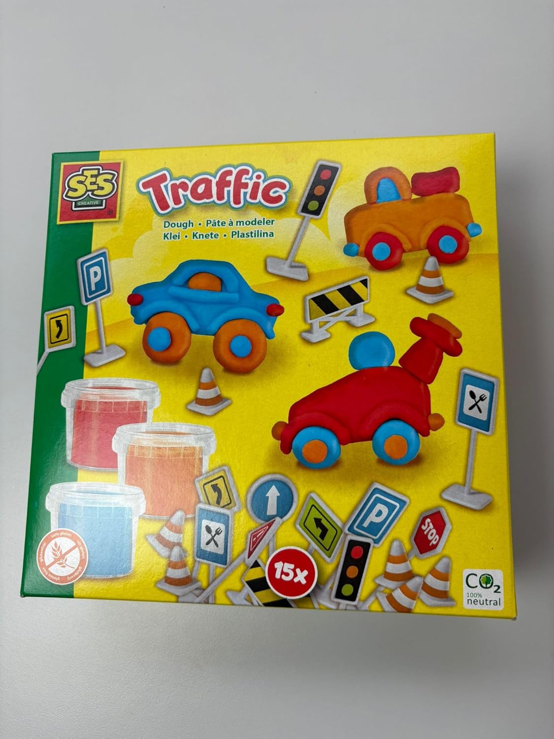 Bellissimi colori brillanti Non seccano durante il gioco Stimola la creatività Si può usare in tutta sicurezza, la pasta da modellare è estremamente salata per dissuadere i bambini dal mangiarla. Senza glutine KIT PASTA DA GIOCO PER BAMBINI 3 ANNI TRAFFICO: Questo set contiene 3 vasetti di pasta da modellare colorata, 15 segnali di pericolo e adesivi. Perfetto per inventare il proprio percorso e costruire un'ambientazione stradale realistica a partire dai 3 anni. ATTIVITÀ EDUCATIVA PER BAMBINI: Stimola la creatività, la concentrazione e la motricità fine nei bambini dai 3 anni in su. Questo gioco di plastilina ti permette di imparare le regole del traffico costruendo automobili e segnali stradali.
