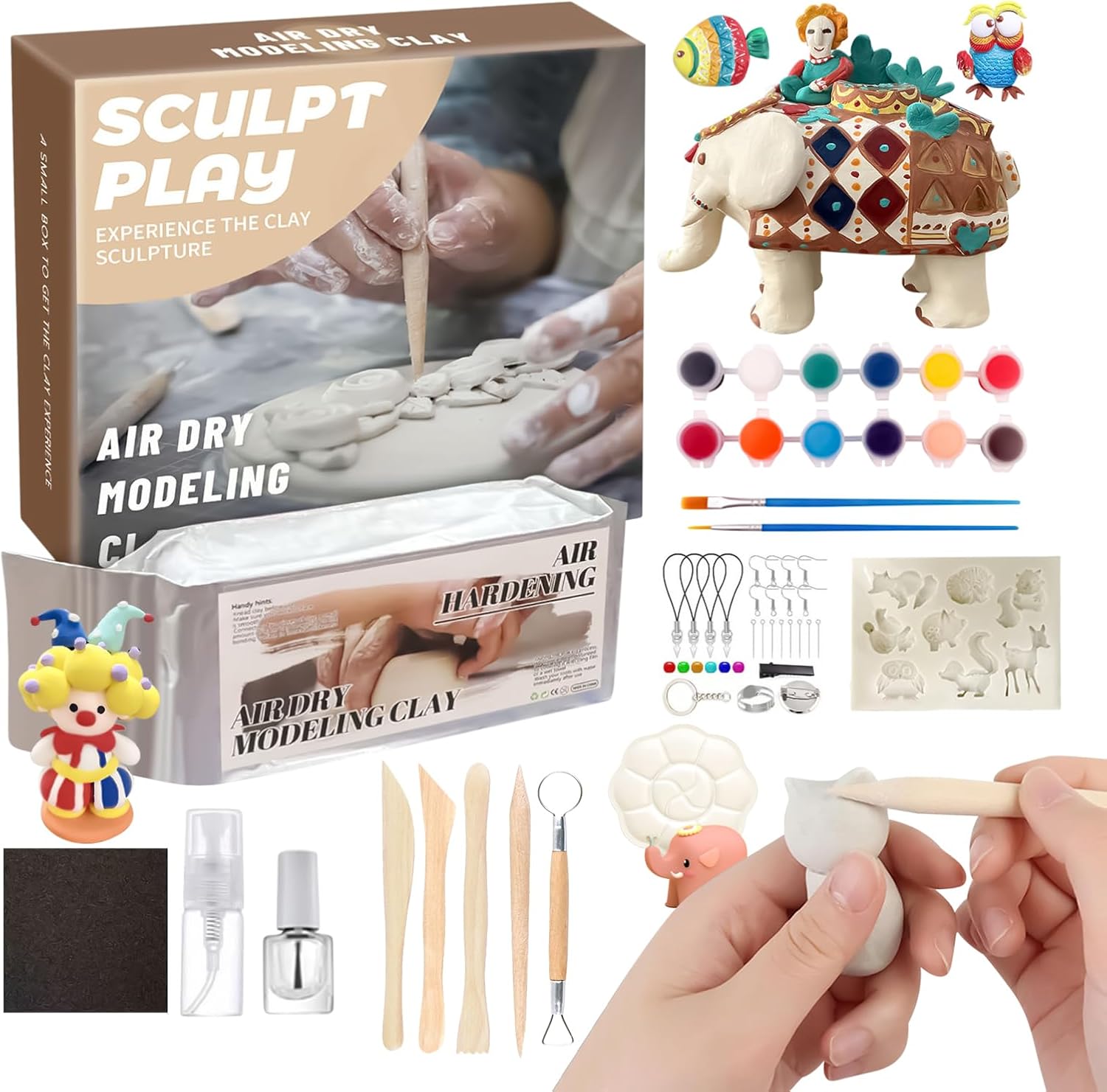 Gioia dei tuoi cari: lascia che tuo figlio impari giocando con questo set di argilla asciugata all'aria per principianti e condividi la gioia durante la festa dei bambini, le vacanze o i compleanni Rilasciato divertimento creativo: pieno di colori vivaci e strumenti manuali indispensabili Il set per modellare l'argilla asciugata all'aria ispira più creatività per scolpire forme diverse Argilla delicata: con la sua affidabile composizione di argilla, questa argilla asciuga all'aria per bambini ha una consistenza morbida e delicata che rende la miscelazione tra diversi colori un gioco da ragazzi mantenendo la vivacità Mantiene lo sviluppo del talento: ispira i bambini in erba con questo gioco educativo modello di modellazione per bambini, stimola la creatività e sviluppa efficacemente la coordinazione occhio-mano Aumenta l'interazione: questo kit di argilla modellabile promuove l'interazione genitore-figlio, entusiasmanti capacità di comunicazione per giocare con amici o familiari
