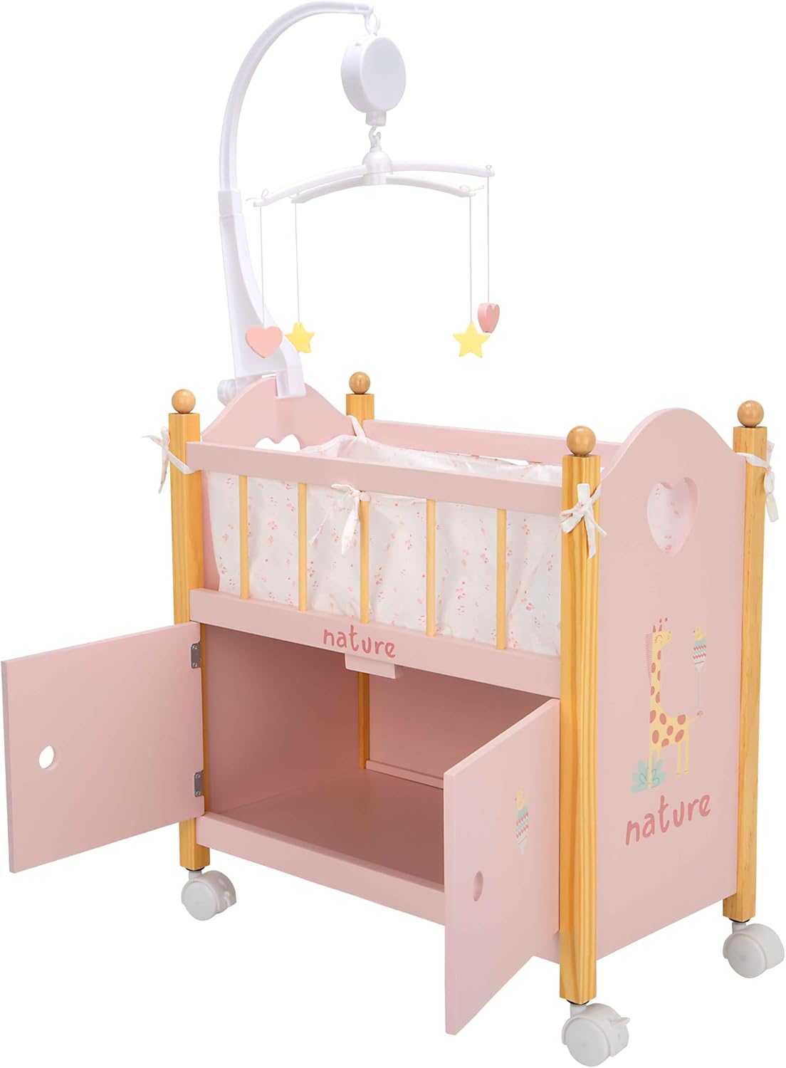 I bambini passeranno ore a giocare con questo elegante lettino/armadio in legno. Ameranno vedere come il vostro bambino dorme e riporre tutti gli accessori nel suo ampio guardaroba. È stato realizzato con materiali e tessuti di alta qualità che garantiscono la lunga durata del prodotto. Include un carosello, un cuscino e un copriletto abbinati.