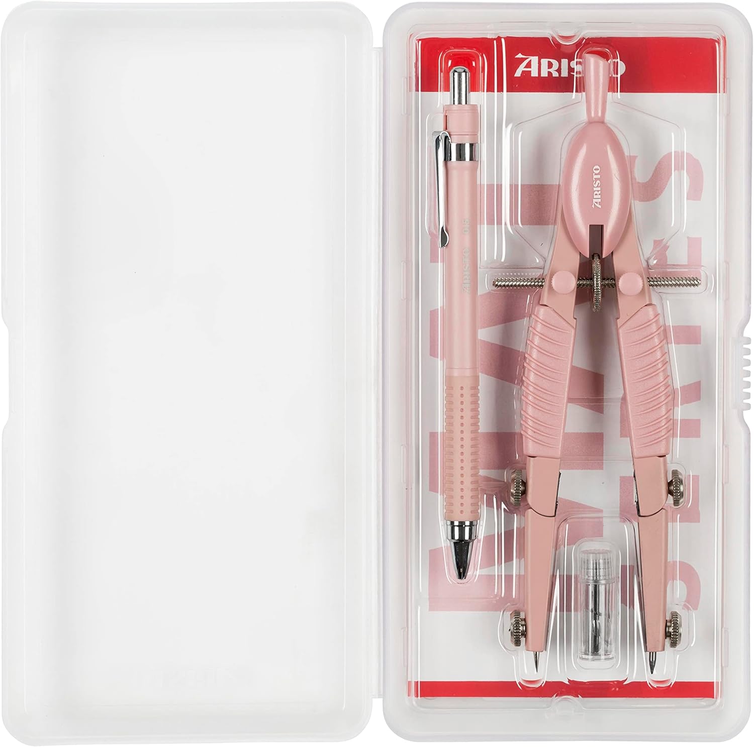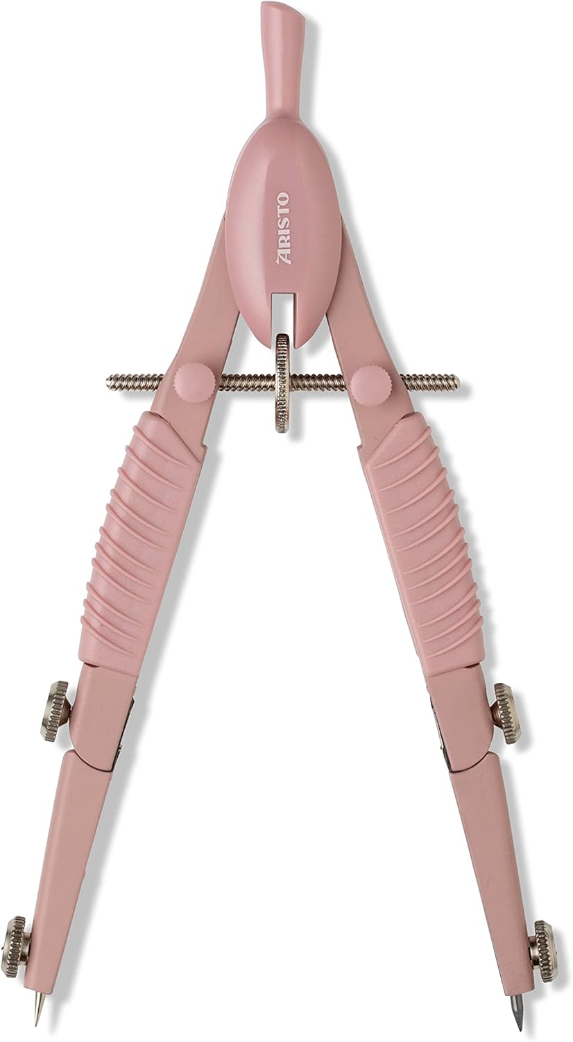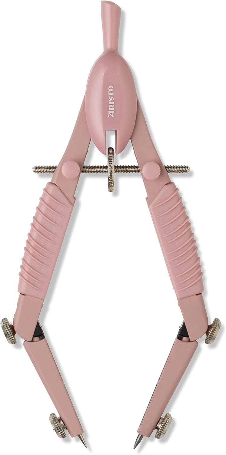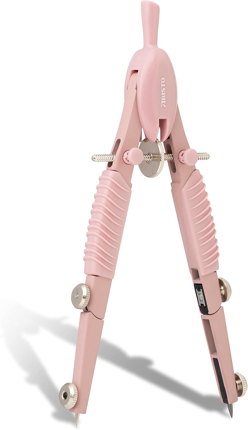 Il compasso Aristo Topline a regolazione rapida con matita soddisfa elevati standard di funzionalità e qualità e porta colore alla matematica e alla geometria a scuola e università Il mandrino ad azionamento rapido e la ruota centrale per la regolazione fine garantiscono la maneggevolezza ideale. Tramite due viti a testa tonda abbinata, la presa del mandrino viene regolata Entrambe le gambe hanno un giunto e possono contenere inserti fino a 4,0 mm di diametro, ad esempio un'asta di prolunga o un adattatore per disegnare con pennarelli a pigmenti o penne stilografiche Con il compasso è possibile disegnare cerchi fino a 370 mm di diametro. Le articolazioni brevettate impediscono che la gamba si pieghi lateralmente durante il disegno Contenuto della confezione: compasso Aristo Topline Mat Series con penna Studio Art. n. AR55802 - Applique in zinco pressofuso laccato, testa e maniglia, in plastica, 2 pezzi Mine di ricambio, astuccio trasparente