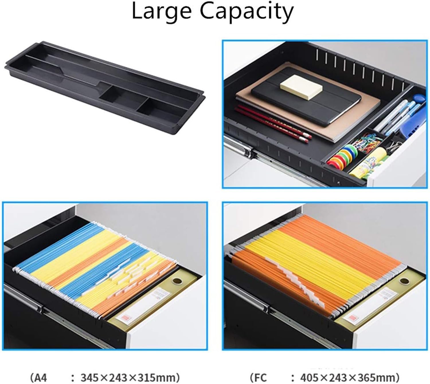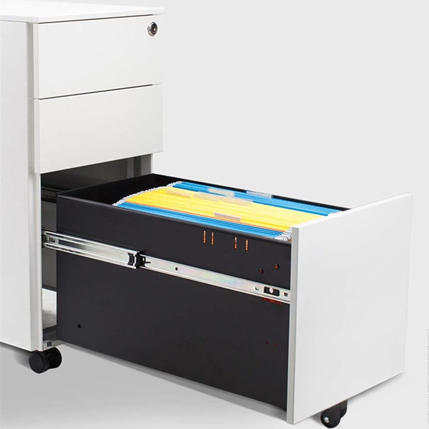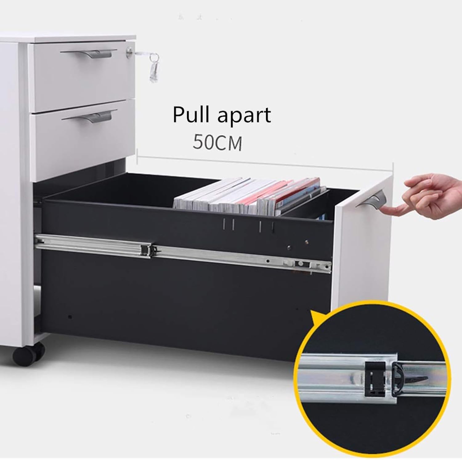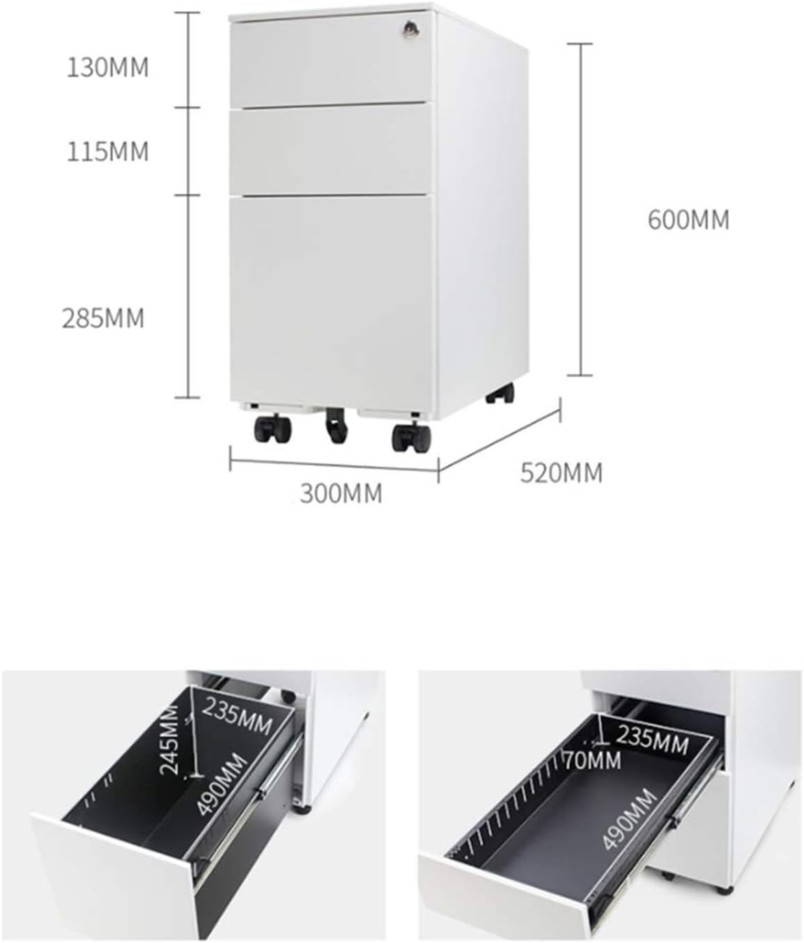 Tre cassetti: Fornisce un'organizzazione efficiente con tre cassetti spaziosi, ideali per archiviare file, documenti e forniture per ufficio Design con serratura: Presenta una serratura per cassetti per proteggere i documenti riservati e garantire la riservatezza Struttura in acciaio: Costruito in robusto acciaio, garantisce una lunga durata e un aspetto elegante e professionale Funzionalità mobile: Dotato di rotelle per un facile spostamento, consente un posizionamento flessibile all'interno dell'ufficio Dimensioni compatte: Misura 30 x 52 x 60 cm (L x Larghezza x altezza), si adatta bene a vari spazi dell'ufficio fornendo allo stesso tempo ampio spazio di archiviazione