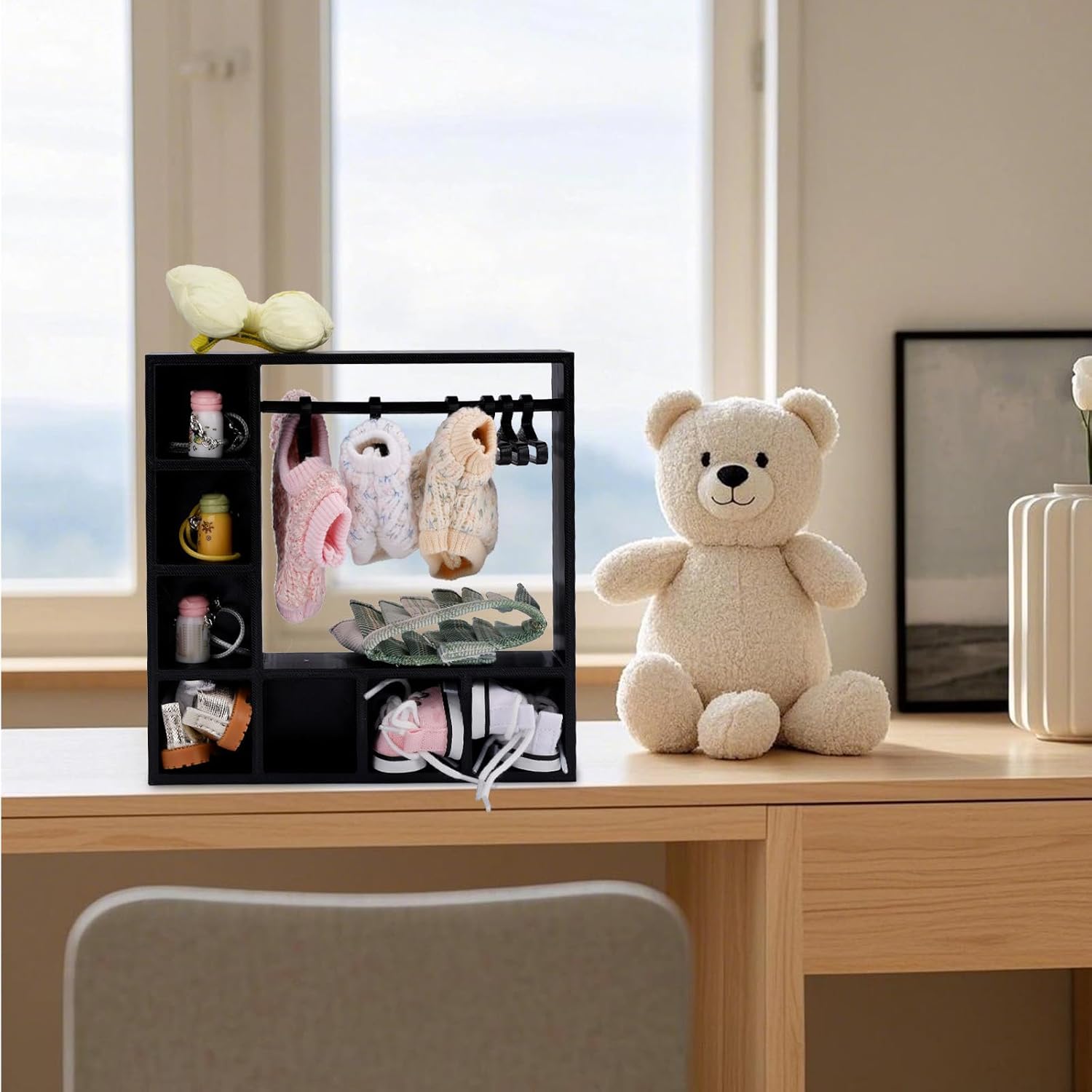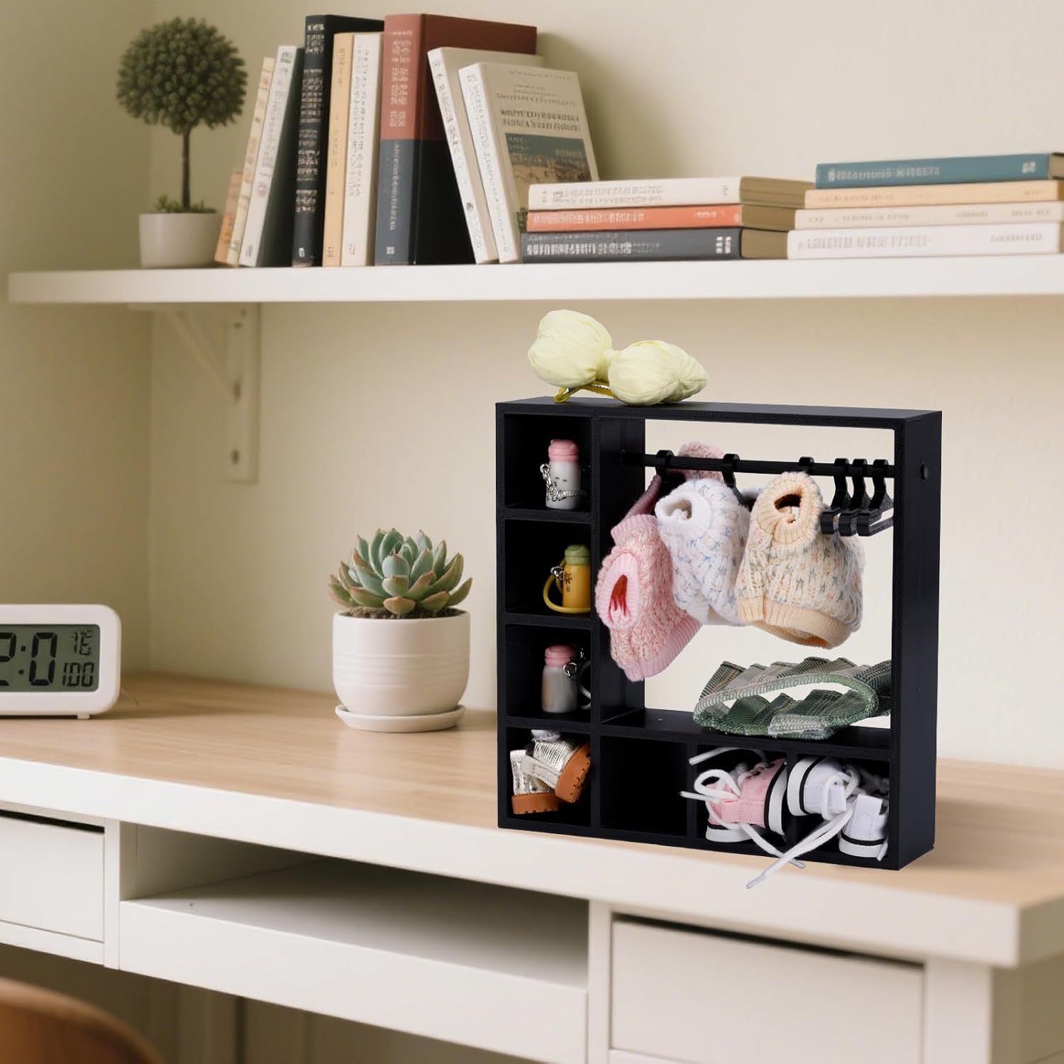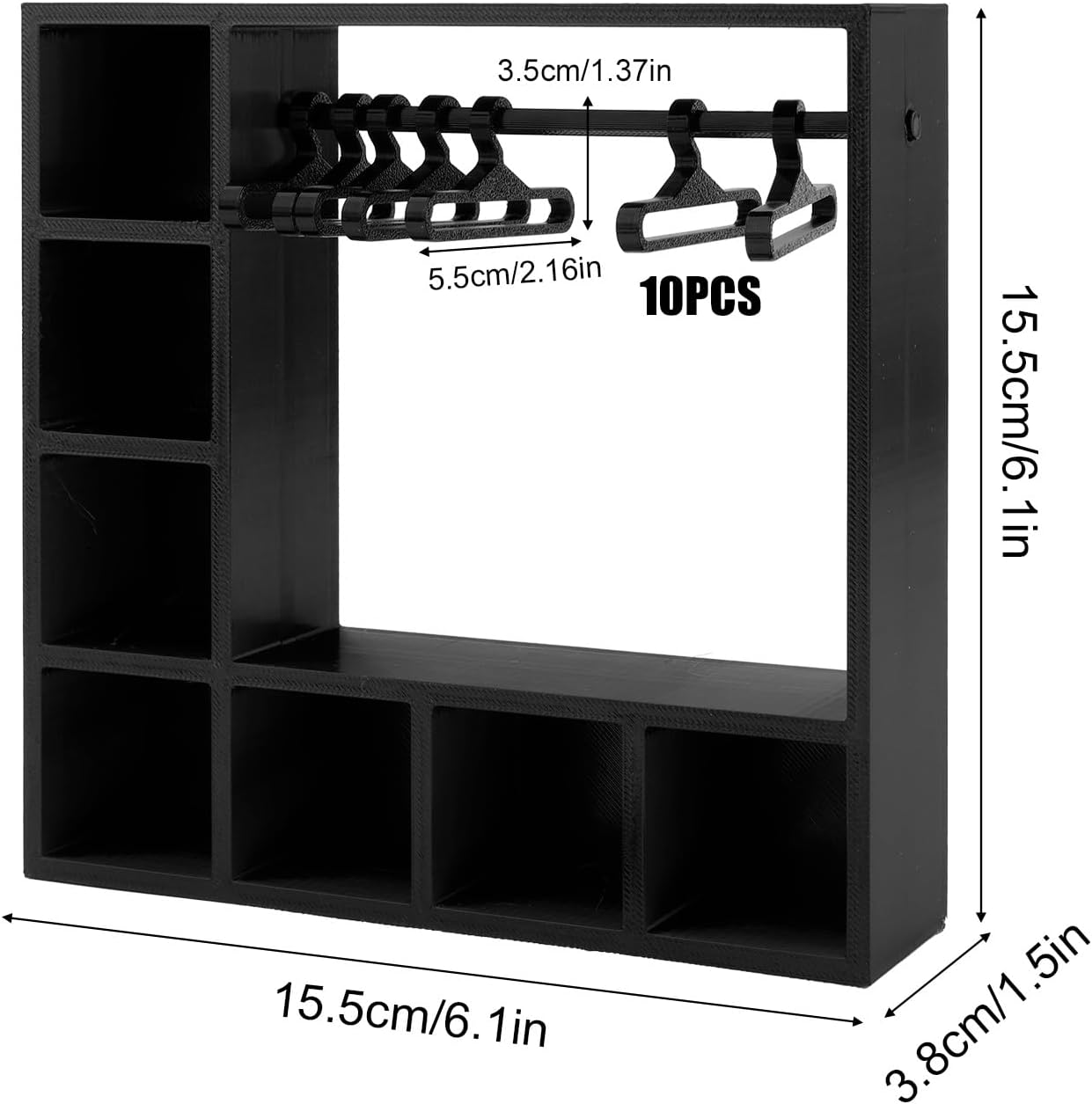 Il prodotto include: riceverai 1 pezzo di questo armadio delle bambole e 10 ganci, può essere facilmente utilizzato senza assemblaggio, puoi organizzare abiti per bambole per renderli ordinati e belli. (Nota: bambole non incluse) Dettagli dimensioni: il guardaroba delle bambole misura circa 15,5x15,5x3,8 cm e i ganci misurano circa 5,5x3,5 cm, adatti per bambole da 15 cm/17 cm. Materiale affidabile: l'armadio delle bambole e i ganci sono realizzati in materiale PLA di plastica, di buona qualità, stabile, affidabile, robusta e resistente. Non facile da rompere o sbiadire, adatto per un uso a lungo termine. Design intelligente: questo guardaroba delle bambole è affidabile e pratico, può massimizzare lo spazio di archiviazione in piccoli spazi. Si erge verticalmente per economizzare lo spazio assicurando al contempo che tutti i vestiti delle bambole siano chiaramente visibili e facilmente accessibili. Multi funzionale: l'armadio delle bambole può non solo conservare abiti per bambole, ma anche conservare scarpe da bambola, borse, accessori, parrucche e altro ancora. Molto adatto per collezionisti di bambole, appassionati di fotografia, ecc.