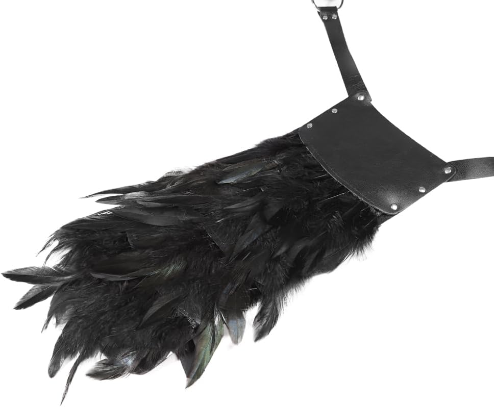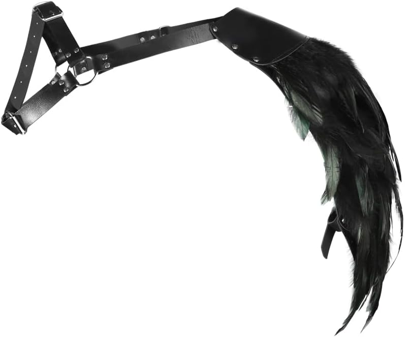 Descrizione prodotto Specifiche tecniche: Genere: unisex. Stile: armatura a spalla singola/armatura a doppia spalla. Materiale: piuma e pelle PU. Colore: nero. Taglia: regolabile, taglia unica adatta alla maggior parte delle persone. Contenuto della confezione: 1 armatura a spalla singola o 1 armatura a doppia spalla. Avviso di sicurezza Tenere lontano dal fuoco