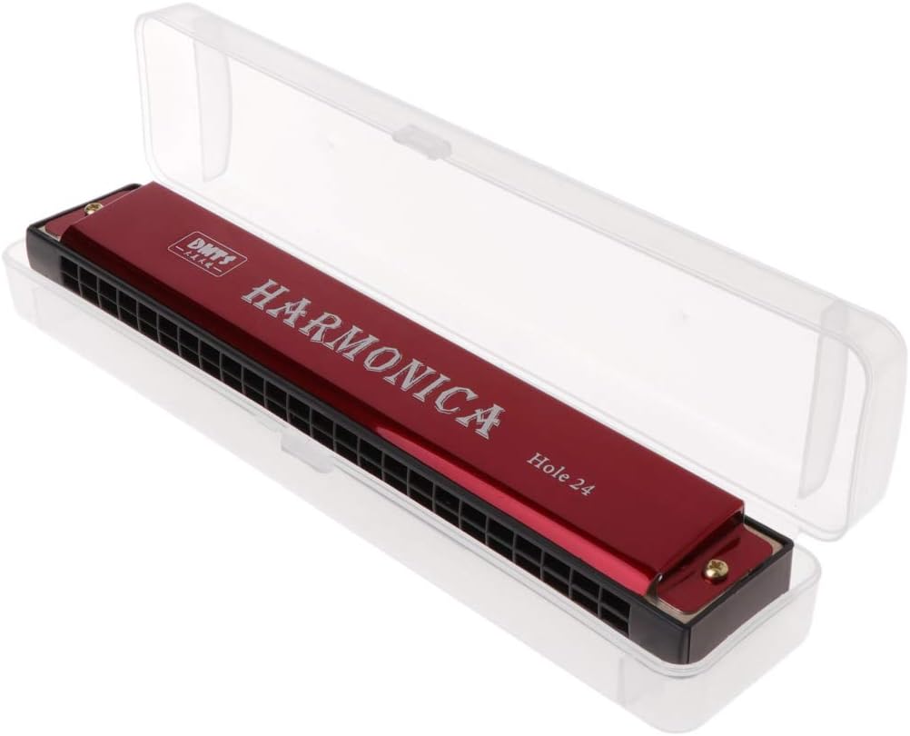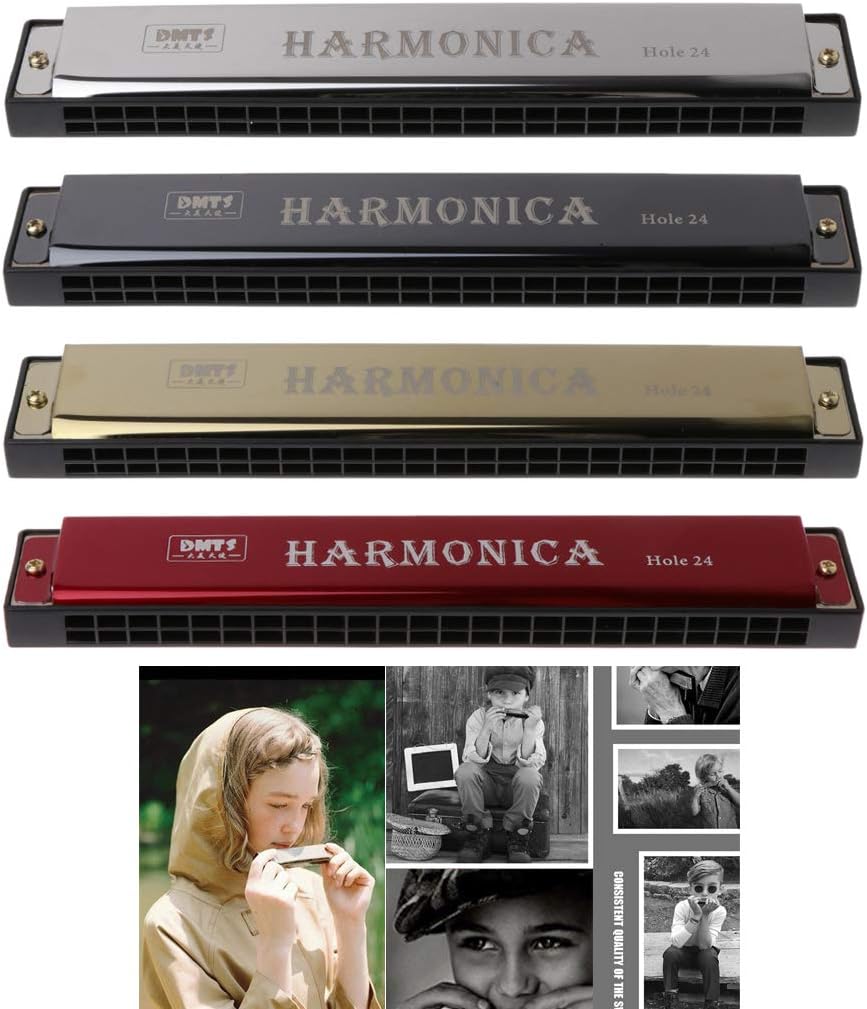 Colore: argento, oro, rosso, nero Circa 17,5 cm di lunghezza, 2,5 cm di larghezza e 2 cm di spessore, il che lo rende facile da trasportare Bello e tamburo, corpo in metallo e metallo protetto da una comoda scatola Portatile, puoi riprodurre musica in qualsiasi momento 24 fori, per qualsiasi principiante o amante dell'armonica