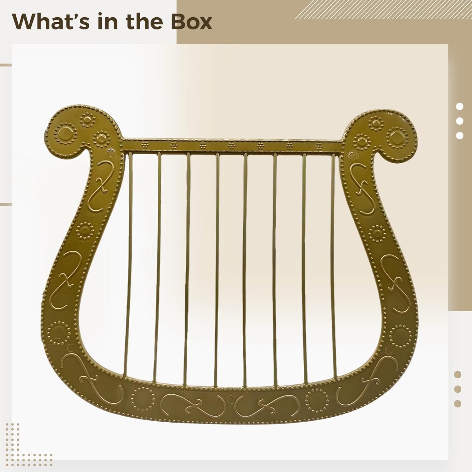 Graziosa forma di arpa: questa arpa è alta 20,8 cm e larga 26,9 cm; un'aggiunta sorprendente ai costumi da angelo per un aspetto grazioso; per gli appassionati di cosplay Design dorato radioso: la ricca finitura dorata esalta l'eleganza generale del tuo costume; per aggiungere un tocco regale al tuo look angelico Leggero e facile da trasportare: realizzato in plastica; offre un'esperienza senza problemi mentre ti sposti da un evento all'altro; facile da trasportare Ideale per momenti fotogenici: crea uno splendido sfondo per le foto; intricati dettagli dorati creano immagini indimenticabili per feste cosplay o social media Versatile per molteplici eventi: per feste a tema, cosplay o eventi in chiesa; aggiunge un'aura angelica a qualsiasi costume o riunione