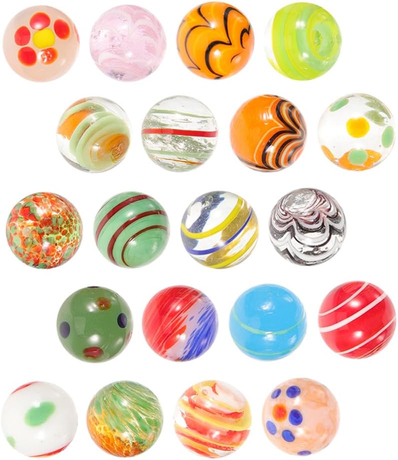 CONTENUTO: 40 pezzi di design meraviglioso e biglie di vetro colorate assortite con le stesse dimensioni e colore si trovano in una busta di rete all'interno di un pacchetto di cartone bianco. QUALITÀ: Le nostre tutte le biglie sono nuove di alta qualità con un design arrotondato e con una trama colorata senza crepe. Dopo aver fatto le biglie, è stato lucidato con molta attenzione. USANDO SCOPO: Queste biglie per occhiali da vista planetarie di Cat sono un classico regalo retrò per i bambini della scuola come aiuti educativi che aiutano i bambini a crescere con una mente creativa e intellettuale. Questi possono anche essere usati per i tradizionali giochi di marmo interni ed esterni e altri scopi come decorazione della casa, giardinaggio, design della piscina, ecc. TAGLIA E COLORE: Ogni marmo ha uno specifico disegno artigianale di colore rosso, blu, giallo e verde con dimensioni 15-16 mm con un peso totale per una borsa di 200gm (approssimativamente). UTENTI: I nostri bellissimi biglie sono utilizzabili dai 3 anni in su per adulti.