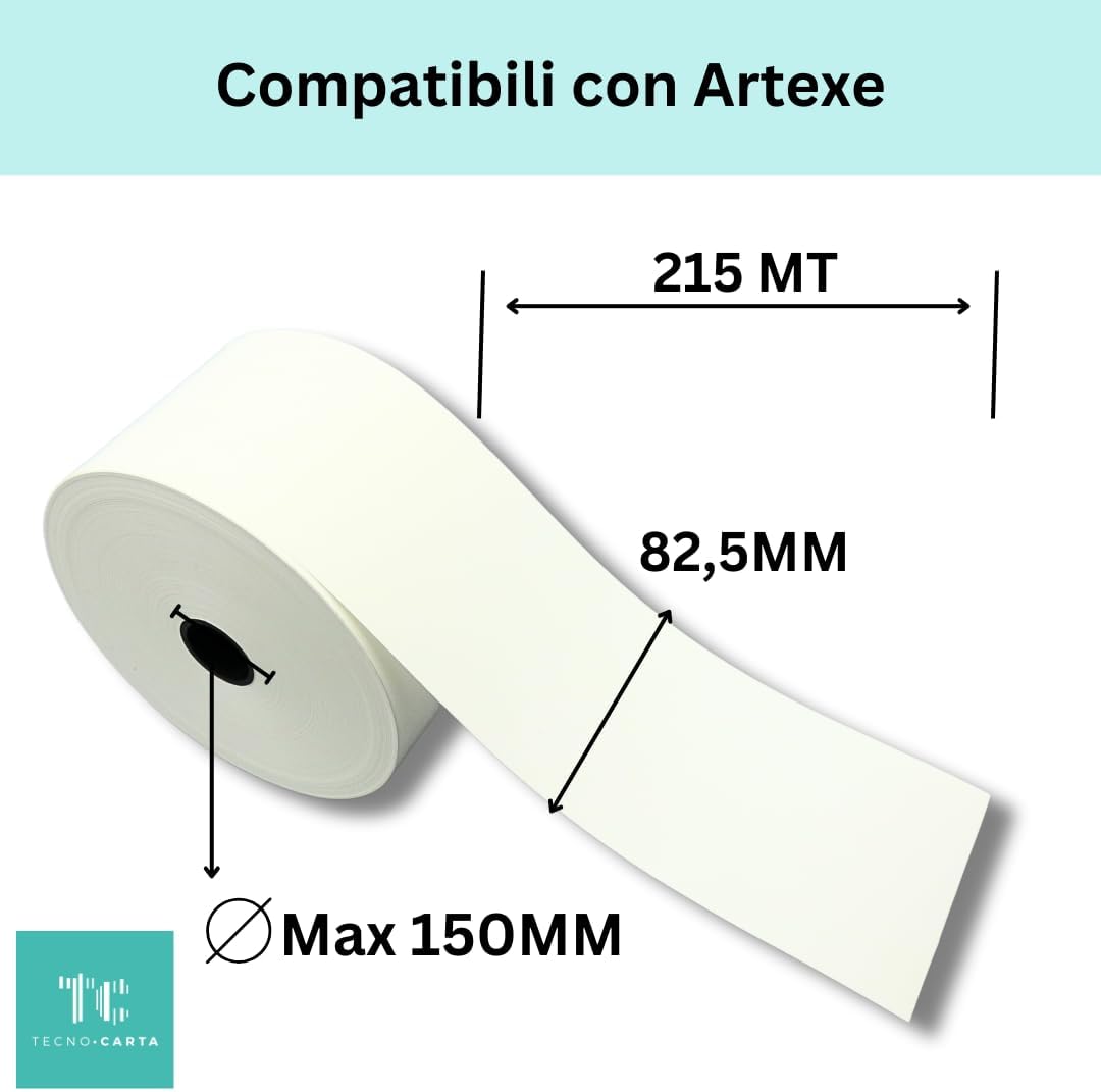 Compatibile con totem distributore ARTEXE Lunghezza totale del rotolo - 215mt GARANTITA Confezione da 2 rotoli Carta termosensibile di lunga durata