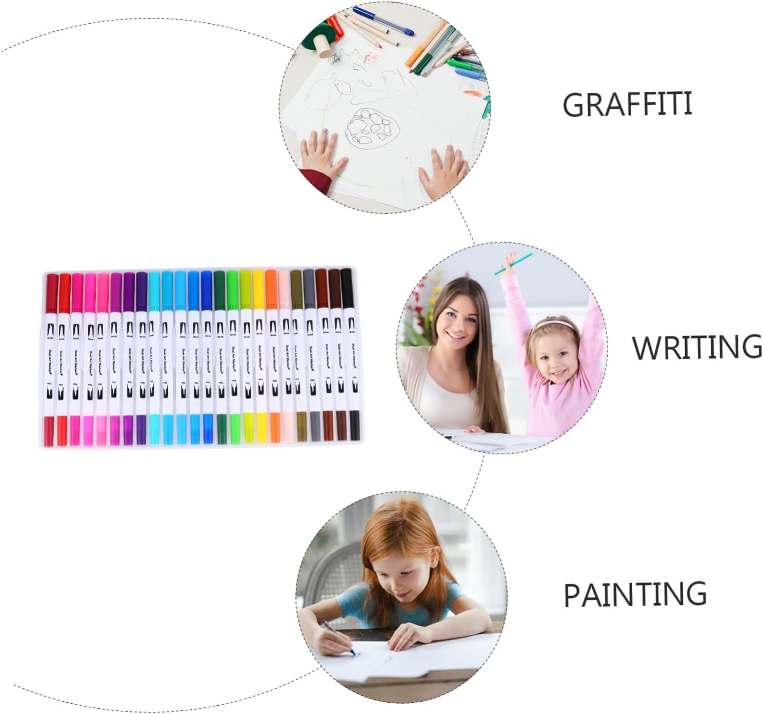 Pennarelli evidenziatori: le doppie teste possono essere scritte e scambiate a piacimento, pennelli Pennarelli a punta: ideali per lettering, schizzi, diari, pittura, disegno, libri da colorare, pennarelli da colorare Penne per lettering: dotate di custodia, facili da riporre e mantengono le penne ben organizzate, penne acquerellabili Pennarelli per pittura: un'ottima scelta per , adulti, insegnanti, studenti, principianti, ecc., pennelli a doppia punta Penne per journaling: perfette per artisti e studenti, perché consentono di realizzare facilmente linee spesse o sottili, penne per e adulti