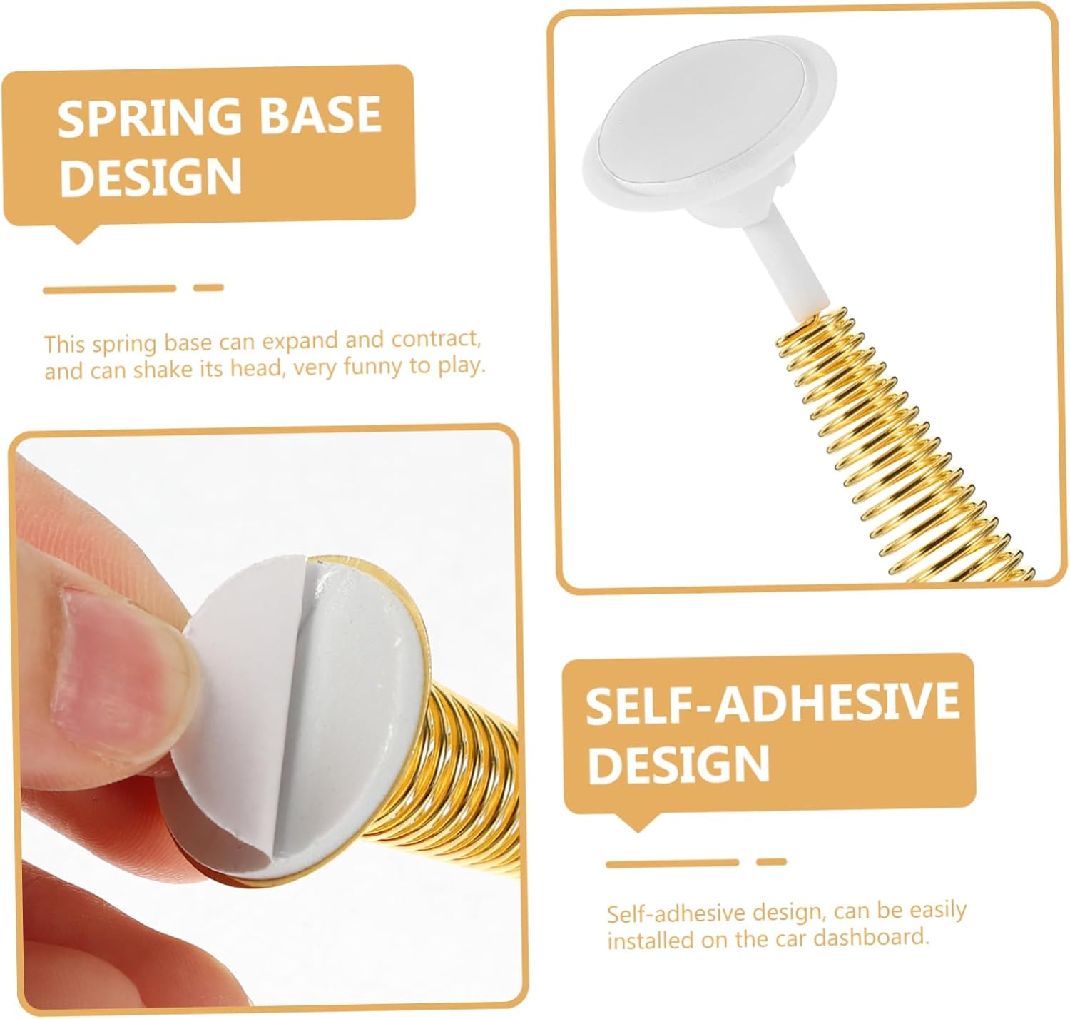 Basi a molla per giocattoli da cruscotto: la molla può espandersi e contrarsi e può scuotere la testa della bambola per presentare un'immagine vivida, molla per bambola Base a molla per bambola del cruscotto: facile da realizzare e utilizzare, adatta sia ai principianti che agli esperti, con base a testa oscillante Base giocattolo danzante per cruscotto: la nostra base a molla possiede la capacità di resistenza alla rottura, con adesivo per una facile installazione, molla per bambola del cruscotto dell'auto Basi di ricambio per per bambole: una volta terminata, la base adesiva a molla tremerà e oscillerà mentre l'auto si muove, base di ricambio per per bambole Base del cruscotto dell'auto: la molla può espandersi e contrarsi, rendendo la tua bambola giocattolo artigianale più interessante, molla oscillante