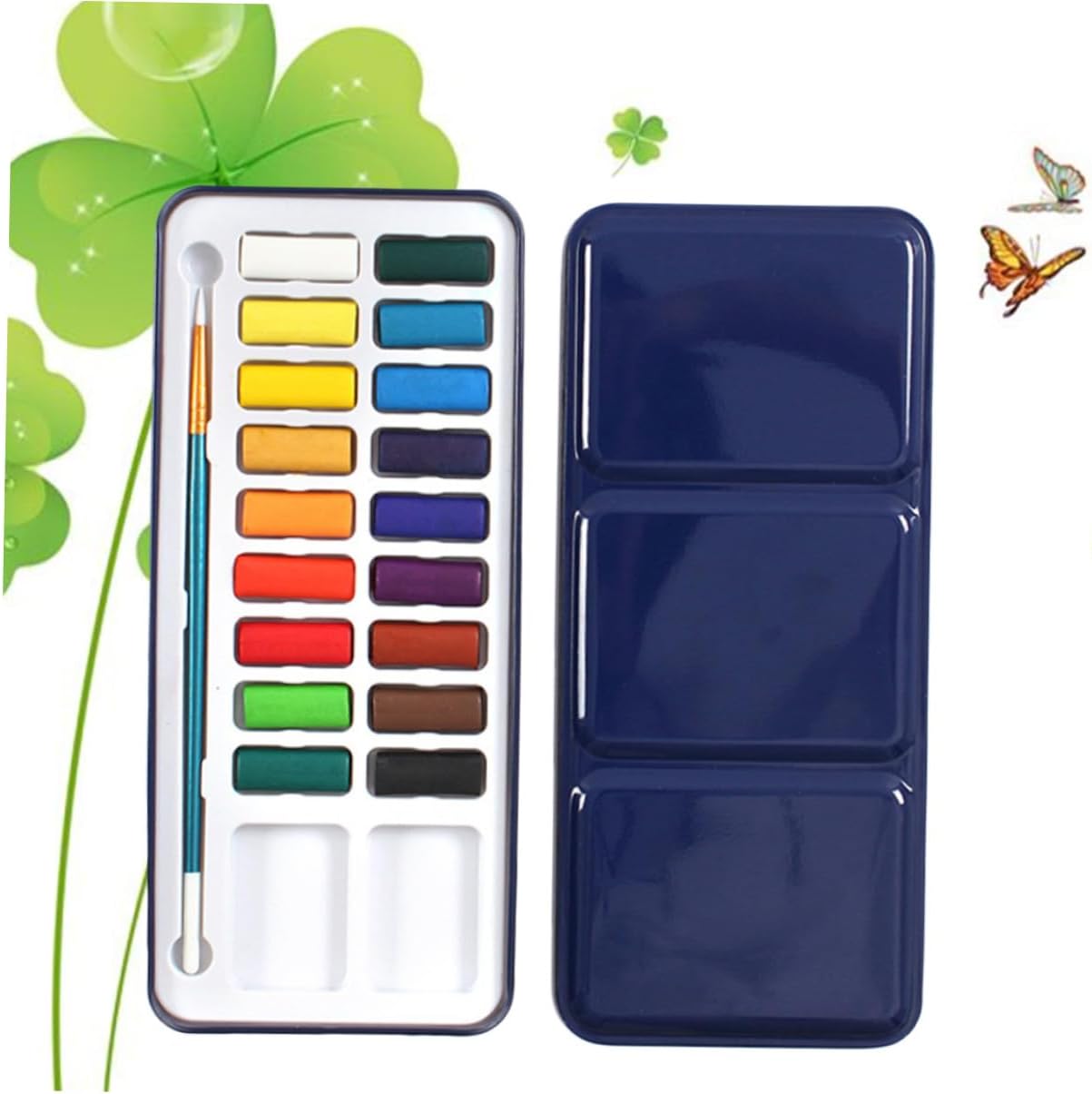 Acquerello da viaggio: questo set di acquerelli è contenuto in una scatola da studio con coperchio facile da aprire/chiudere; il coperchio può fungere da vassoio per mescolare, rendendoli eccellenti per schizzi all'aperto e kit di schizzi ad Acquerello: facile da lavare e pulire, acqua essenziale Portatile: 18 colori vivaci e accattivanti per acquerelli, ideali per studenti, insegnanti, artisti, , arti, artigianato, ecc, blocco per acquerelli Pigmenti solidi per acquerelli: formula semi-umida come gli acquerelli, si dissolve e si fonde facilmente, tavolozza per acquerelli da viaggio Kit per acquerelli: questo set è dotato di 1 pennello, un fantastico set per pittori principianti e artisti, kit per acquerelli per
