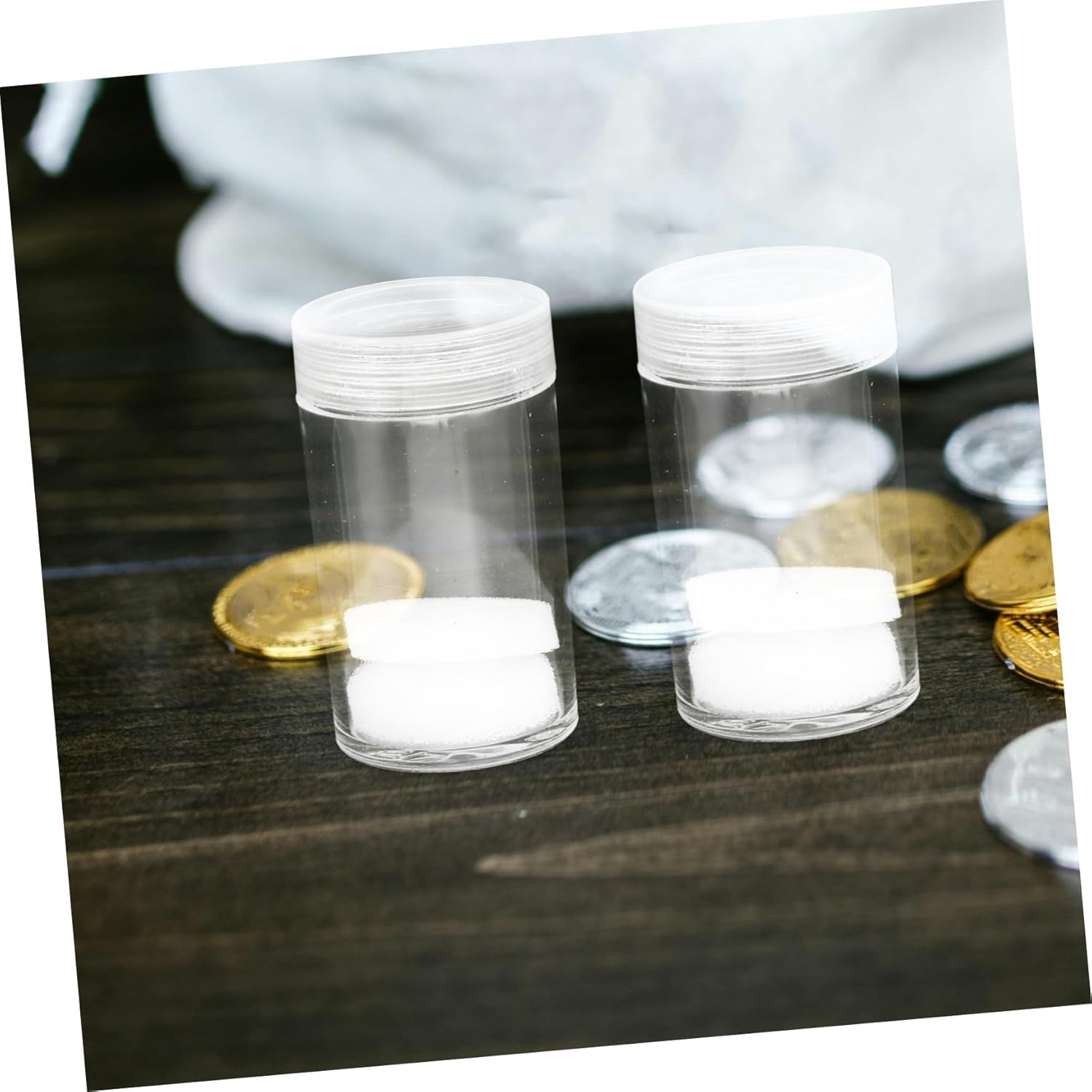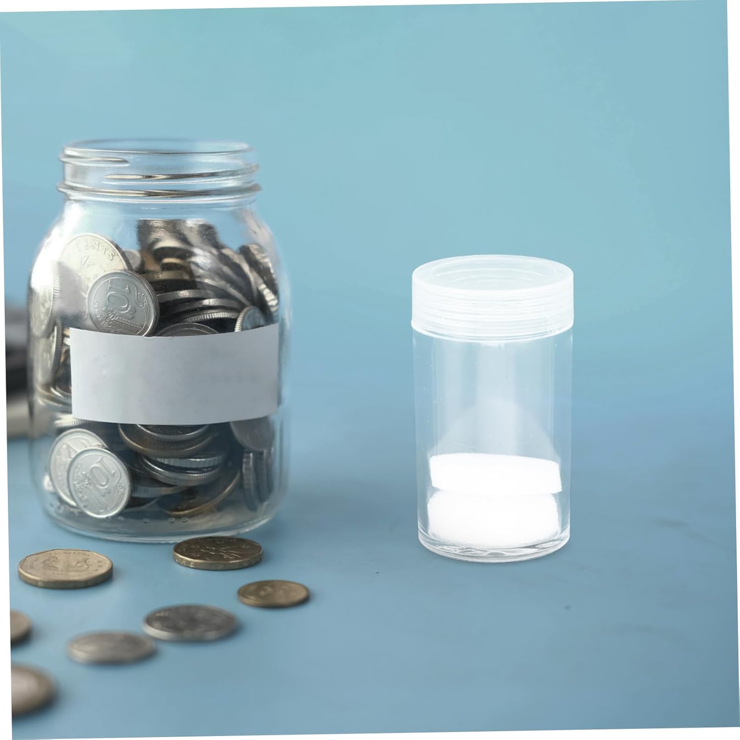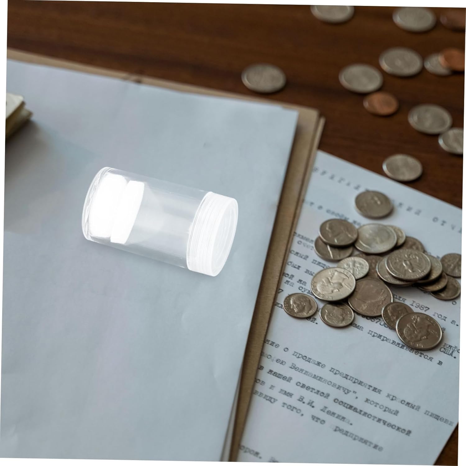 Grande capacità di stoccaggio: contiene monete arrotolate, facilitando l'organizzazione della collezione, tubo portamonete trasparente, contenitore per la raccolta di monete da gioco in plastica. Risparmio di spazio: la forma cilindrica consente di risparmiare spazio e facilita il trasporto e la conservazione. Tubo per imballaggio trasparente, accessori per collezionisti di monete Stoccaggio versatile: adatto per collezionisti di monete e ideale anche per altri piccoli oggetti, portamonete in plastica, tubo per monete in plastica Il tubo per monete in plastica protegge dallo sporco e garantisce che rimangano in buone condizioni, portamonete in plastica, scatola di protezione per monete in plastica, rotondo Versatilità: non solo ideale per collezionare, ma adatto anche per riporre altri piccoli oggetti, mini secchio per cancelleria, portamonete rotondo in plastica