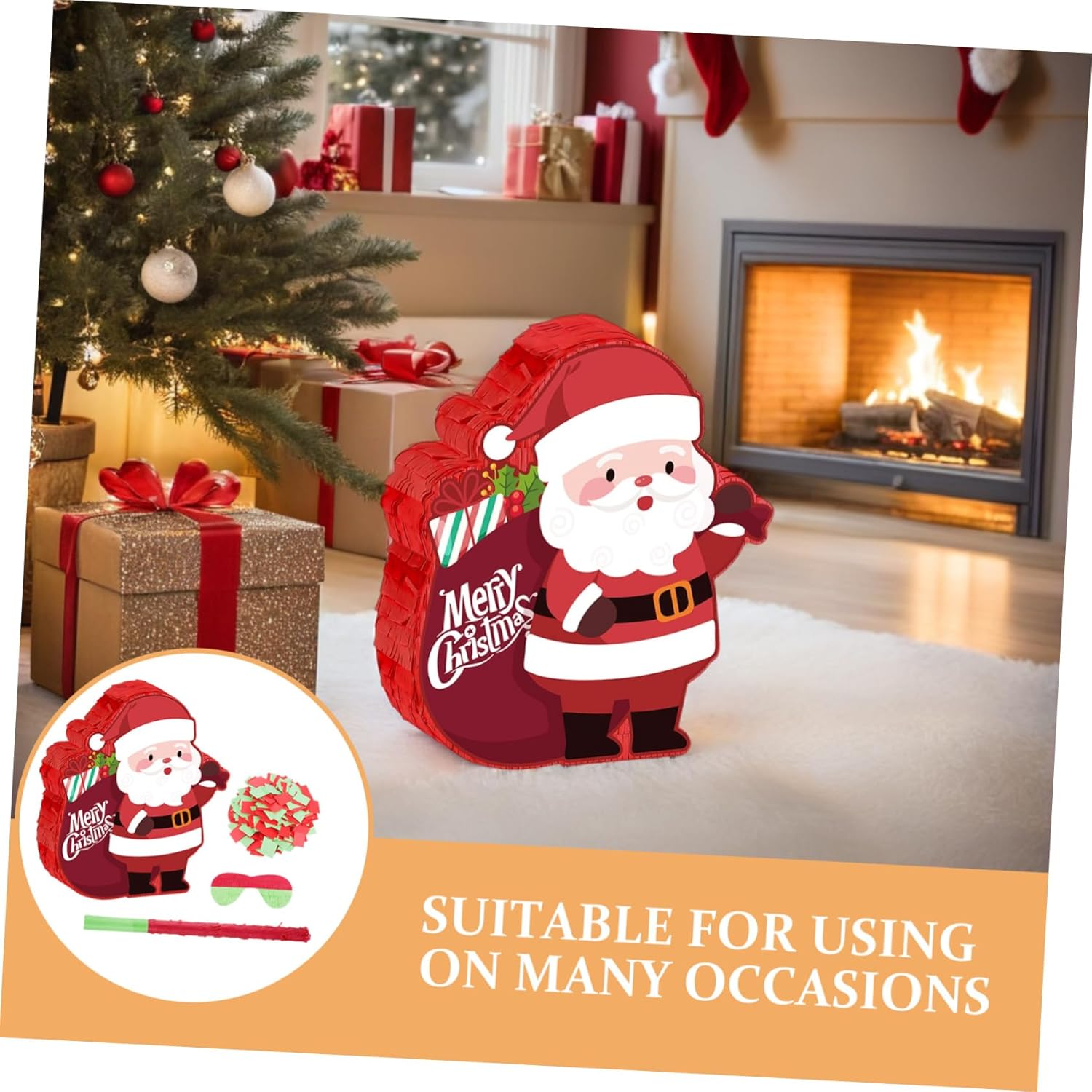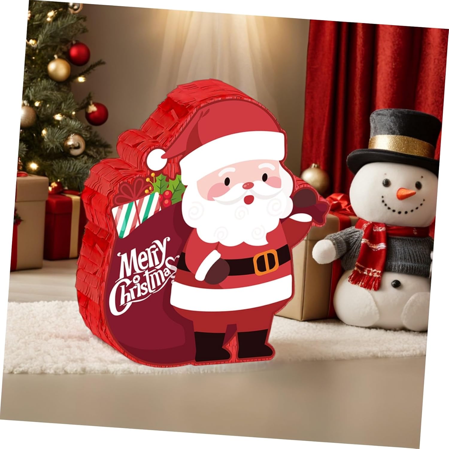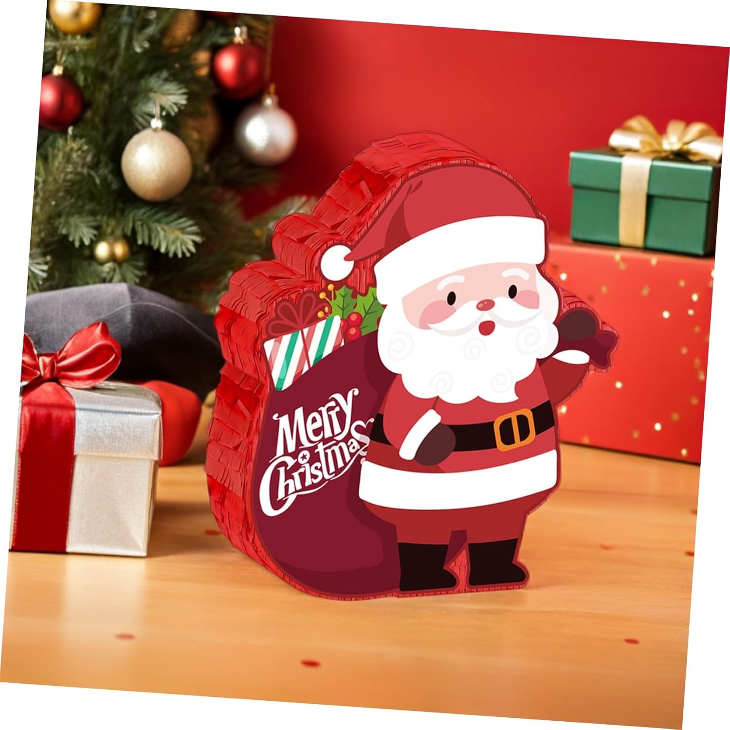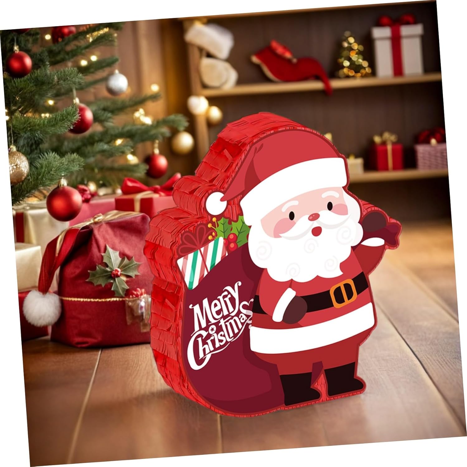 Facile da allestire per qualsiasi stanza: una piñata di Babbo Natale appesa rende facile decorare feste di Natale in classe o feste per la festa messicana e visivamente accattivanti, piñata di caramelle riempibile, decorazioni per vacanze e compleanni Creativo: bandisci la noia alle riunioni con il gioco della piñata per feste di Natale "Smash piñata". e rendi indimenticabile qualsiasi regalo per la festa di Natale sia per gli adulti che per gli adulti. Piñata con mazza e benda, articoli per feste di Natale e compleanni Decorazione natalizia: aggiungi un tocco allegro ai tuoi incontri festivi con questa piñata di Babbo Natale. È ideale come decorazione per le feste di Natale in casa e crea un'atmosfera allegra per le riunioni di famiglia. Decorazione da appendere versatile: questa piñata di Babbo Natale è progettata per essere appesa facilmente e si adatta perfettamente alla decorazione della festa di Natale. Può essere utilizzato per i giochi delle feste di Natale in ufficio o per eventi familiari, come bomboniera per le vacanze invernali e come decorazione per le feste di Natale. Spazioso porta caramelle: la piñata natalizia offre spazio sufficiente per riempire con coriandoli o premi del gioco delle caramelle natalizie, garantendo così grande gioia a donne e uomini durante la loro festa, come decorazione natalizia per tutta la famiglia o come decorazione natalizia da appendere