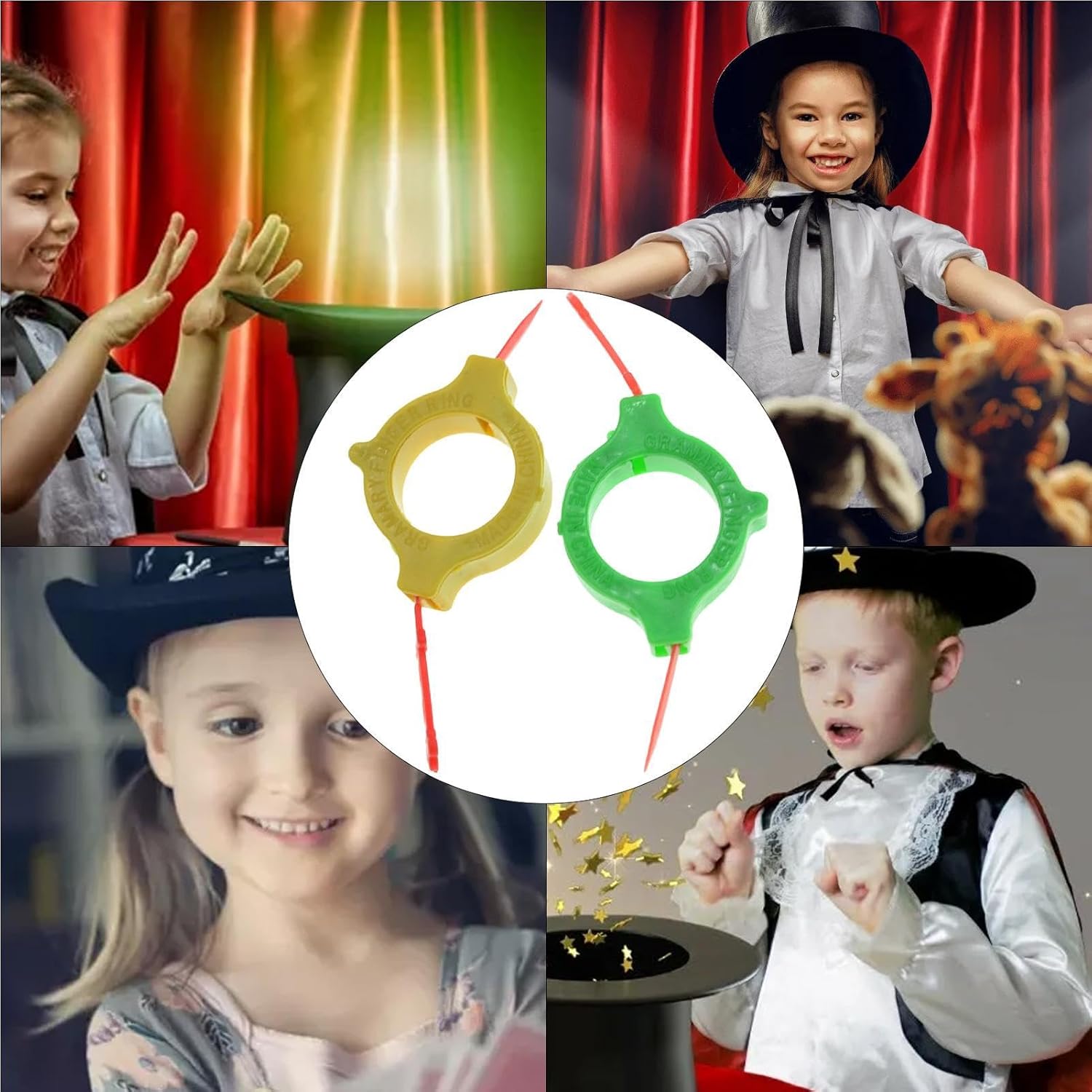 Materiali eccellenti: realizzato con materiali selezionati di alta qualità, questo resistente supporto in ABS garantisce un'aggiunta robusta e bella al tuo repertorio di performance. Comodo da usare: fai scorrere l'anello sottile attraverso il dito e con una semplice rotazione il ciondolo si apre, affascinando tutti mentre l'anello sembra sfidare la gravità. Ampiamente usato: libera più possibilità di intrattenimento con gli oggetti di scena pendenti con le dita, un must per portare più divertimento nella tua vita. Crea esperienze indimenticabili con questo versatile set di ciondoli.,Regalo adatto: Svela un mondo di meraviglie con i nostri oggetti di scena per ciondoli per le dita, il regalo perfetto per rendere mistiche le vacanze e i compleanni dei bambini e ispirare gioia e immaginazione. Facile mobilità: stupisci i tuoi amici e la tua famiglia con questi oggetti di scena con ciondolo a dito. Porta con te questo accessorio leggero e compatto senza sforzo e diventa un buon mago.