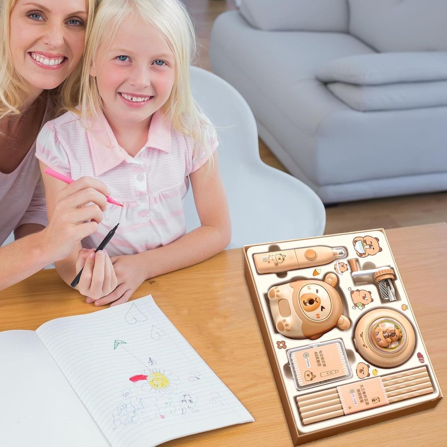 (: 199 : Innovazione Pratica: Design autotemperante elimina interruzioni per regolazioni, prolunga la durata della e assicura scrittura con avanzamento controllato della mina : 216) Donc Curato: Combina un'apertura sorprendente, utilità pratica e fascino estetico, rendendolo opzione di spicco per regali scolastici o di compleanno con confezione ricercata Studio Versatili: Combina ricariche gomma elettrica, matite per scrittura e pulitore scrivania in un set completo, ideale per esigenze accademiche e personali. Presa sicura antiscivolo: Progettazione pensata per i bambini con bordi arrotondati lisci e zone antiscivolo per migliorare la sicurezza d'uso e prevenire attivazioni involontarie da parte dei piccoli creativi Idea regalo creativa: Collezione di cancelleria con colori tenui e design a tema animale accattivante, che unisce gioco didattico e creatività. Scelta eccellente come regalo per studenti e per celebrazioni festive.