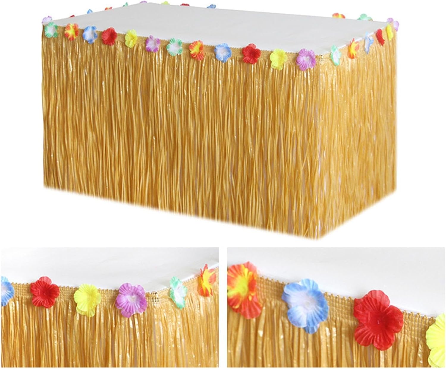 Dimensioni: 1 gonna da tavolo hawaiana da 275 cm x 60 cm. Ogni gonna erbosa per il tavolo viene fornita con chiusure a cerchio e gonna per un facile fissaggio al tavolo o a un'altra superficie. Uso: può essere utilizzato per decorare tavoli da festa, finestre o tavoli per banchetti, aggiunge un look fresco alle decorazioni per feste. [Decorazione]: leggero, aggiunge un po' di colore e sapore tropicale ai tuoi tavoli, ideale come squisita aggiunta alla decorazione floreale di nozze, sfondo fotografico o decorazione dell'auto da parata. [Applicabile]: adatto per feste hawaiane, feste in spiaggia, compleanni, feste di nozze, feste a tema giungla della foresta pluviale, ecc. Alta qualità: la gonna da tavolo in erba Luau è realizzata in polipropilene di alta qualità, durevole.