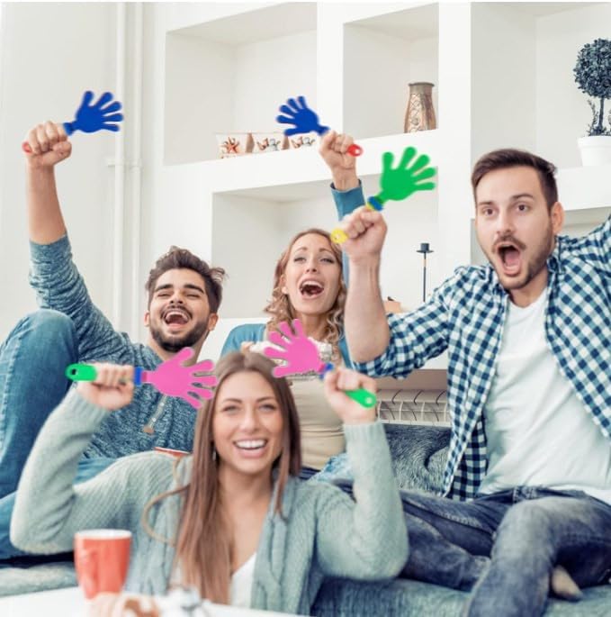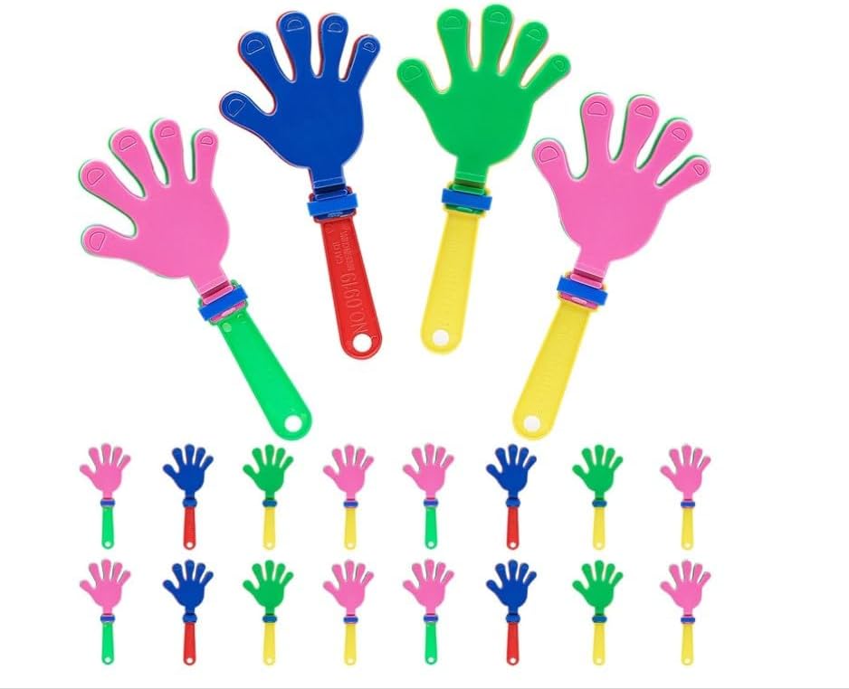 Robusto e durevole: i nostri battenti sono realizzati in materiale plastico e, robusto e stabile, non facile da rompere o deformare, liscio e sbavato, non sbiadisce il colore, comodo, può essere utilizzato per un lungo periodo con fiducia Dimensioni adeguate: ogni batacchio misura circa 19 cm di lunghezza e 9 cm di larghezza, adatto per la maggior parte degli adolescenti e degli adulti, puoi tenerli saldamente in mano e facilmente l'atmosfera della tua festa Battenti colorati per le mani: ci sono 20 battenti nella confezione, quantità sufficiente da condividere con la famiglia e gli amici, adatti per feste, carnevale, giochi sportivi e molto altro ancora, possono migliorare l'atmosfera felice Manico confortevole: il batacchio in plastica ha un manico facile da impugnare che non cade facilmente, e 3 piccoli batacchio in plastica flessibile sulla parte superiore che fanno rumore quando viene scosso, in modo da poter godere di costanti applausi alla tua festa o evento Ampia applicazione: può essere utilizzato in eventi sportivi, concerti, feste di compleanno, feste in piscina, discoteche, carnevale, eventi scolastici, feste di compleanno, riunioni annuali, Natale, vacanze e celebrazioni, ideale per mostrare il tuo sostegno e