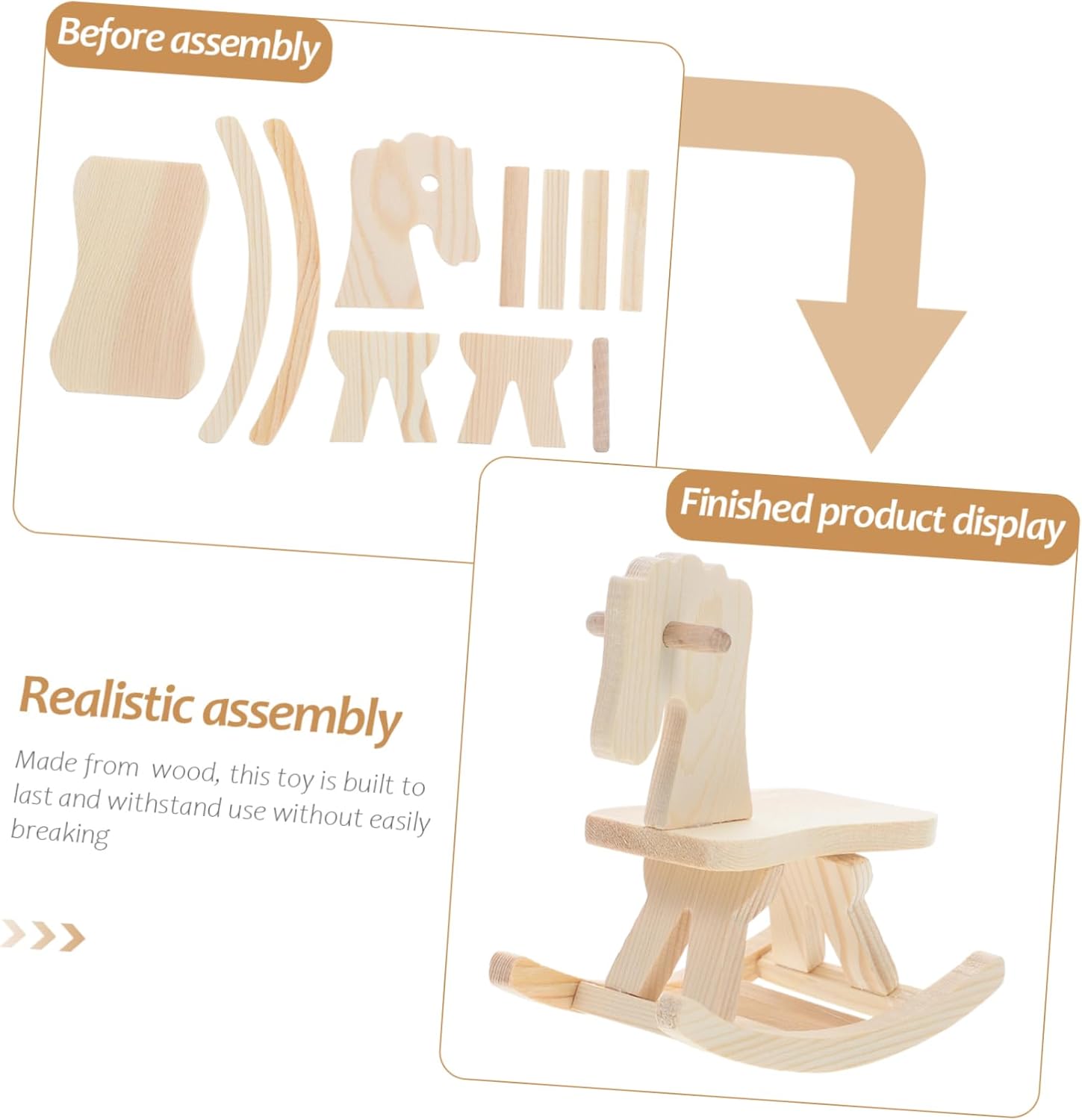 Sviluppo delle abilità: questo cavallo giocattolo in legno aiuta i a sviluppare abilità importanti come la coordinazione occhio-mano e le capacità motorie Valore educativo: adatto per l'uso in classe, questo giocattolo offre ai un modo educativo e coinvolgente di apprendere attraverso le attività Robusto e durevole: realizzato in legno, questo giocattolo è costruito per durare e può sopportare un uso regolare Impegno familiare: questo giocattolo offre l'opportunità a genitori e figli di impegnarsi in un'attività condivisa, rafforzando il loro Creatività fai da te: i possono divertirsi con il processo creativo di assemblare e decorare il proprio cavallo a dondolo in legno, rendendolo un progetto fai da te unico