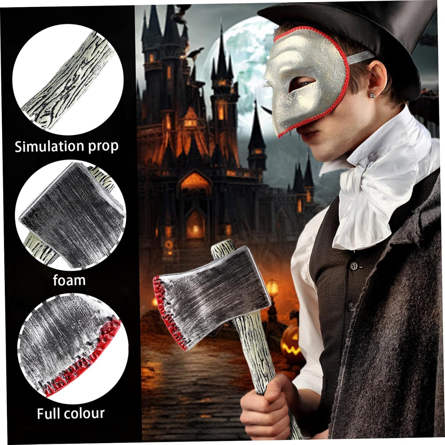Materiale plastico: questa finta ascia è realizzata in materiale plastico di alta qualità, che garantisce durata e longevità. È solida e robusta, il che la rende durevole e richiede poca manutenzione. Puoi goderti questa finta ascia per più occasioni senza preoccuparti dell'usura. Molti usi: questa finta ascia è versatile e adatta a diverse occasioni e temi.. È perfetta per cosplay, feste in costume, scherzi, oggetti di scena di Halloween e altro ancora.. Sia che tu voglia creare un'atmosfera spettrale o una scena realistica, questa finta ascia è la scelta decorativa ideale.. Ascia giocattolo realistica e insanguinata: questa finta ascia è progettata per sembrare incredibilmente realistica, con un manico in legno vintage e una lama insanguinata.. Aggiungerà un tocco di autenticità.. Prop Axe Armi finte Ottimo regalo di Halloween: questa finta ascia è un fantastico regalo o regalo di Halloween per gli amanti del cosplay.. Aggiunge un tocco di autenticità ed eccitazione ai tuoi costumi o decorazioni, rendendolo un'aggiunta perfetta alla tua collezione.. Armi finte -Plastica -Ascia di dimensioni adeguate e medie: questa finta ascia è di ca. 30x12,5 x 3,5 cm (11,81 x 4,92 x 1,38 pollici). Puoi usarlo come oggetto di scena o accessorio senza alcun peso. Ascia in plastica