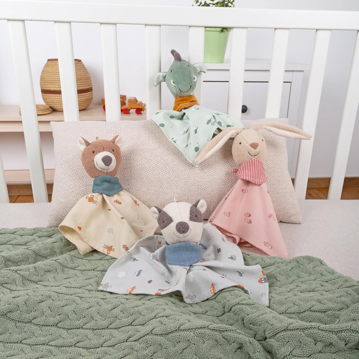 Confortare, coccolare e coccolare – Qualità morbida; ottime possibilità di presa per accarezzare e accarezzare; compagno silenzioso: non cigola, non sveglia il bambino Morbido e piacevole al tatto – piacevole al tatto, elaborato e ricco di dettagli: vari tessuti in cotone, viso ricamato, testa imbottita; forma piatta e avvolgente Regalo per nascita o battesimo – Dolce doudou per neonati e bambini, simpatico orsetto con foulard in colori delicati Sicurezza e manutenzione: sicurezza testata secondo la normativa europea attualmente in vigore. Lavabile in lavatrice a 30 °C Contenuto della confezione: 1 x Sigikid Orsetto sigibaby; età consigliata: 0 – 36 mesi; Art. n.: 39992